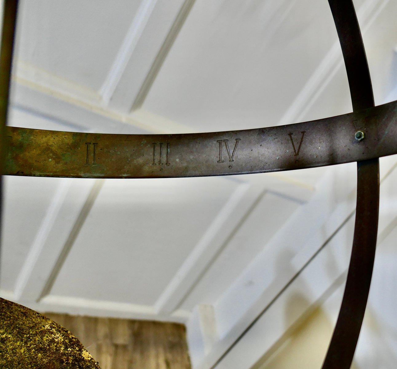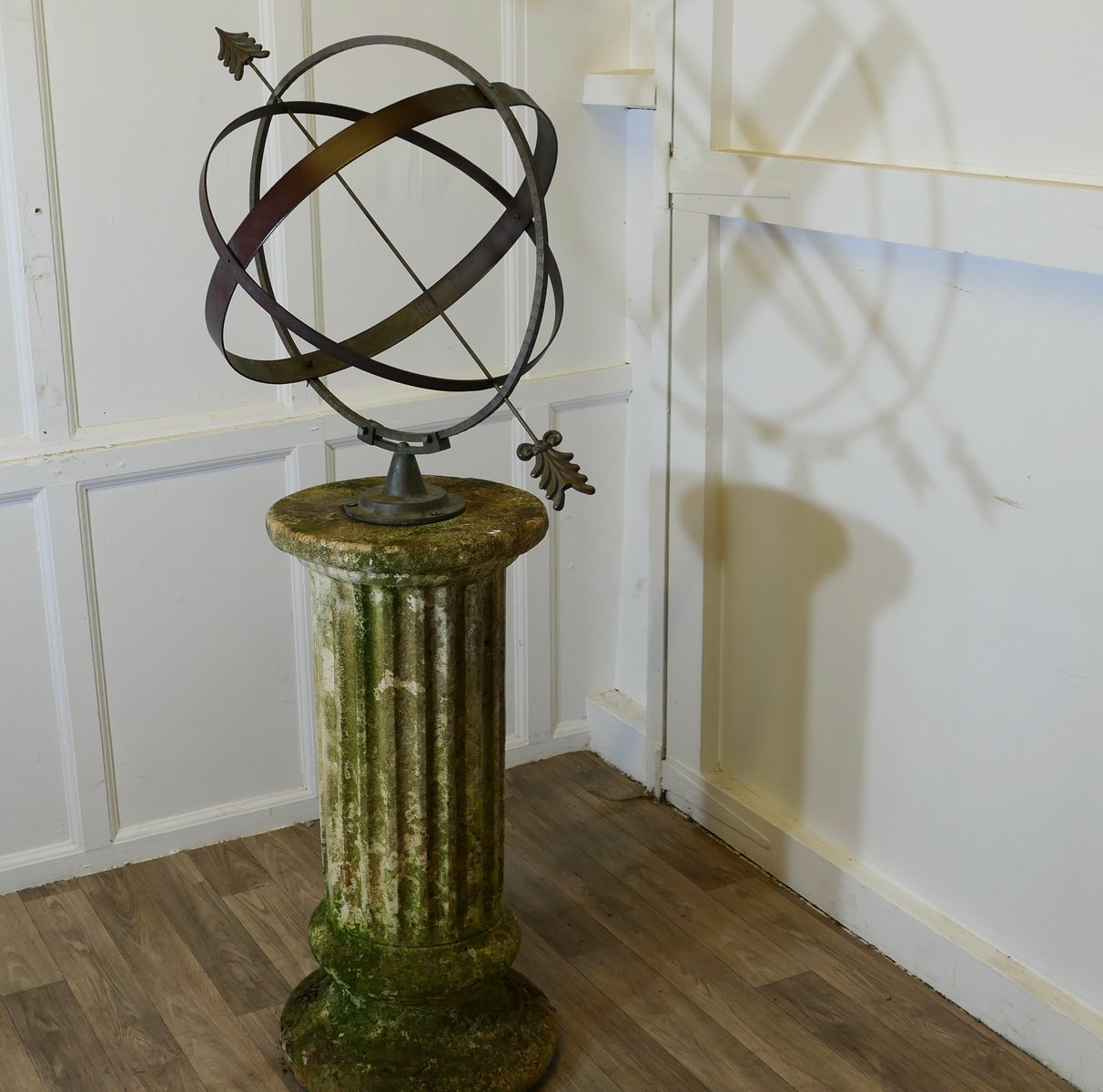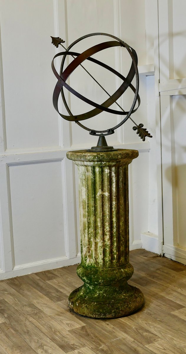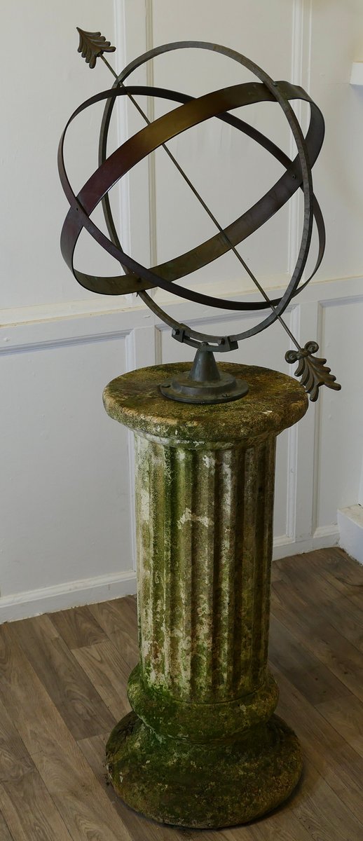 Sfera armillare in rame su piedistallo di pietra, XIX secolo