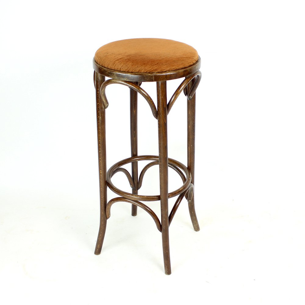A beautiful set of six vintage high bar stools, crafted in the 1960s by TON in Czechoslovakia, following the original Thonet No. 73 bentwood design. Made of beautifully curved bent beechwood, these iconic backless stools showcase the timeless elegance and flowing lines that made Thonet’s bentwood furniture world-famous.