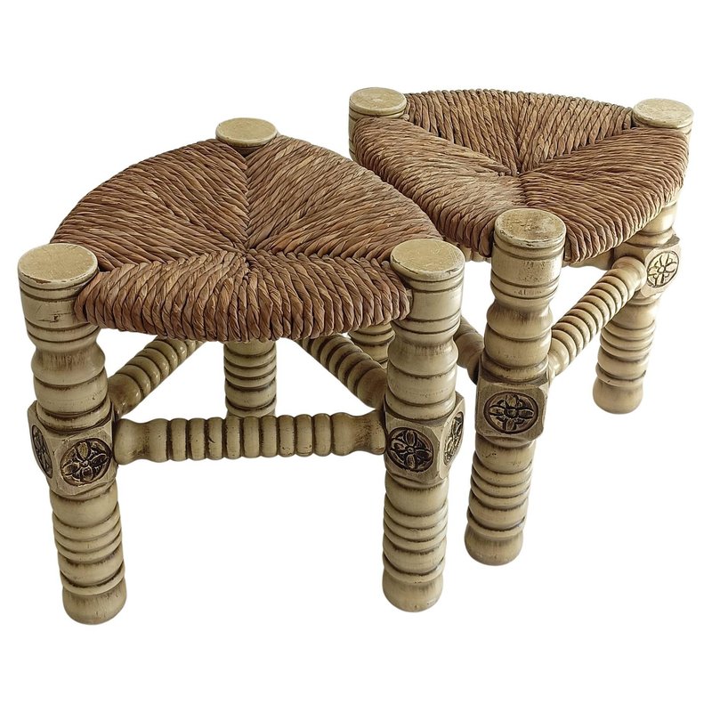 Sgabelli Mid-Century moderni in legno e fibra naturale, anni '60, set di 2