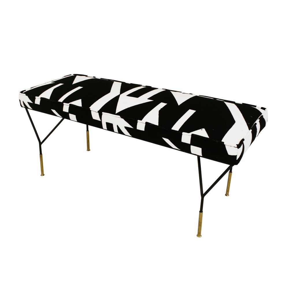 Sgabello moderno in ferro laccato nero e cotone, Italia, anni '70