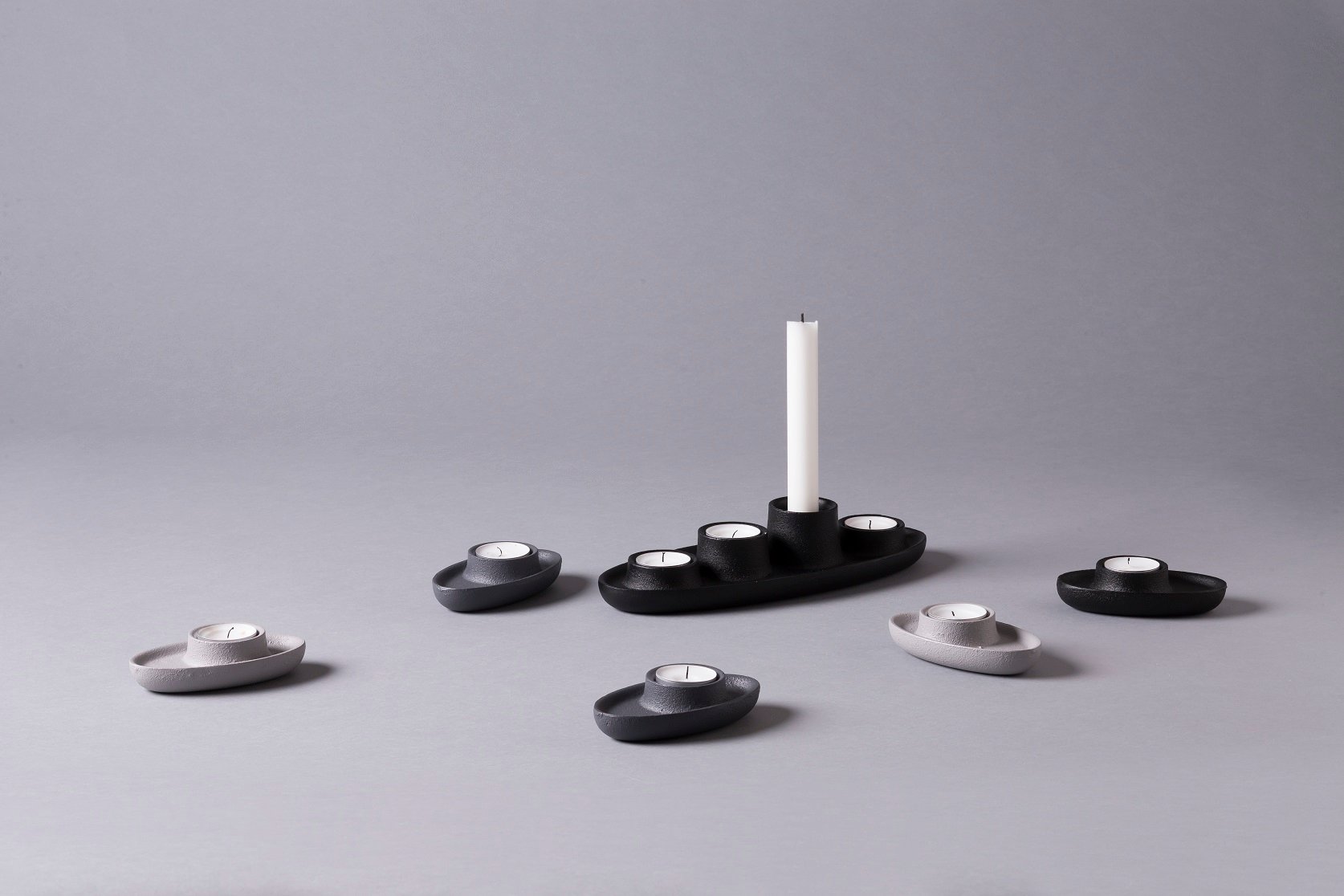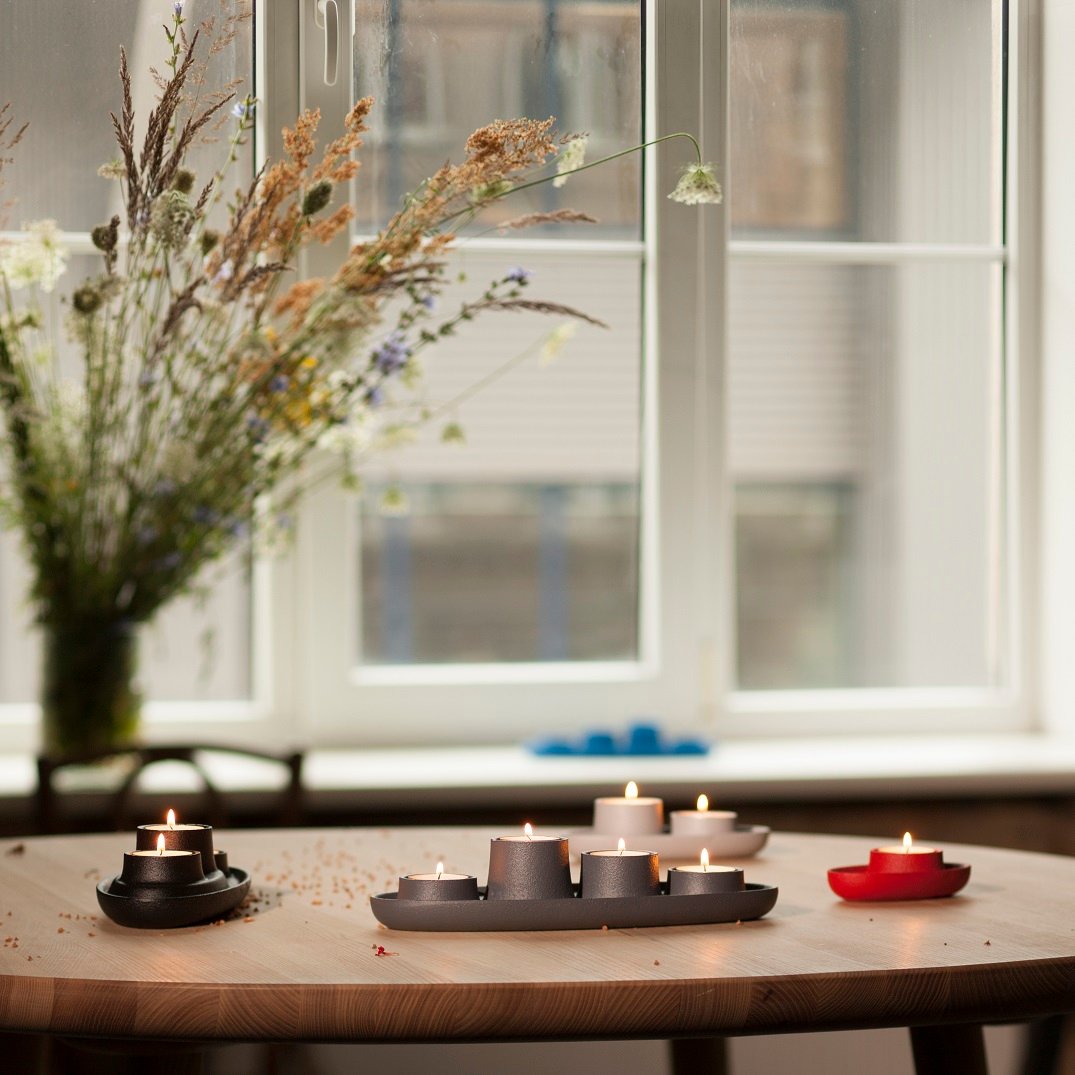 Drawing its inspiration from the Industrial Revolution theAye Aye! familyis made of cast iron and powder coated for its colors. Additional space around the candles acts as an extra safe-zone. A ship is a safe island in an ocean andAye Aye! is a safe place for a fire at home. Being iron cased the vessels are quite heavy, therefore stable and hard to flip (not onwaterwhere they sink like rocks). Each vessel is sturdy as a rock and a bold design item yet simple enough not to become distracting.