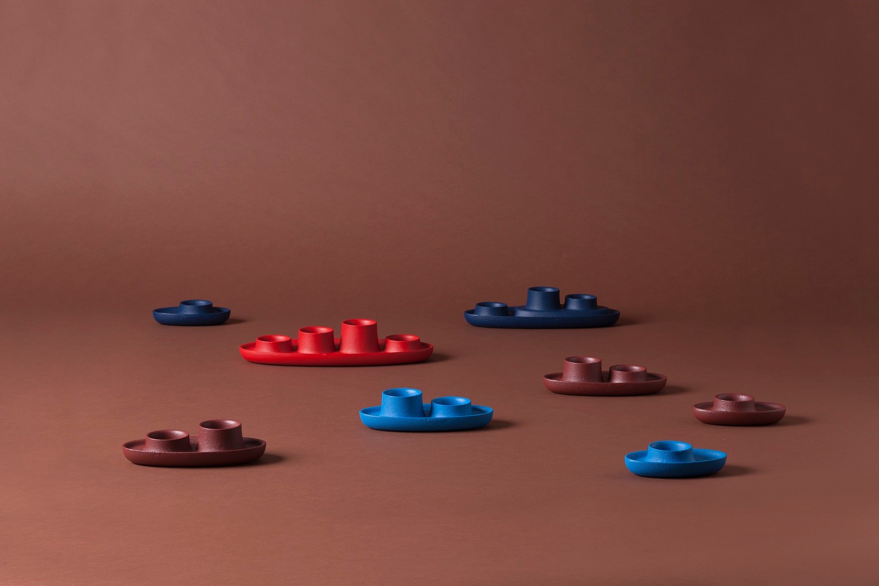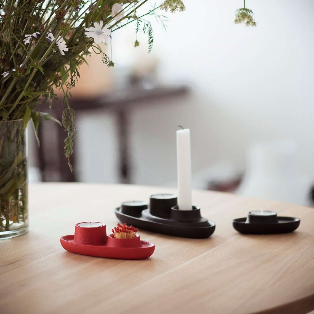 Drawing its inspiration from the Industrial Revolution theAye Aye! familyis made of cast iron and powder coated for its colors. Additional space around the candles acts as an extra safe-zone. A ship is a safe island in an ocean andAye Aye! is a safe place for a fire at home. Being iron cased the vessels are quite heavy, therefore stable and hard to flip (not onwaterwhere they sink like rocks). Each vessel is sturdy as a rock and a bold design item yet simple enough not to become distracting.