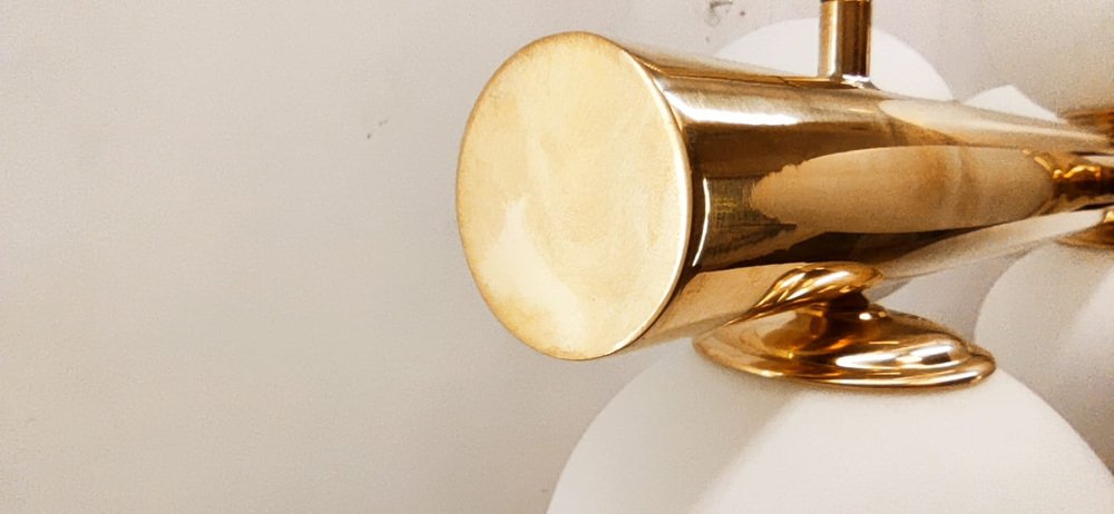 Sospensione Sputnik in ottone con 16 paralumi in vetro