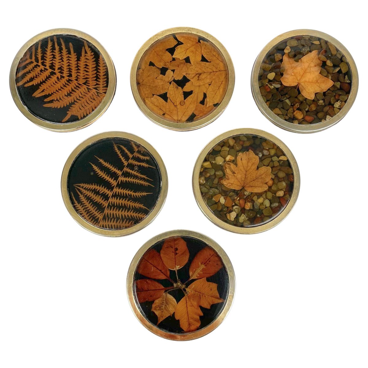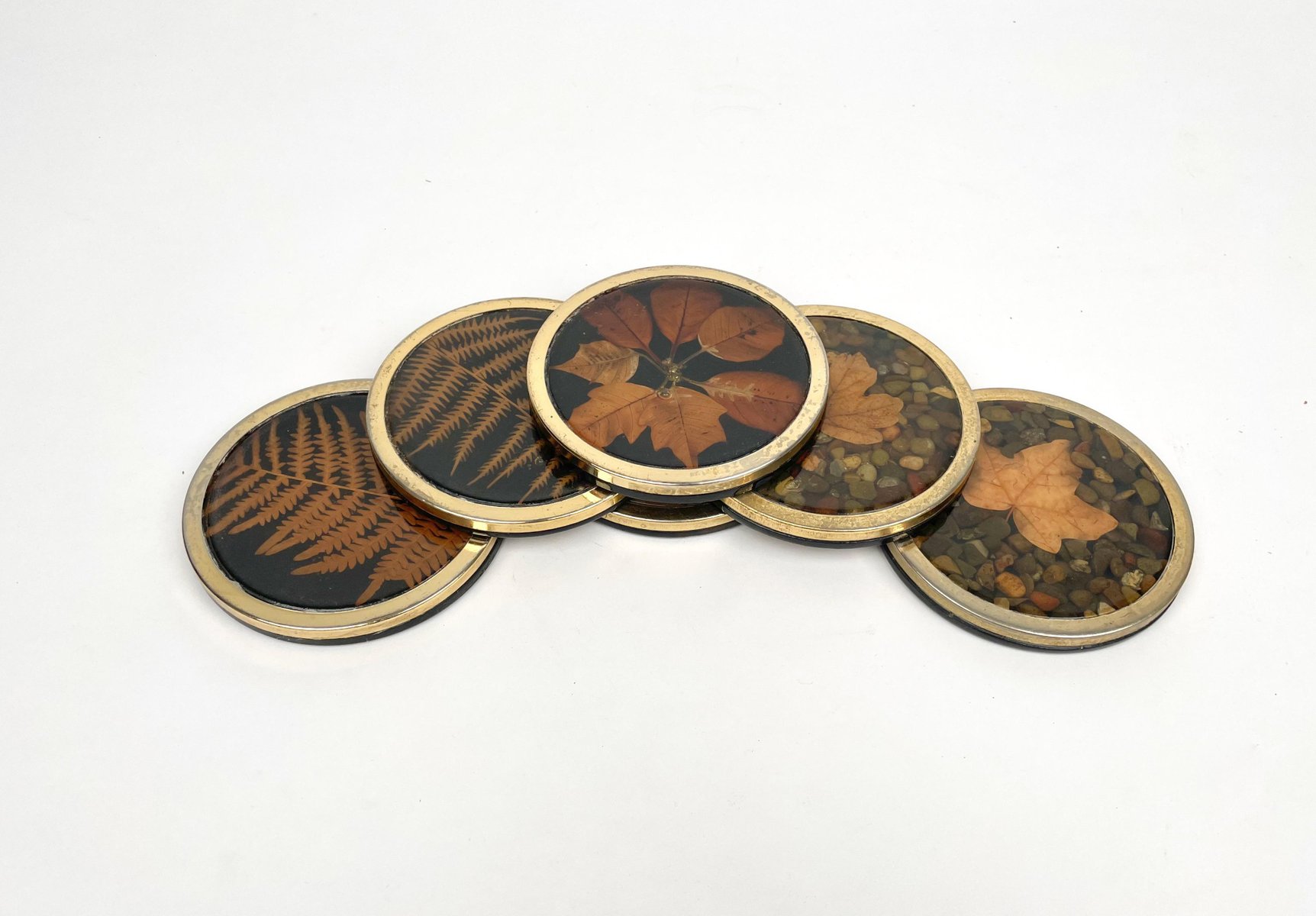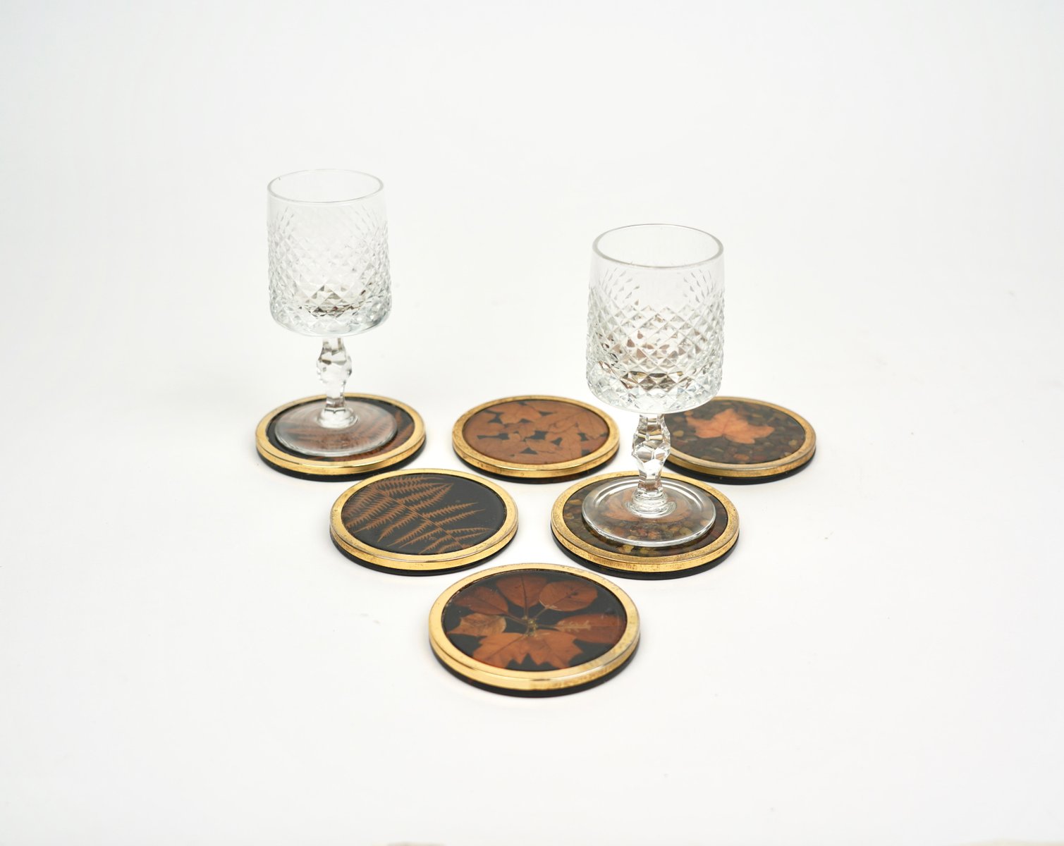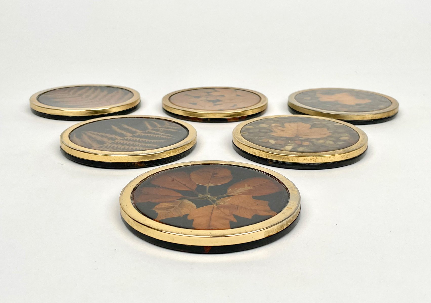 Sottobicchieri in vetro acrilico e ottone con foglie di Christian Dior, Italia, anni '60, set di 6