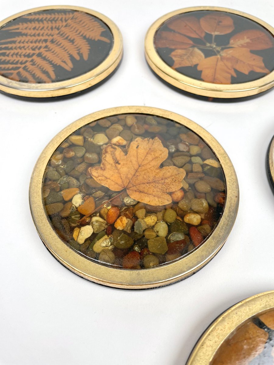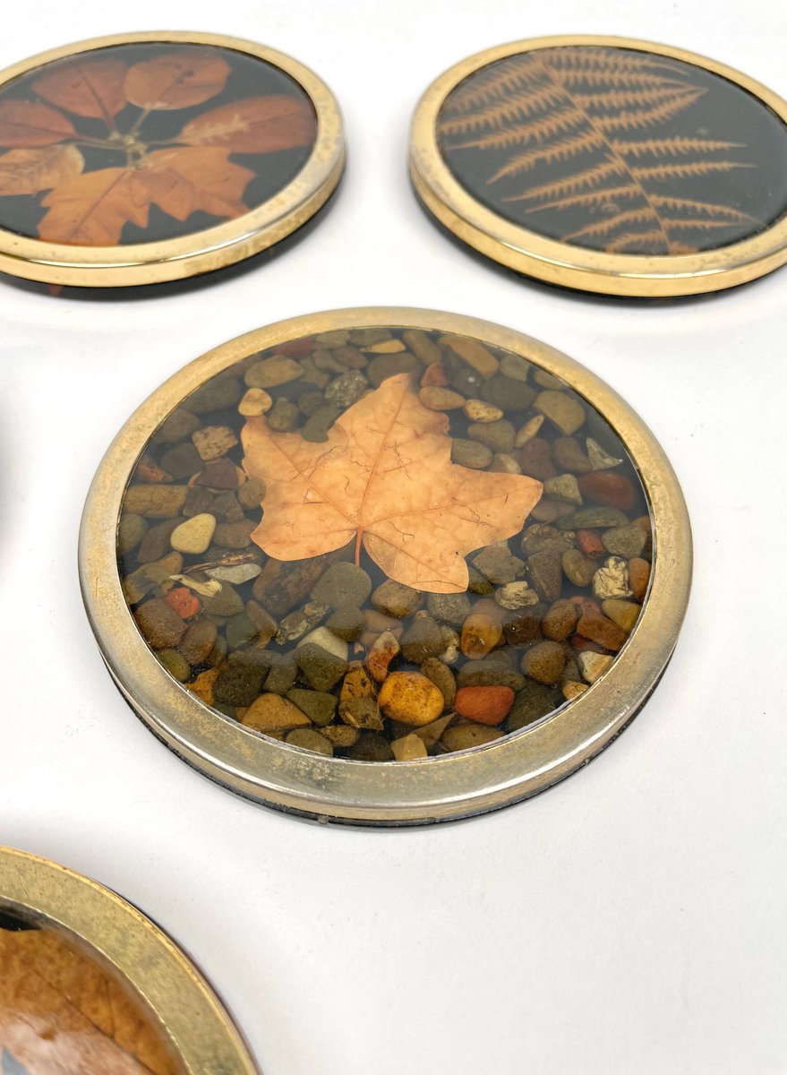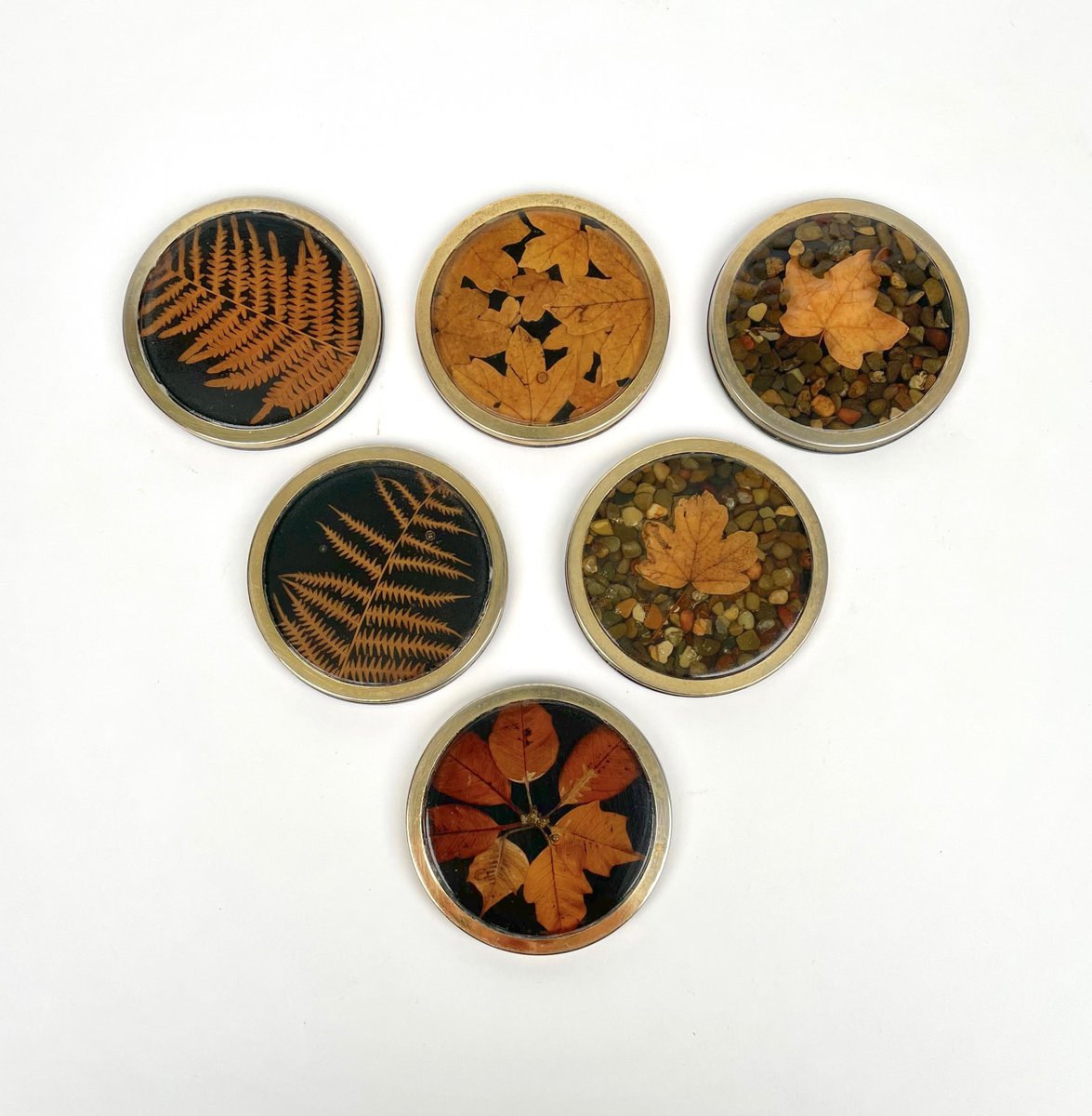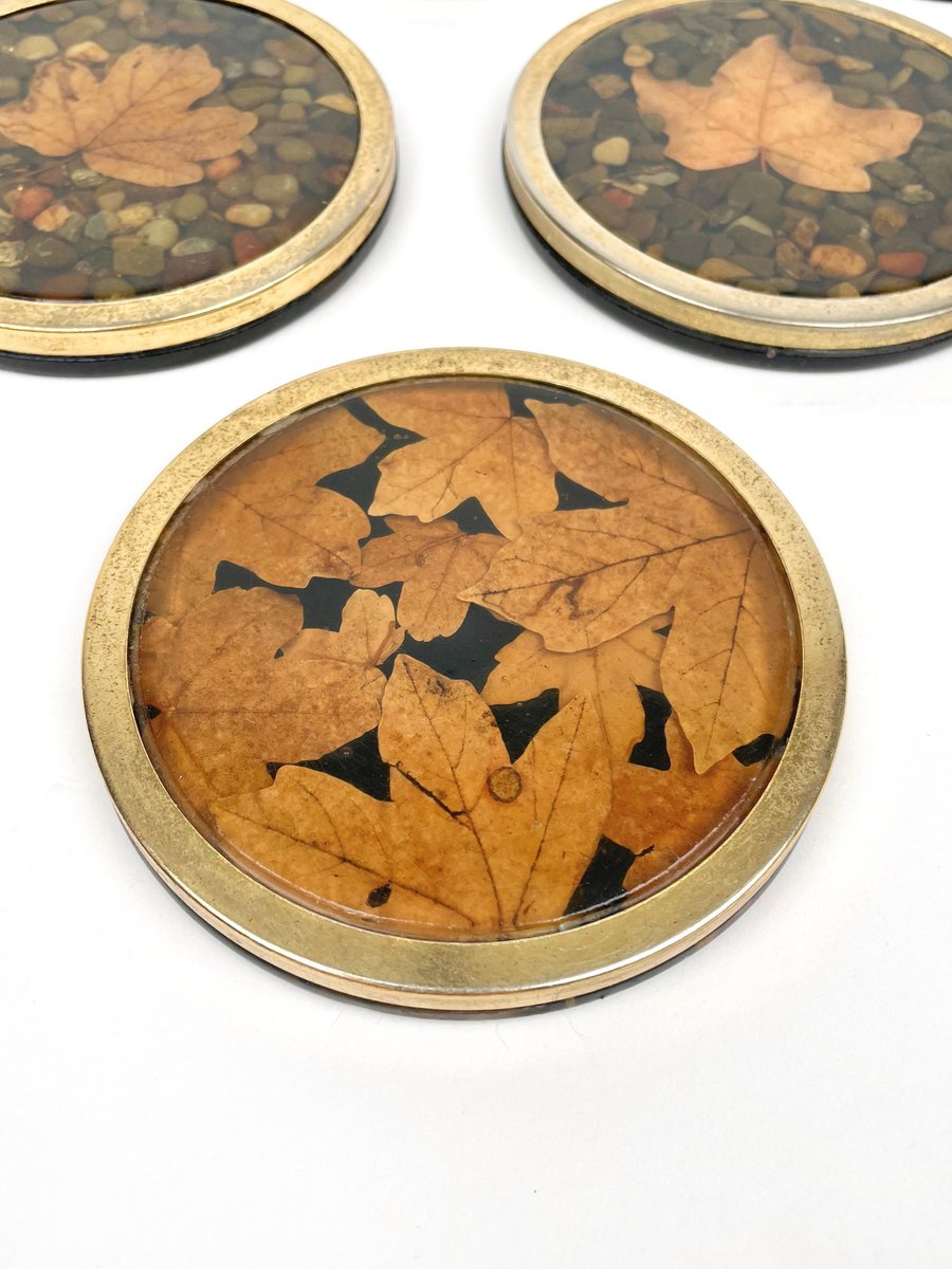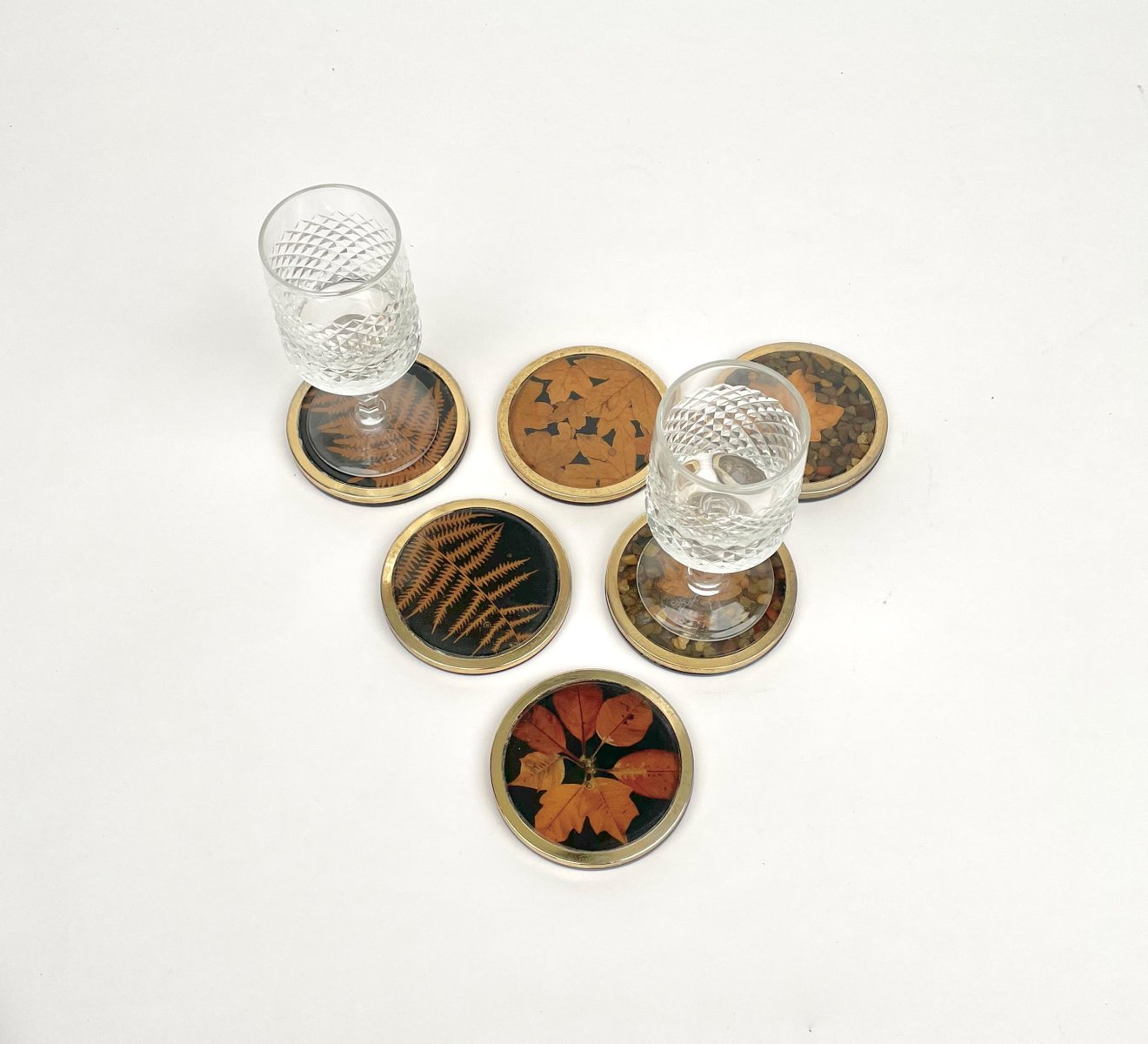 Sottobicchieri in vetro acrilico e ottone con foglie di Christian Dior, Italia, anni '60, set di 6
