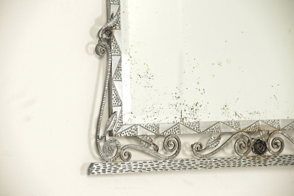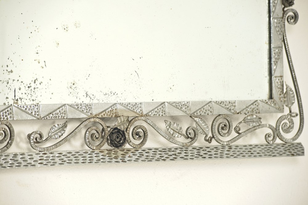 Specchio da parete con cornice in ferro battuto, USA, anni '30