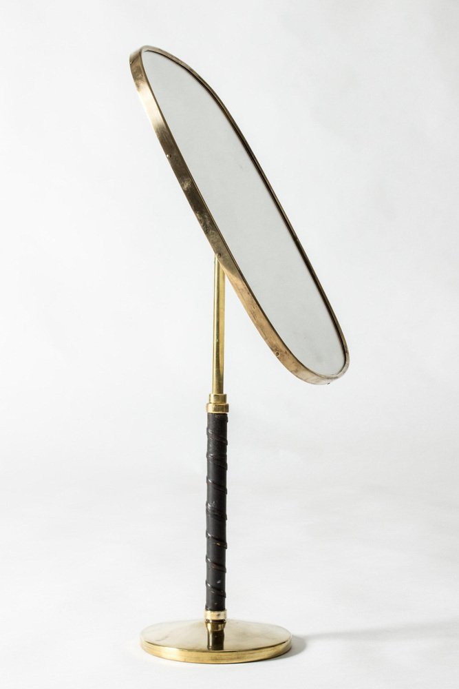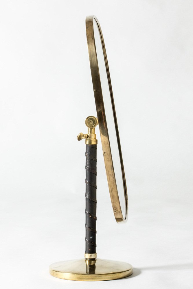 Specchio da tavolo modernista in ottone di David Rosén, anni '50