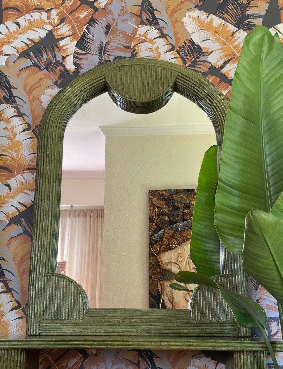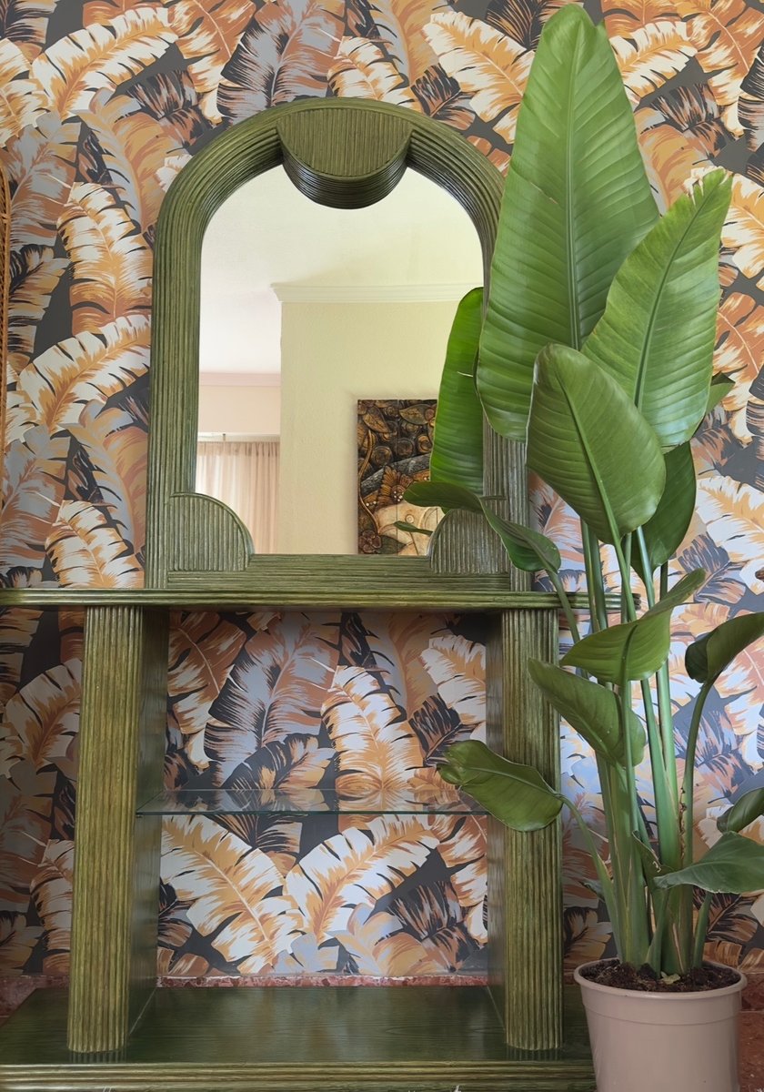 Exceptional original Vivai del Sud mirror and console set, produced in Italy during the 1960s. This ensemble is extremely difficult to source, particularly in its original green factory finish, which has never been repainted or altered and remains fully authentic to the period.