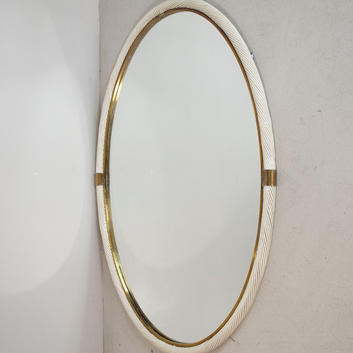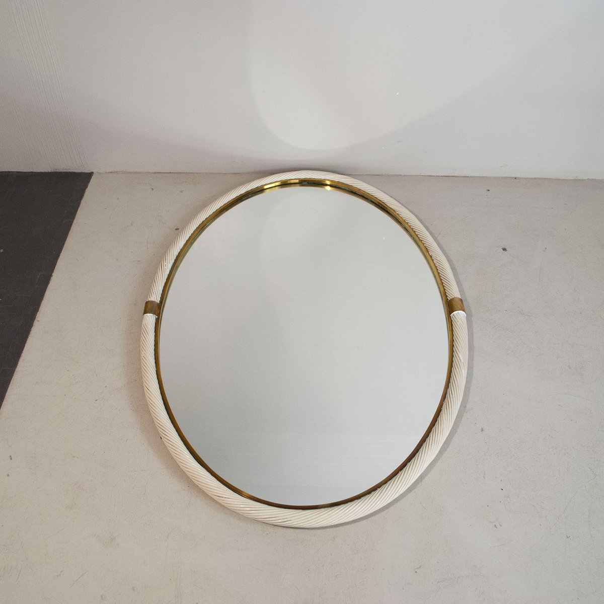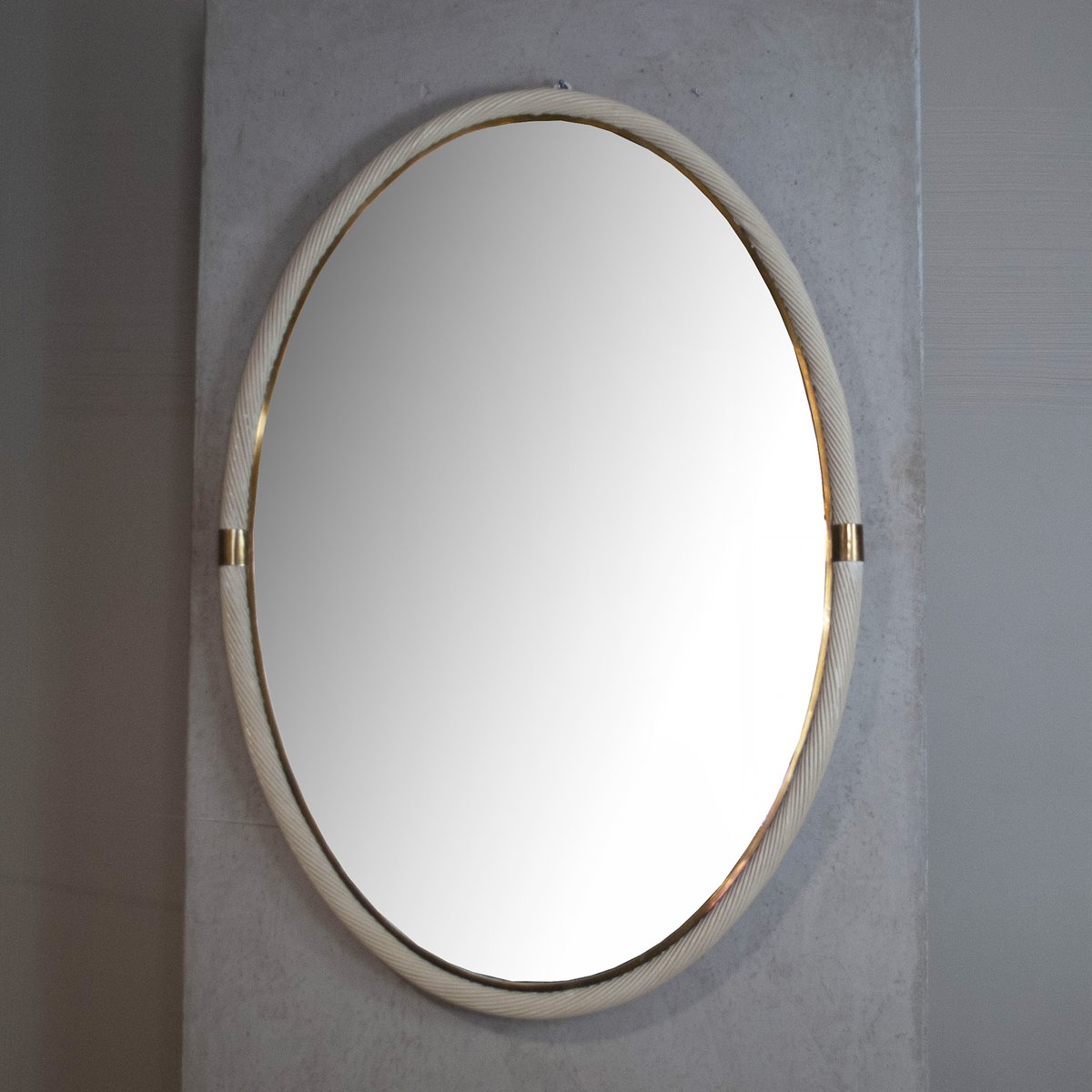 Specchio laccato in vimini e ottone