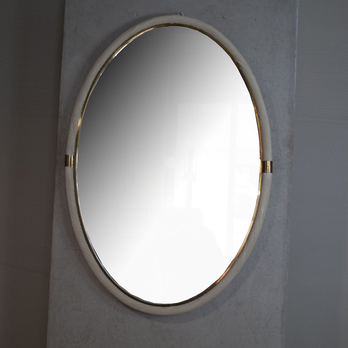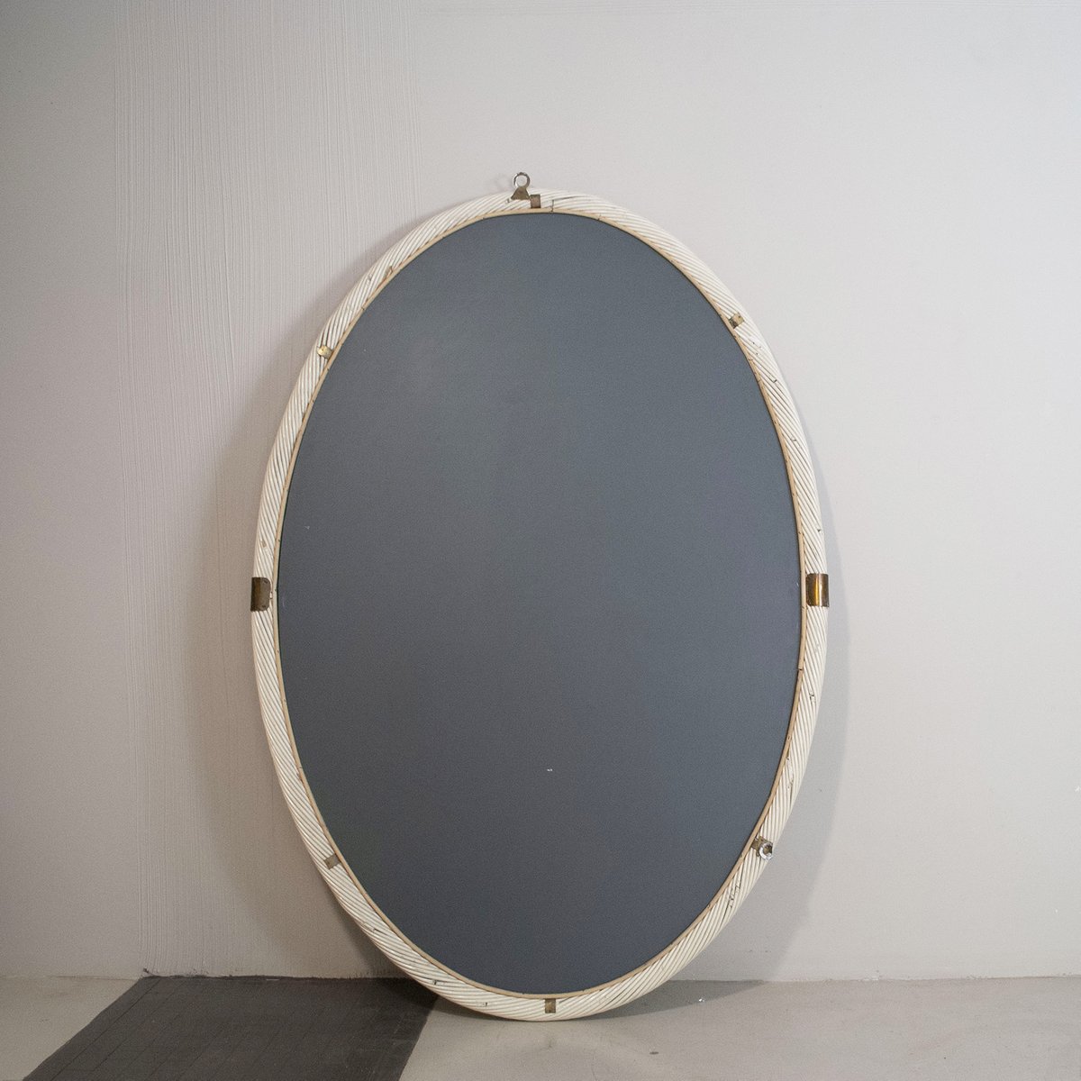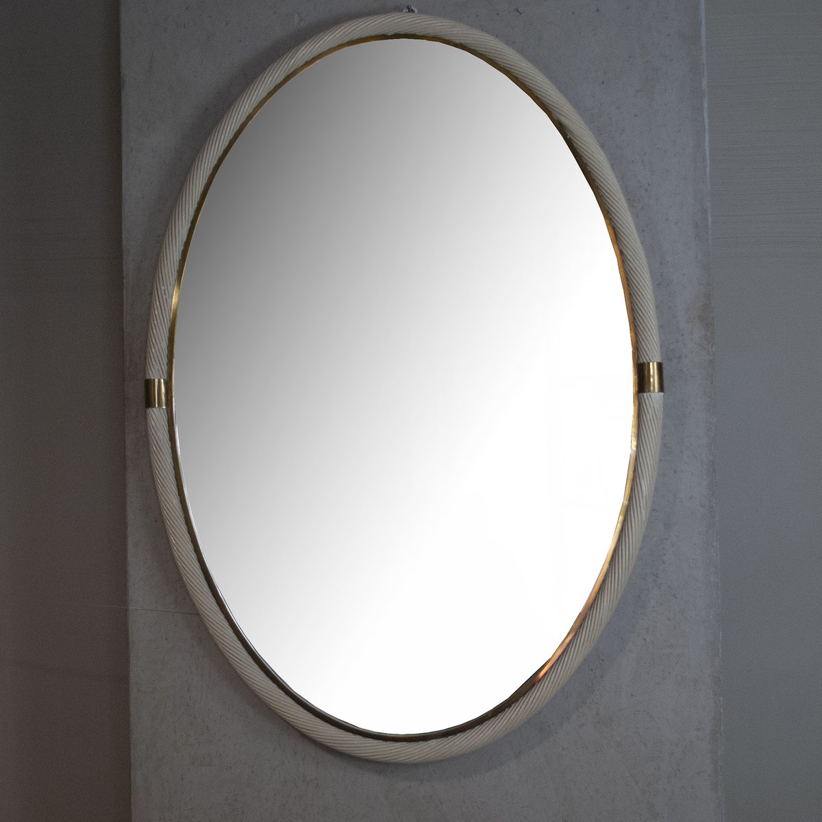 Specchio laccato in vimini e ottone