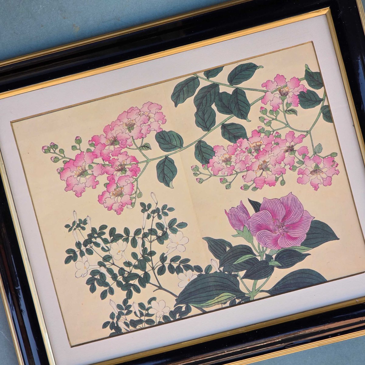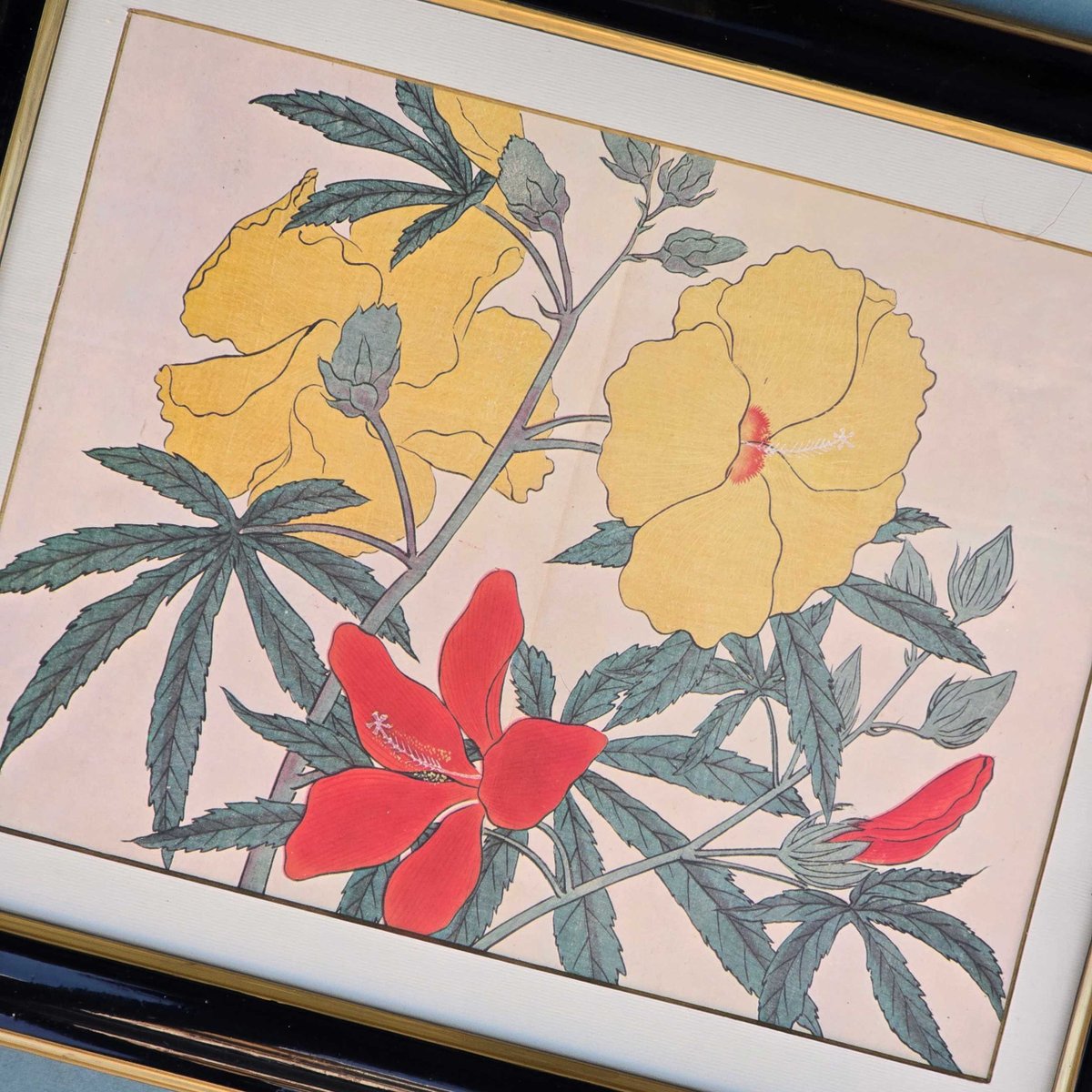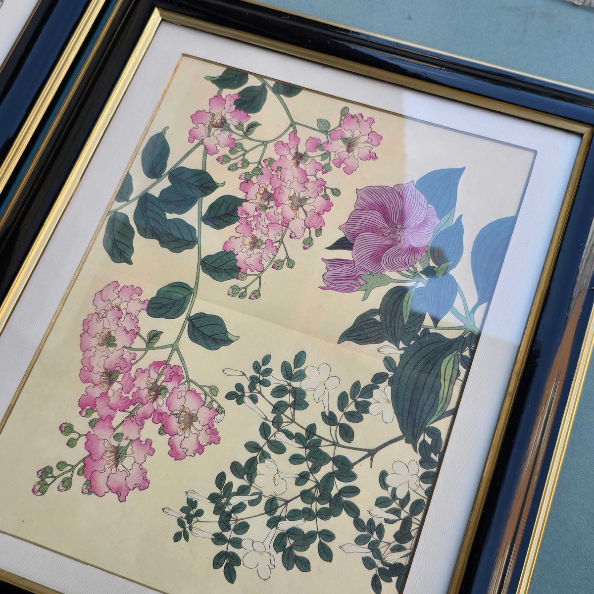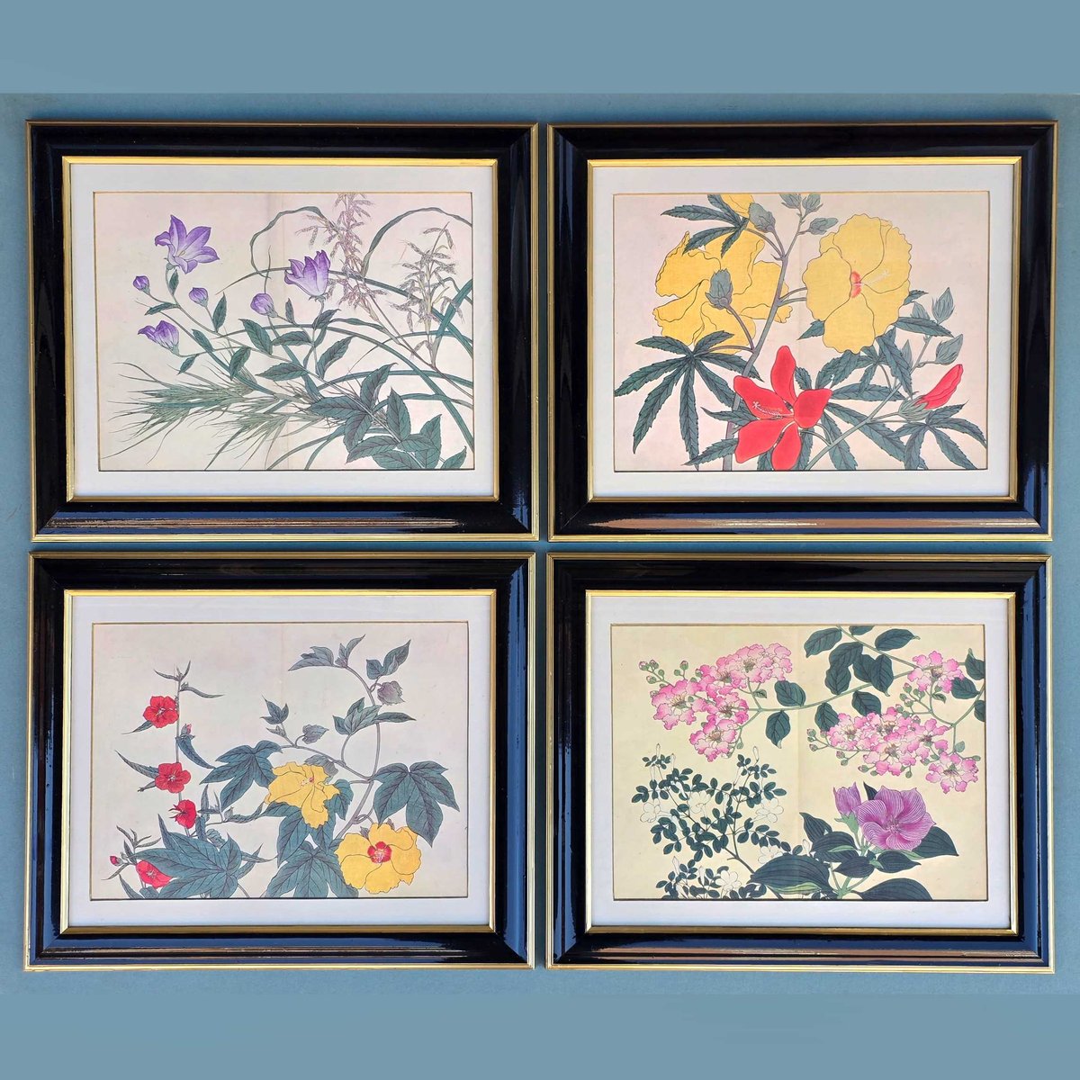 Stampe floreali incorniciate, Giappone, anni '50, set di 4