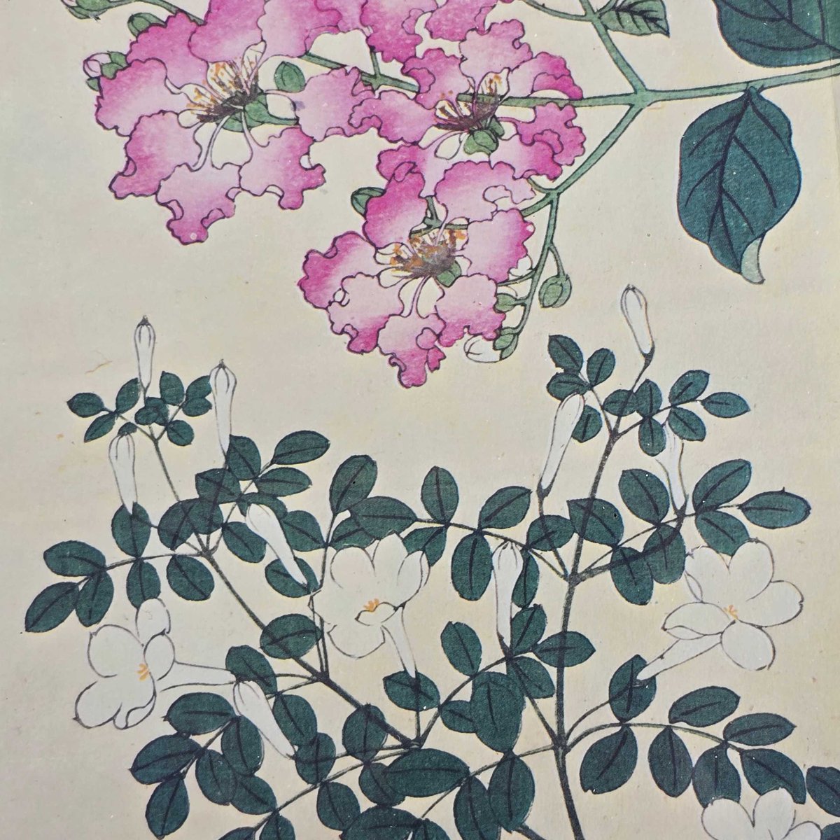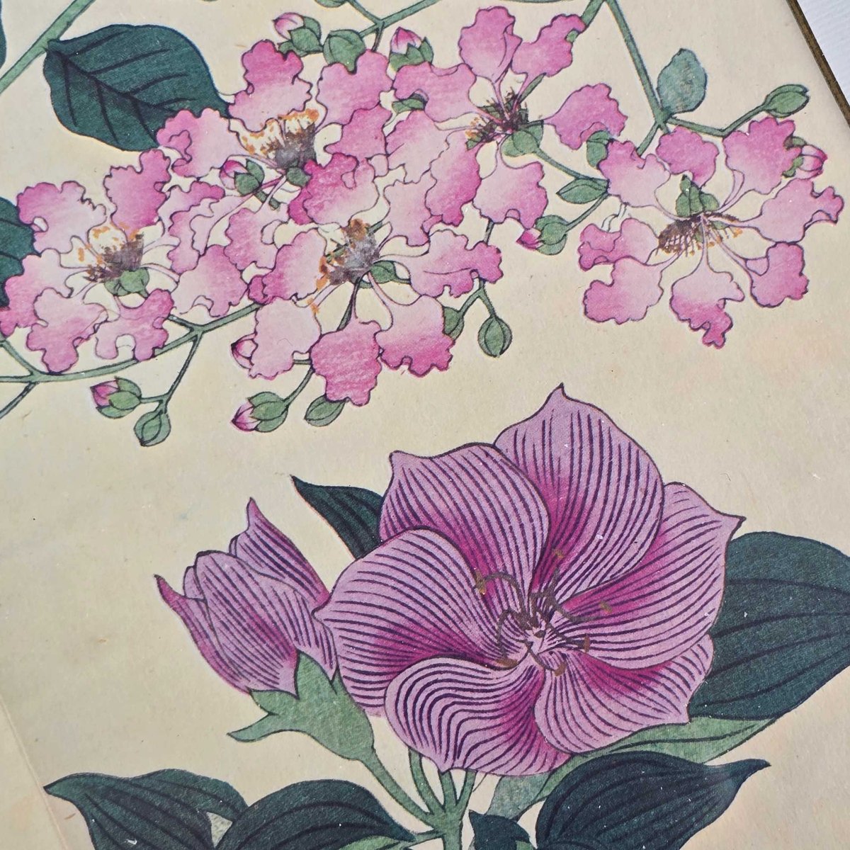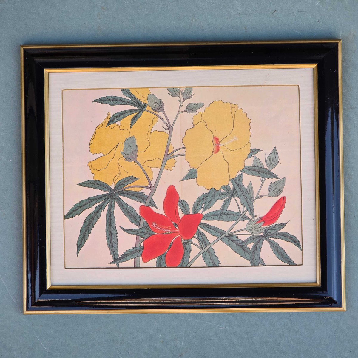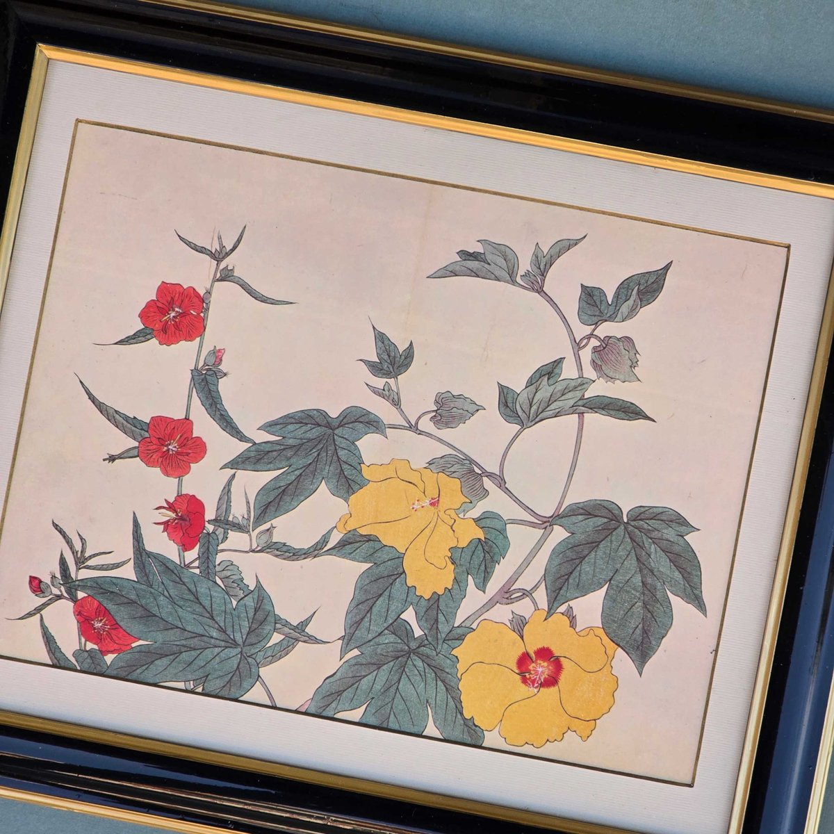 Stampe floreali incorniciate, Giappone, anni '50, set di 4