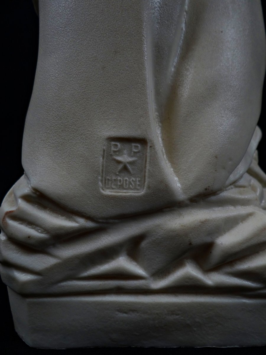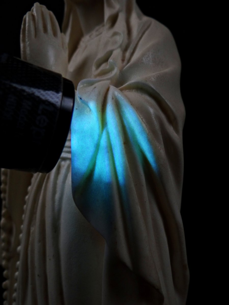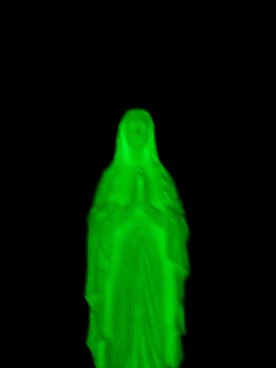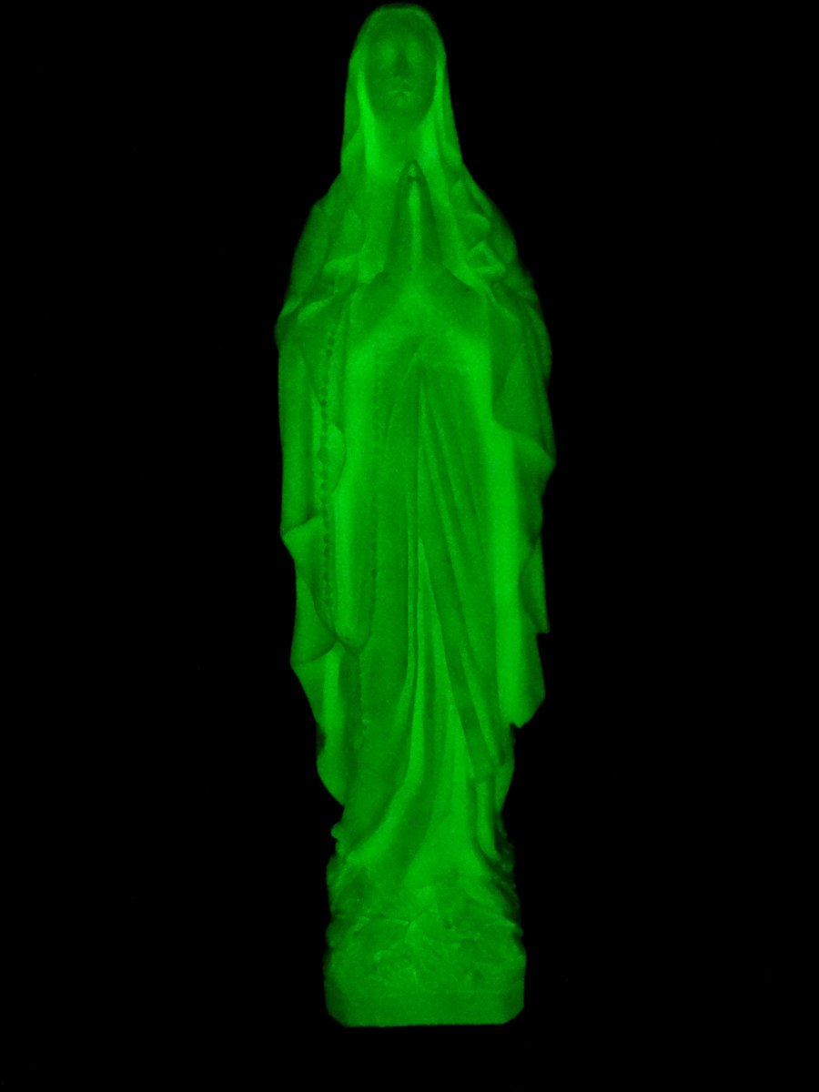 Statua Art Déco fosforescente della Vergine di Lourdes di Pieraccini-Pélissier, anni '20-'40