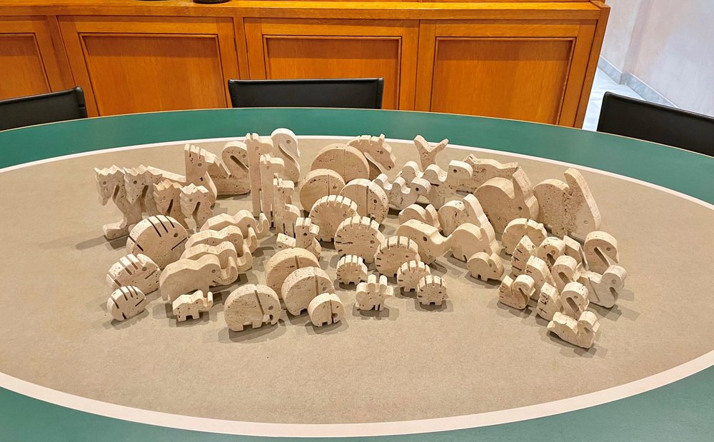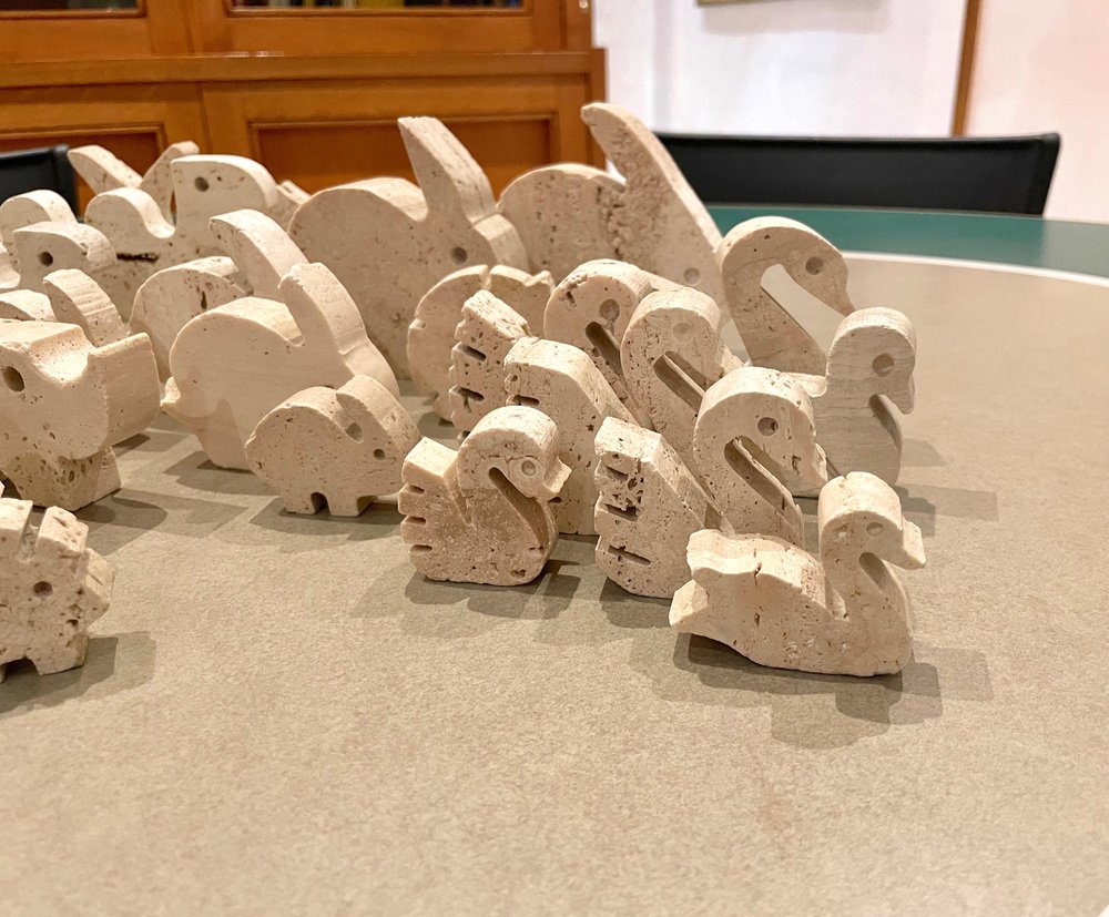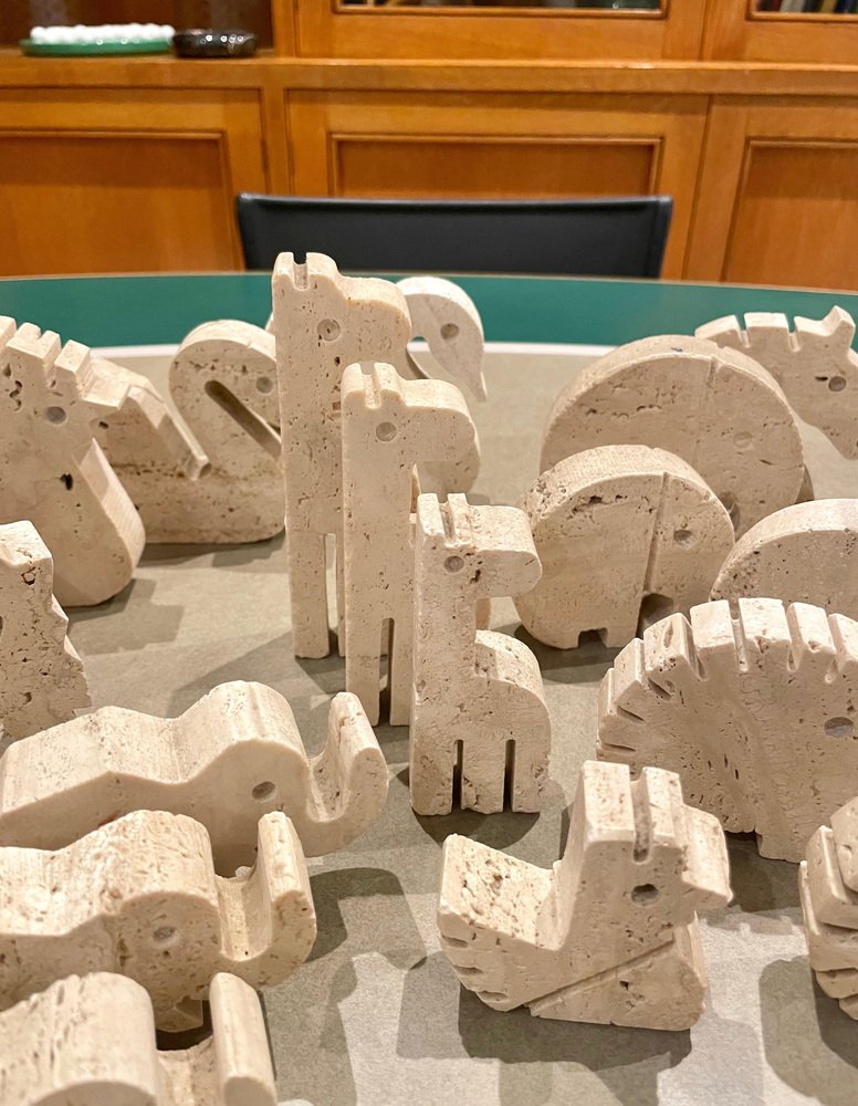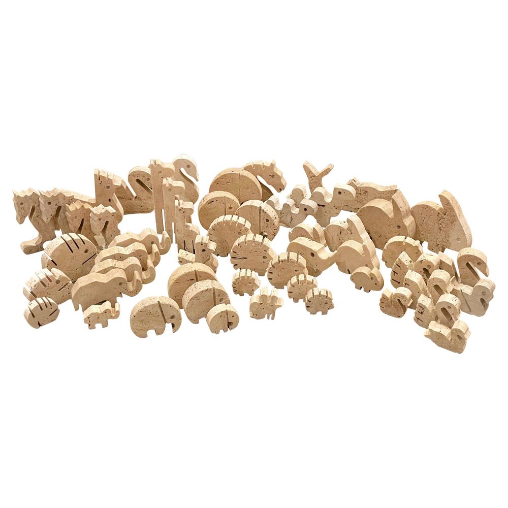 Statuette di animali in travertino di Fratelli Mannelli, Italia, anni '70, set di 52