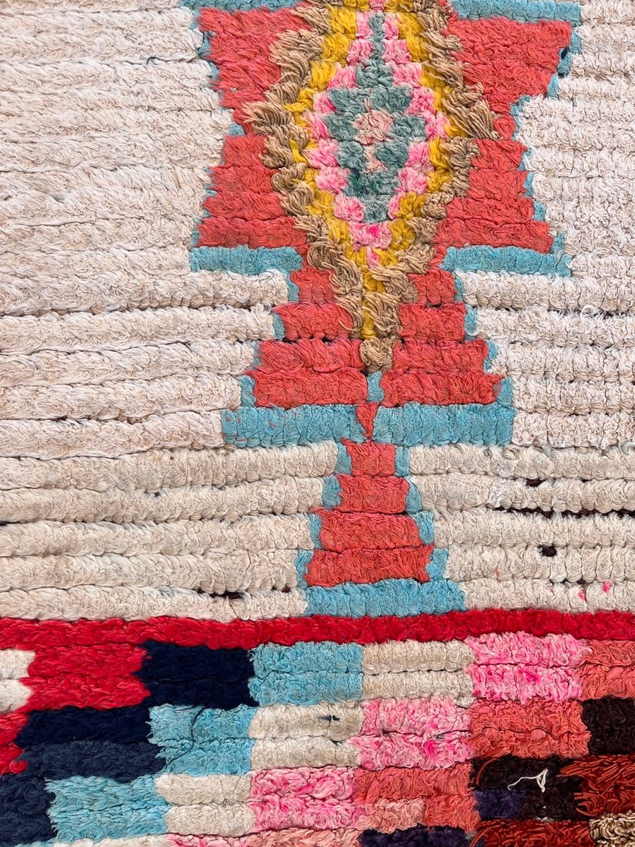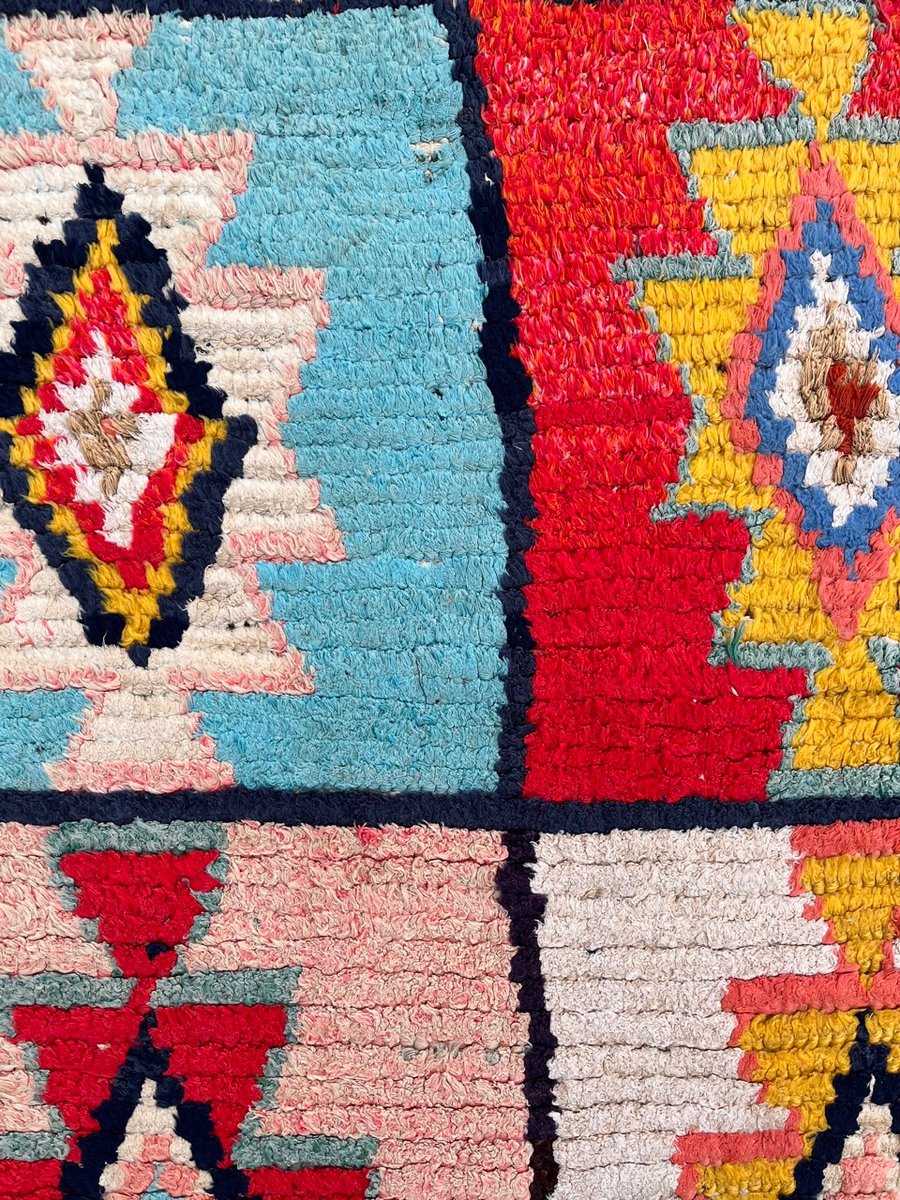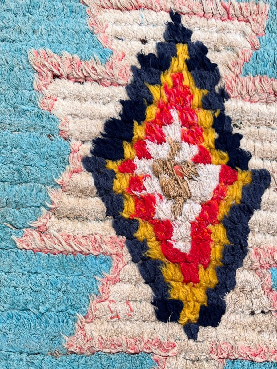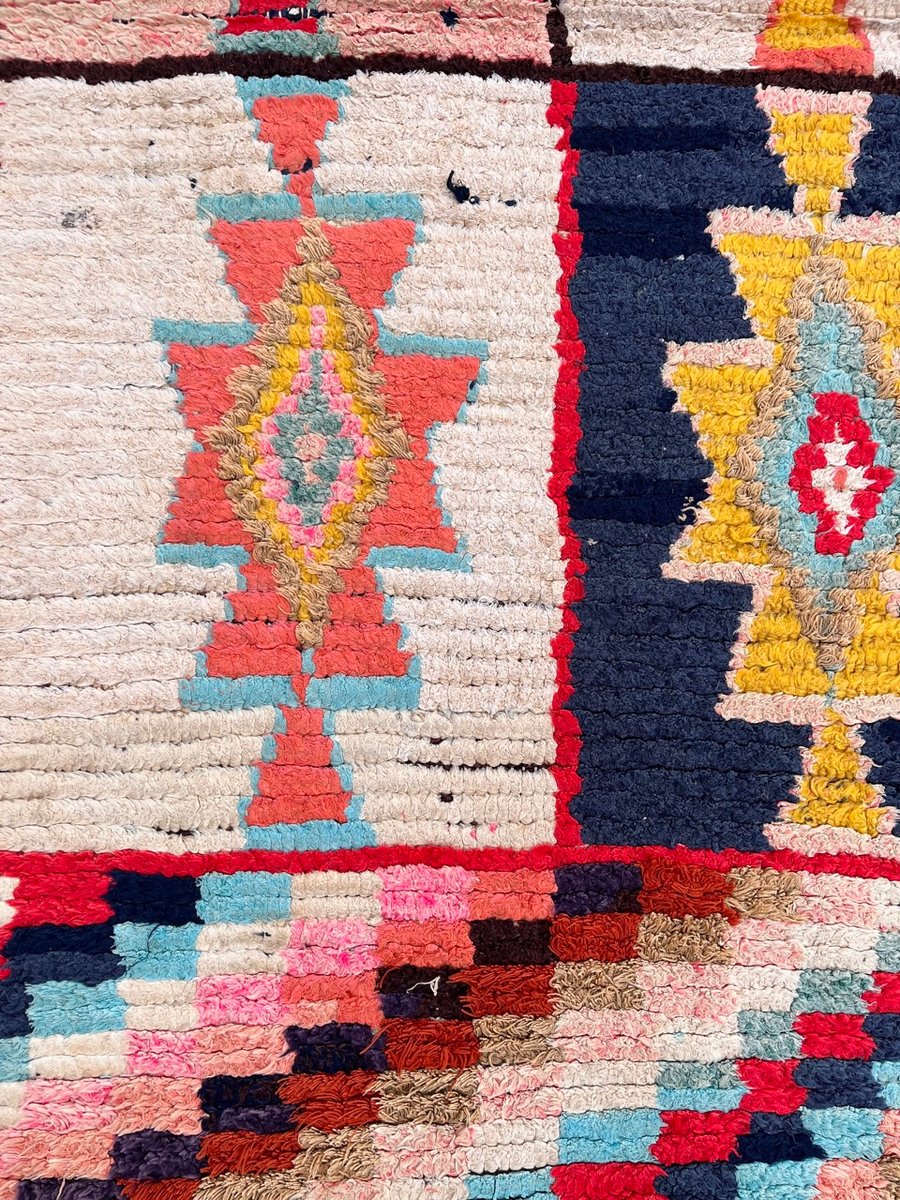 La bellezza del tappeto Boucheruite risiede nel suo design audace e accattivante. Gli intricati motivi geometrici, che simboleggiano antiche tradizioni e credenze, sono abilmente incorporati nel tessuto. Questi motivi, meticolosamente tessuti a mano, creano un capolavoro di grande impatto visivo che aggiungerà calore e carattere a qualsiasi spazio abitativo.