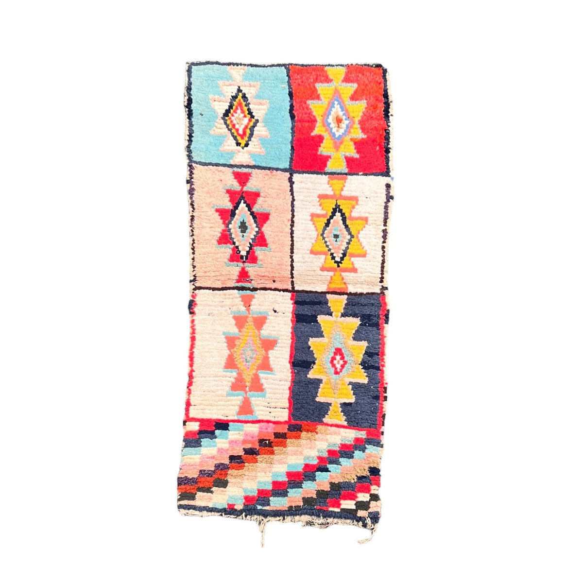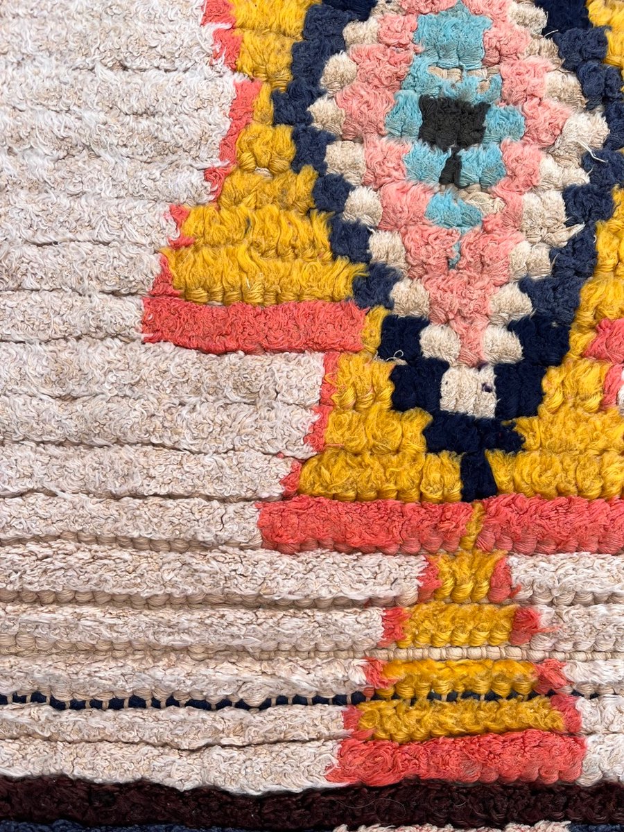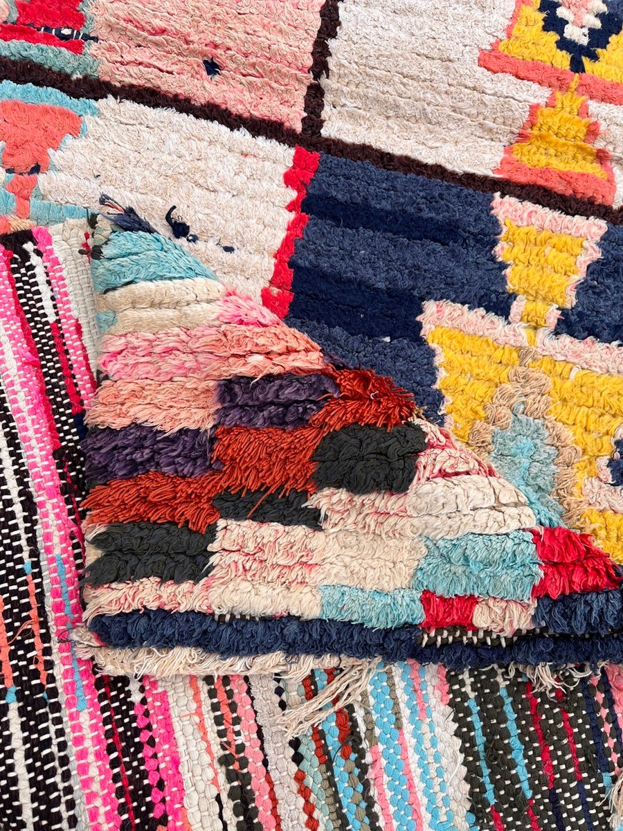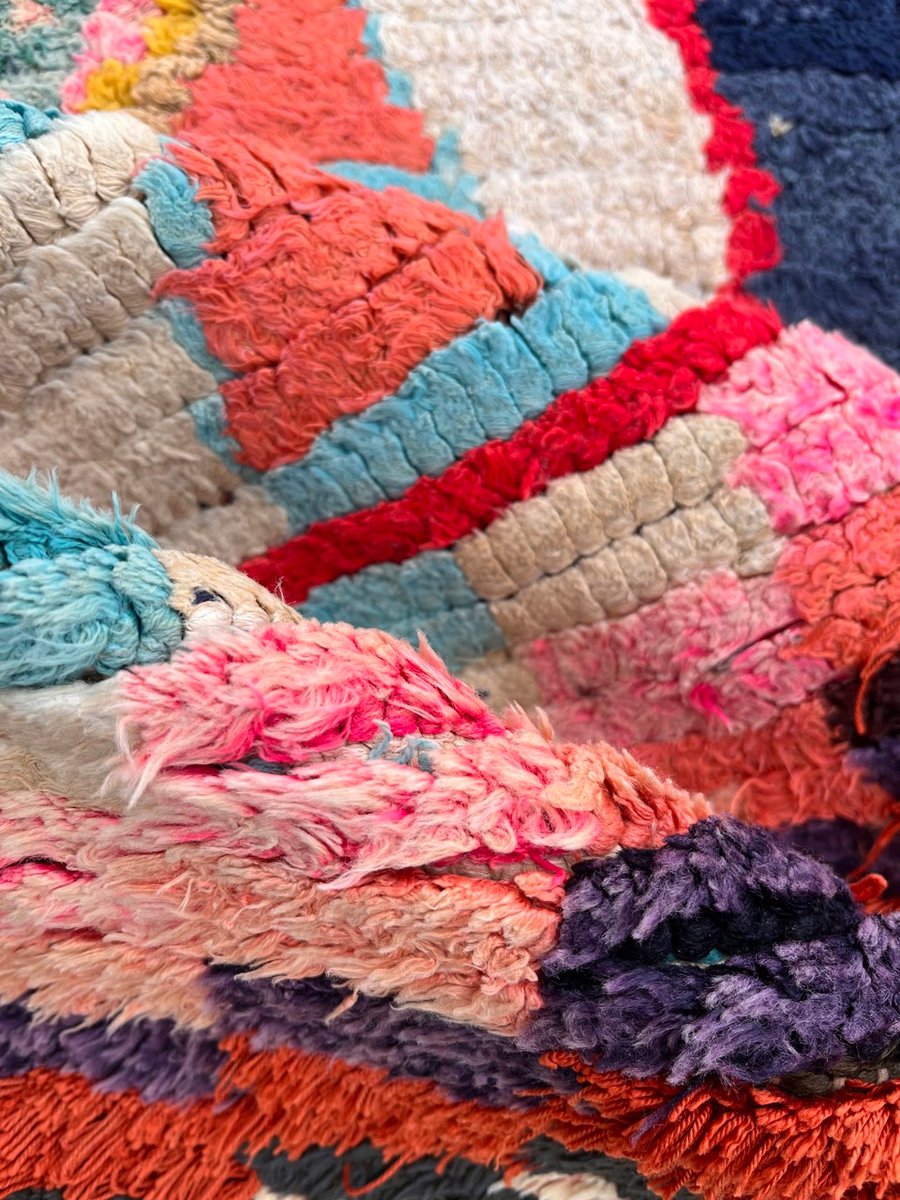 La bellezza del tappeto Boucheruite risiede nel suo design audace e accattivante. Gli intricati motivi geometrici, che simboleggiano antiche tradizioni e credenze, sono abilmente incorporati nel tessuto. Questi motivi, meticolosamente tessuti a mano, creano un capolavoro di grande impatto visivo che aggiungerà calore e carattere a qualsiasi spazio abitativo.