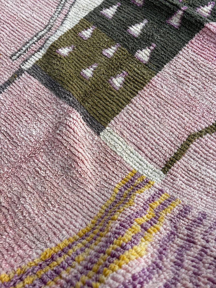 This Boujad rug integrates seamlessly into modern, bohemian, artistic, or eclectic interiors. Its soft color palette works particularly well with neutral spaces, natural materials, and minimalist furnishings, while still bringing warmth, texture, and personality. It is frequently selected by interior designers for projects seeking a refined yet expressive piece.