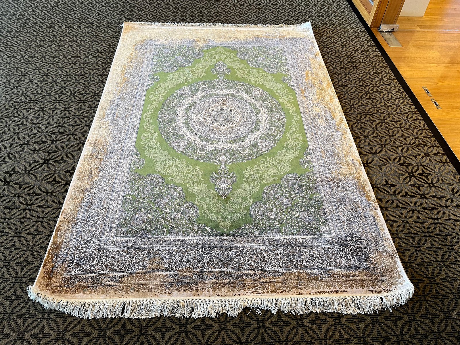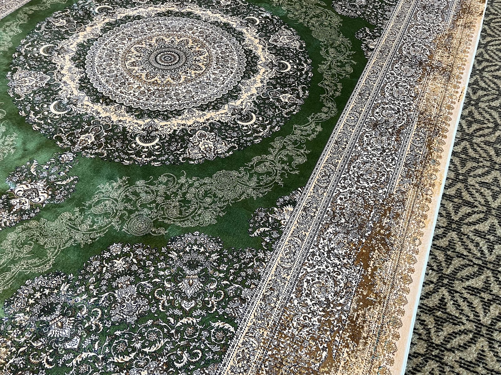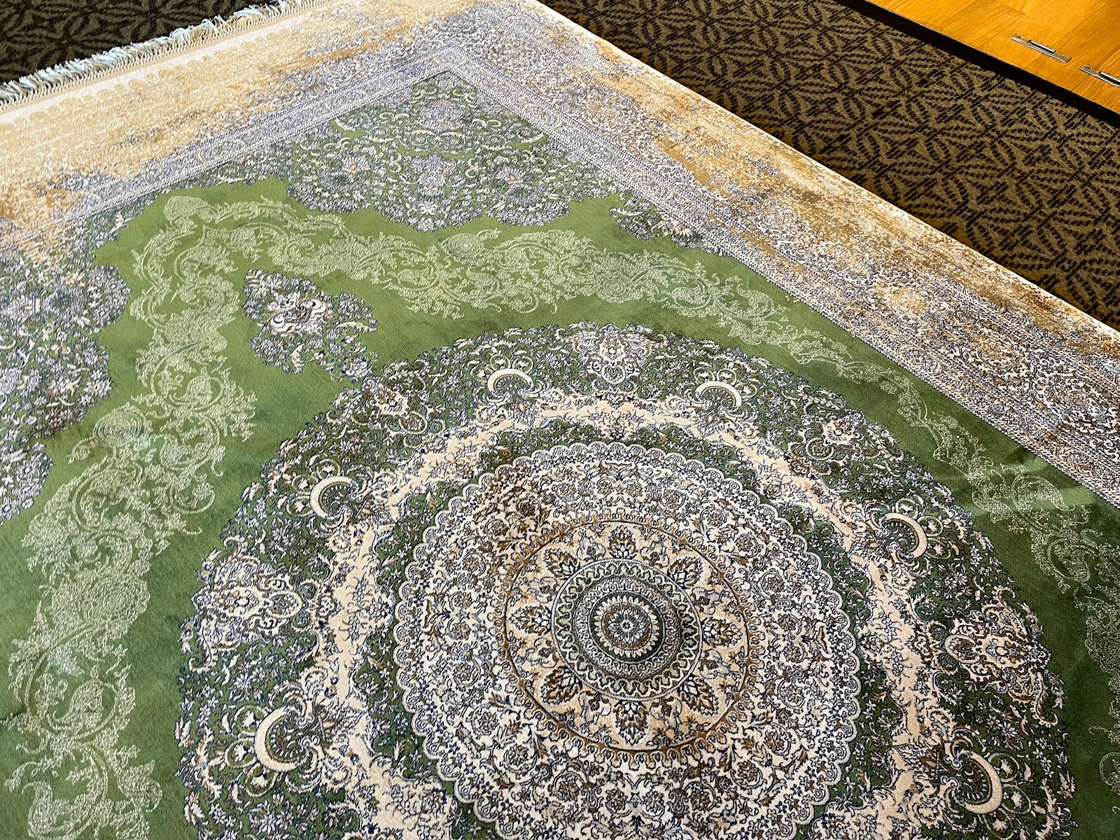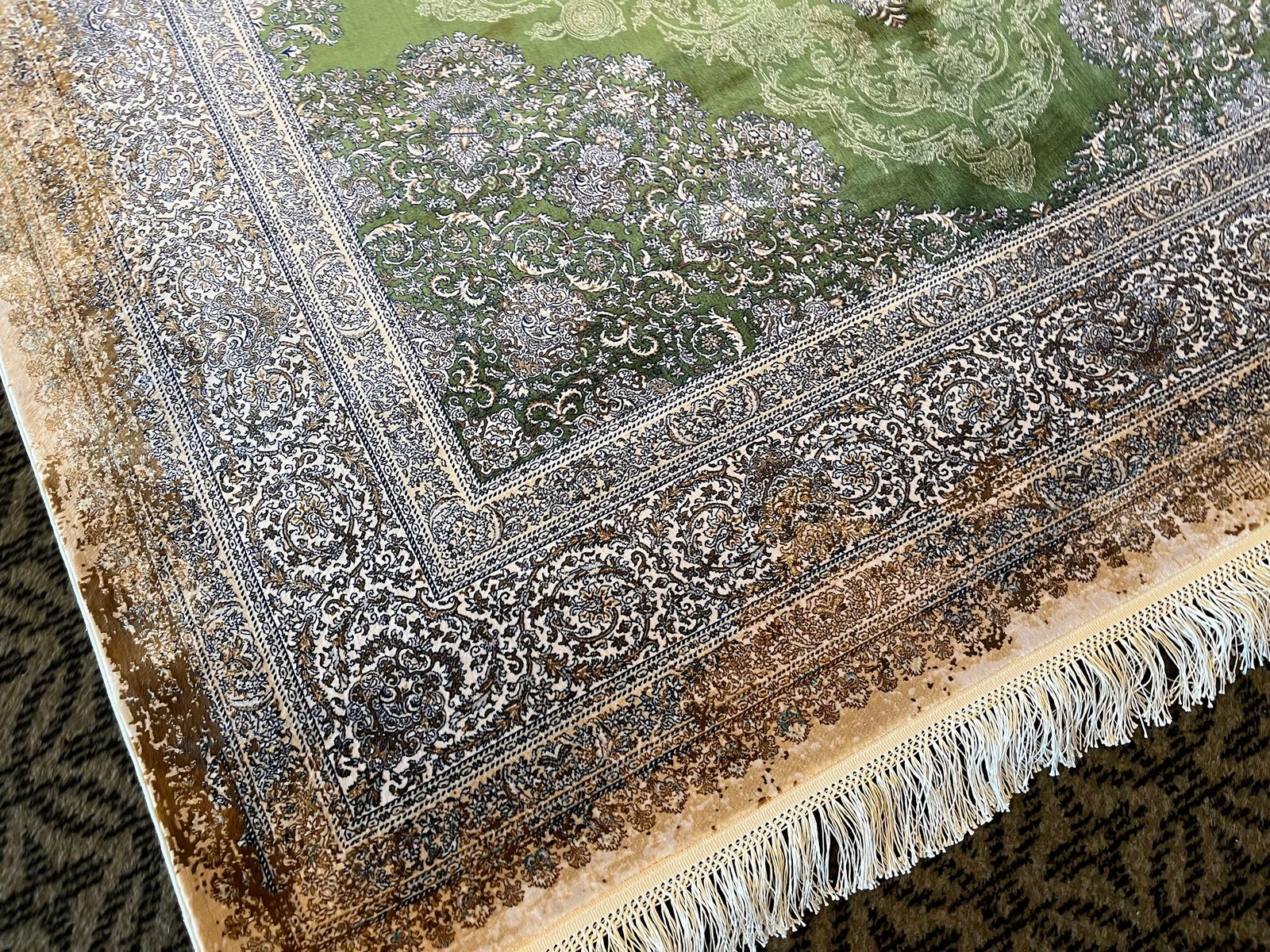 Tappeto in seta verde e oro