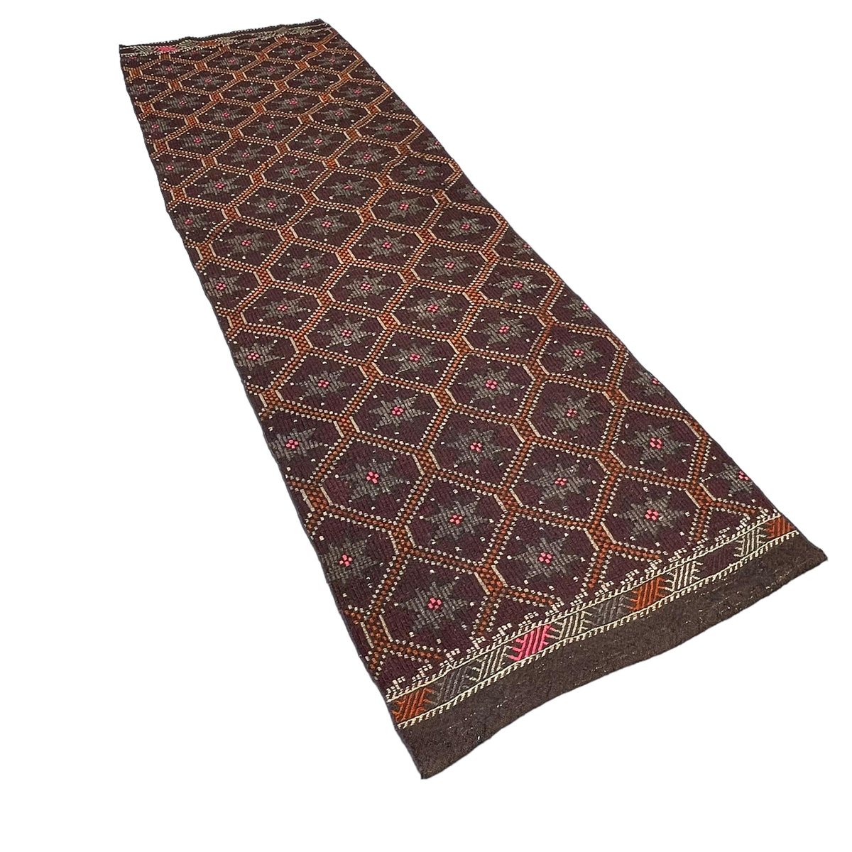 Questo tradizionale tappeto kilim turco, noto anche come kilim turco anatolico vintage, è un pezzo straordinario che misura 312 per 91 centimetri. Questo tappeto fatto a mano è realizzato con materiali di alta qualità, tra cui cotone e lana, per garantire un'eccellente durata e un uso prolungato. Il tappeto viene spedito da una piccola azienda in Germania, che ne garantisce l'arrivo in perfette condizioni. Il tappeto, che risale agli anni '60, aggiungerà carattere e fascino a qualsiasi stanza e la sua lavorazione artigianale non mancherà di stupire. Le dimensioni del tappeto sono 91 cm di larghezza e 312 cm di lunghezza, il che lo rende perfetto per stanze di medie e grandi dimensioni. I colori tenui e sfumati del tappeto Kilim sono tinti naturalmente, creando una bella tonalità che si sposa bene con diverse palette di colori. La qualità dei materiali e la lavorazione artigianale garantiscono che il tappeto resista alla prova del tempo e mantenga la sua bellezza e praticità per gli anni a venire. Questo tappeto tradizionale turco Kilim è ideale per essere utilizzato in qualsiasi stanza e aggiungerà un tocco di eleganza e calore all'arredamento della vostra casa. I materiali durevoli del tappeto lo rendono perfetto per le aree ad alto traffico come soggiorni, sale da pranzo e persino camere da letto. Il venditore pulisce professionalmente tutti i tappeti prima della spedizione per garantire una pulizia ottimale e un piacere immediato per il cliente. Il venditore garantisce inoltre che la produzione di questo tappeto non ha comportato l'impiego di manodopera infantile, in quanto è stato prodotto in condizioni di lavoro eque e dignitose. Il venditore è coinvolto nell'iniziativa Care & Fair contro il lavoro minorile nel commercio dei tappeti, a dimostrazione del suo impegno verso pratiche di produzione etiche e responsabili. Portate subito a casa questo tappeto Kilim tradizionale di straordinaria bellezza e aggiungete un tocco di eleganza e calore all'arredamento della vostra casa.