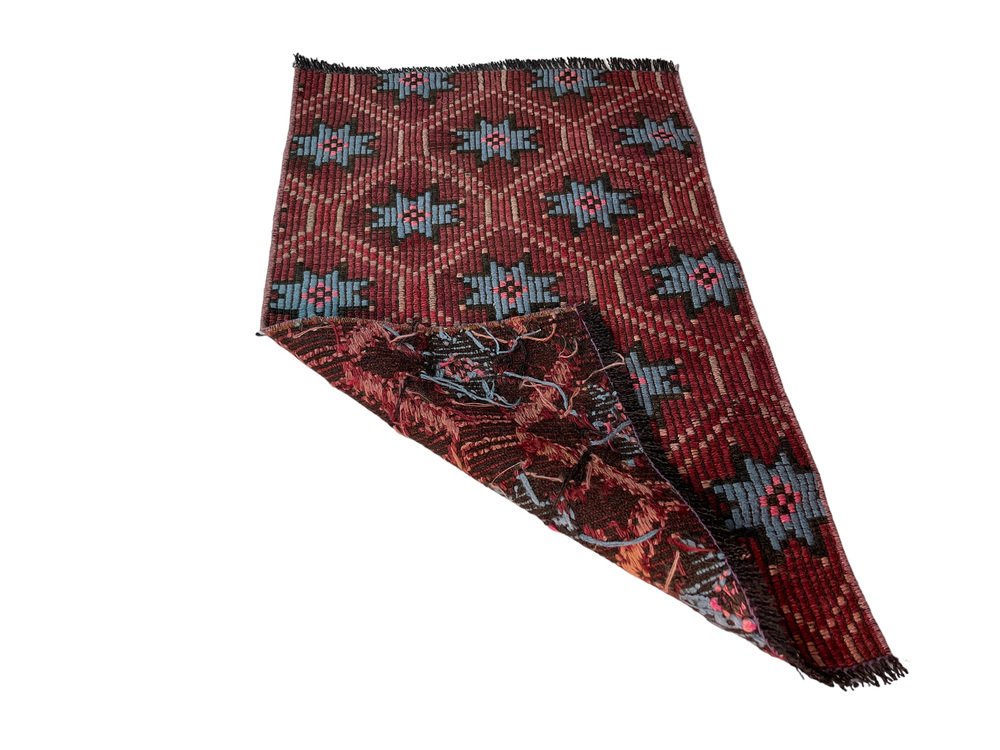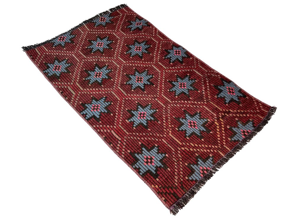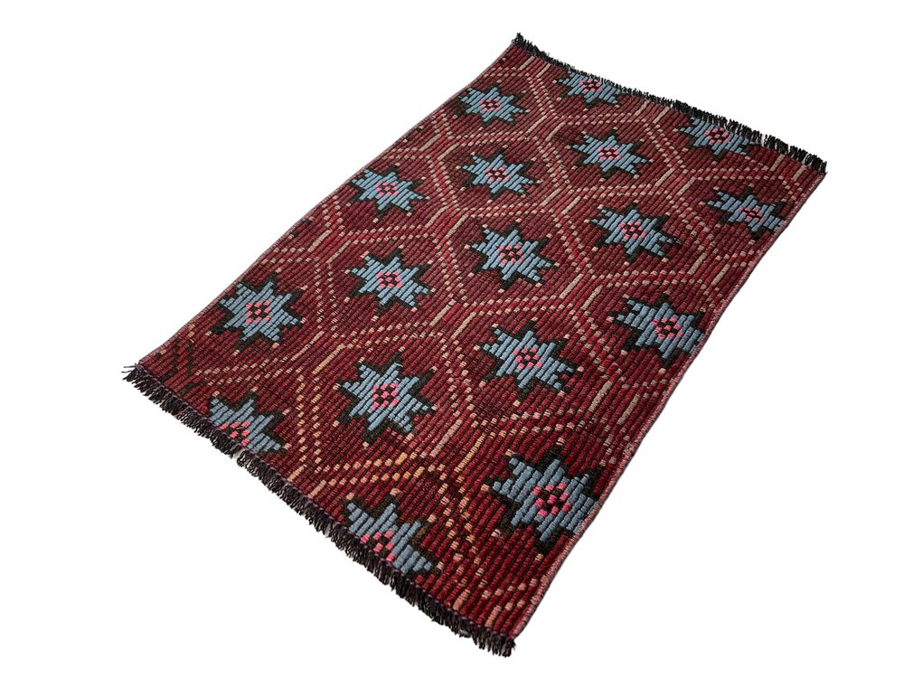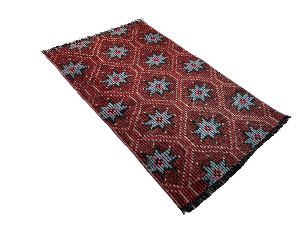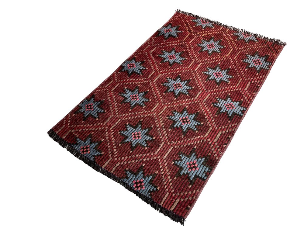 Tappeto kilim turco vintage, 91 X 57 cm. Piccolo e grazioso kilim turco, realizzato negli anni '70, è un grazioso tappeto della Turchia centrale proveniente dalla regione di Sivas, tessuto con lana tinta naturalmente in variazioni di colore.