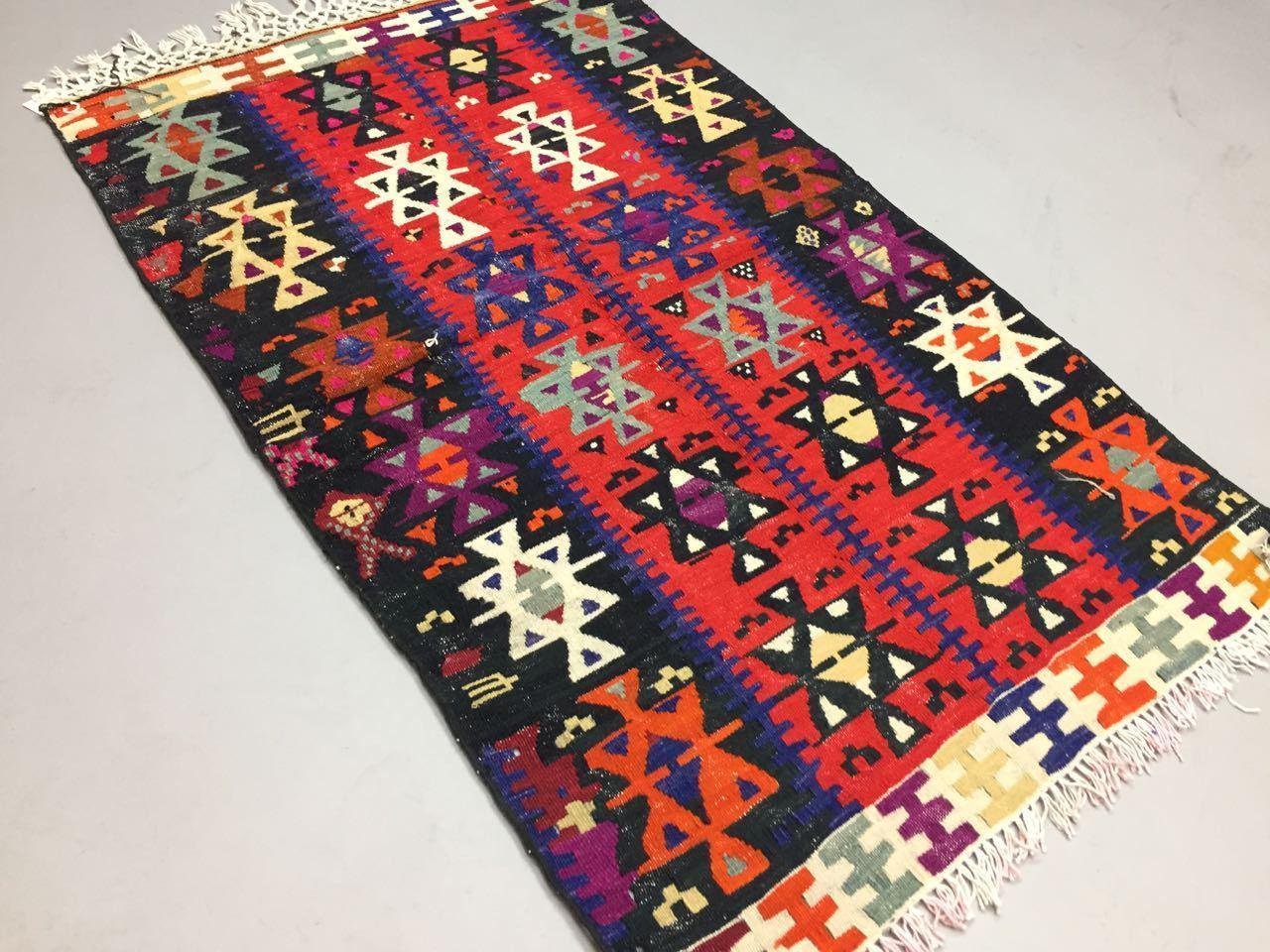 Tappeto Kilim vintage tradizionale in lana shabby 122x89 cm, Turchia