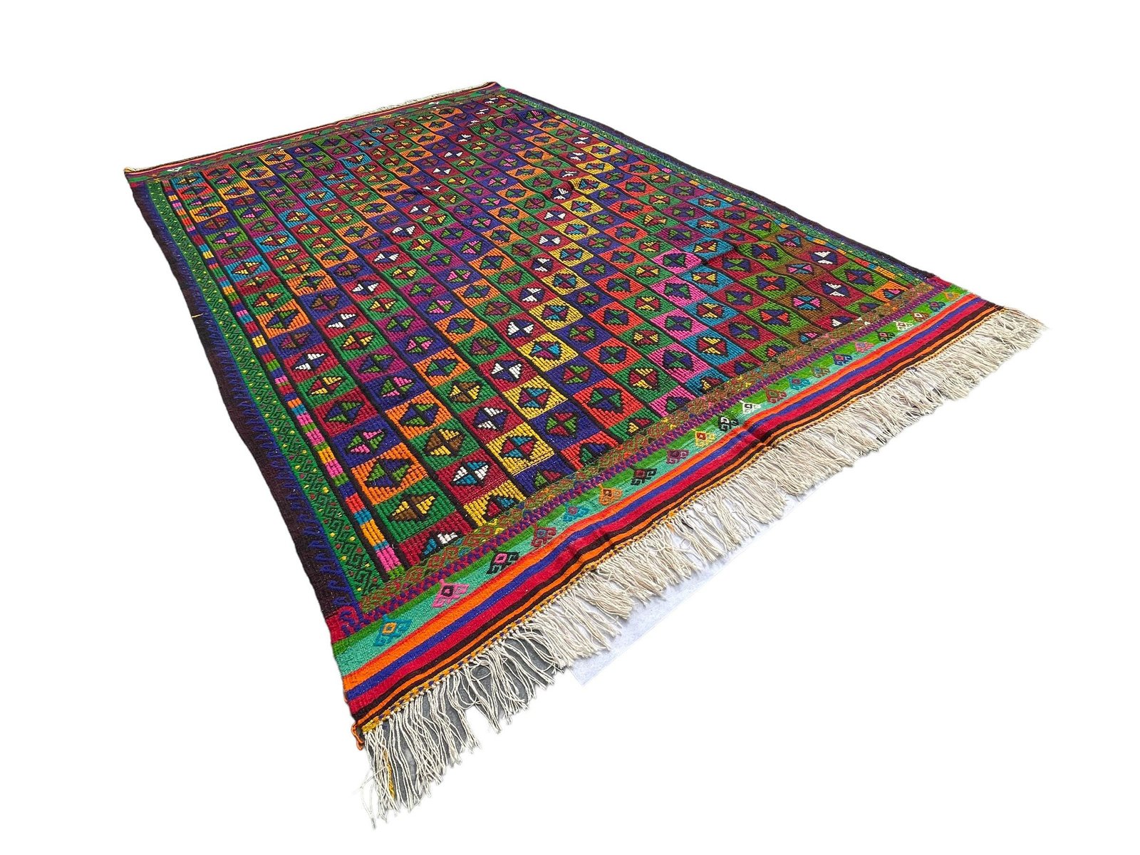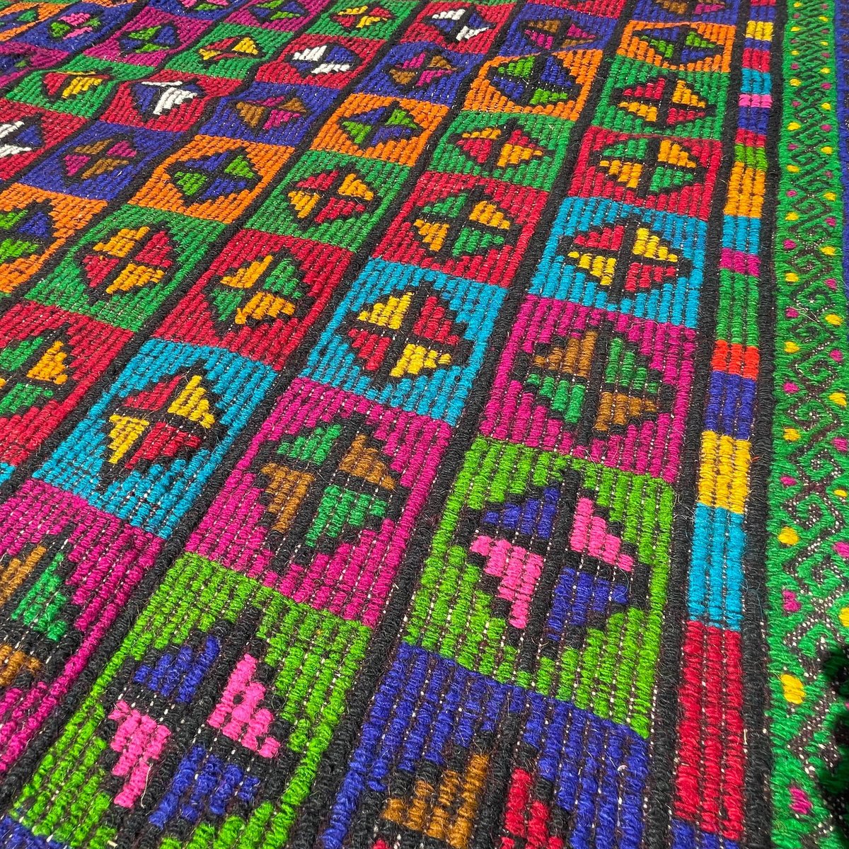 Questo tradizionale tappeto kilim turco, noto anche come kilim turco anatolico vintage, è un pezzo straordinario che misura 305 per 210 centimetri. Questo tappeto fatto a mano è realizzato con materiali di alta qualità, tra cui cotone e lana, per garantire un'eccellente durata e un uso prolungato. Il tappeto viene spedito da una piccola azienda in Germania, che ne garantisce l'arrivo in perfette condizioni. Il tappeto, che risale agli anni '60, aggiungerà carattere e fascino a qualsiasi ambiente e la sua lavorazione artigianale non mancherà di stupire. Le dimensioni del tappeto sono 210 cm di larghezza e 305 cm di lunghezza, il che lo rende perfetto per stanze medio-grandi. I colori tenui e sfumati del tappeto Kilim sono tinti naturalmente, creando una bella tonalità che si sposa bene con diverse palette di colori. La qualità dei materiali e la lavorazione artigianale garantiscono che il tappeto resista alla prova del tempo e mantenga la sua bellezza e praticità per gli anni a venire. Questo tradizionale tappeto turco Kilim è ideale per essere utilizzato in qualsiasi stanza e aggiungerà un tocco di eleganza e calore all'arredamento della vostra casa. I materiali durevoli del tappeto lo rendono perfetto per le aree ad alto traffico come soggiorni, sale da pranzo e persino camere da letto. Il venditore pulisce professionalmente tutti i tappeti prima della spedizione per garantire una pulizia ottimale e un piacere immediato per il cliente. Il venditore garantisce inoltre che la produzione di questo tappeto non ha comportato l'impiego di manodopera infantile, in quanto è stato prodotto in condizioni di lavoro eque e dignitose. Il venditore è coinvolto nell'iniziativa Care & Fair contro il lavoro minorile nel commercio dei tappeti, a dimostrazione del suo impegno verso pratiche di produzione etiche e responsabili. Acquistate subito questo tappeto Kilim tradizionale turco di straordinaria bellezza e aggiungete un tocco di eleganza e calore all'arredamento della vostra casa. LL2084_305x210