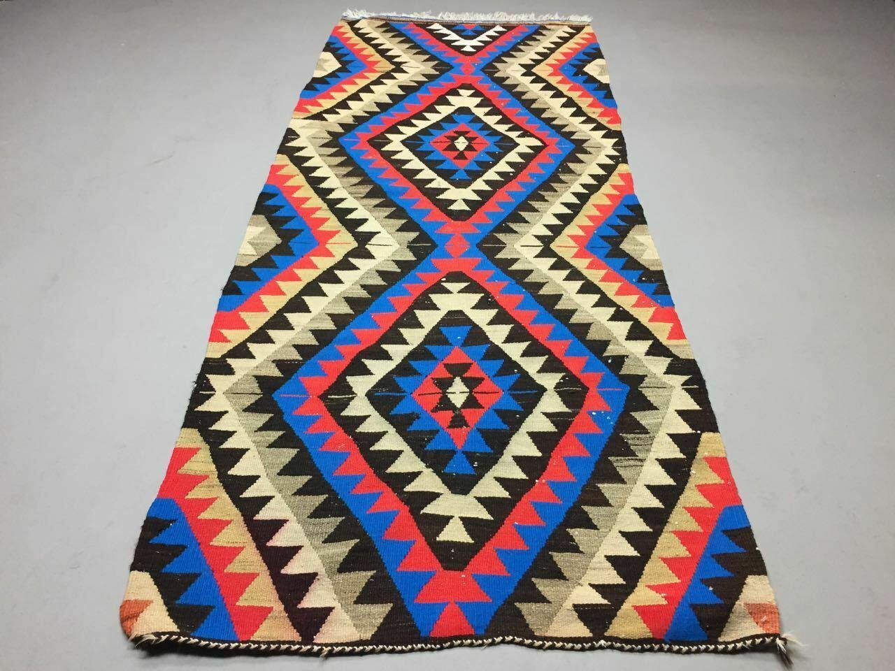 Tappeto Kilim vintage turco in lana misera 230x95 cm
