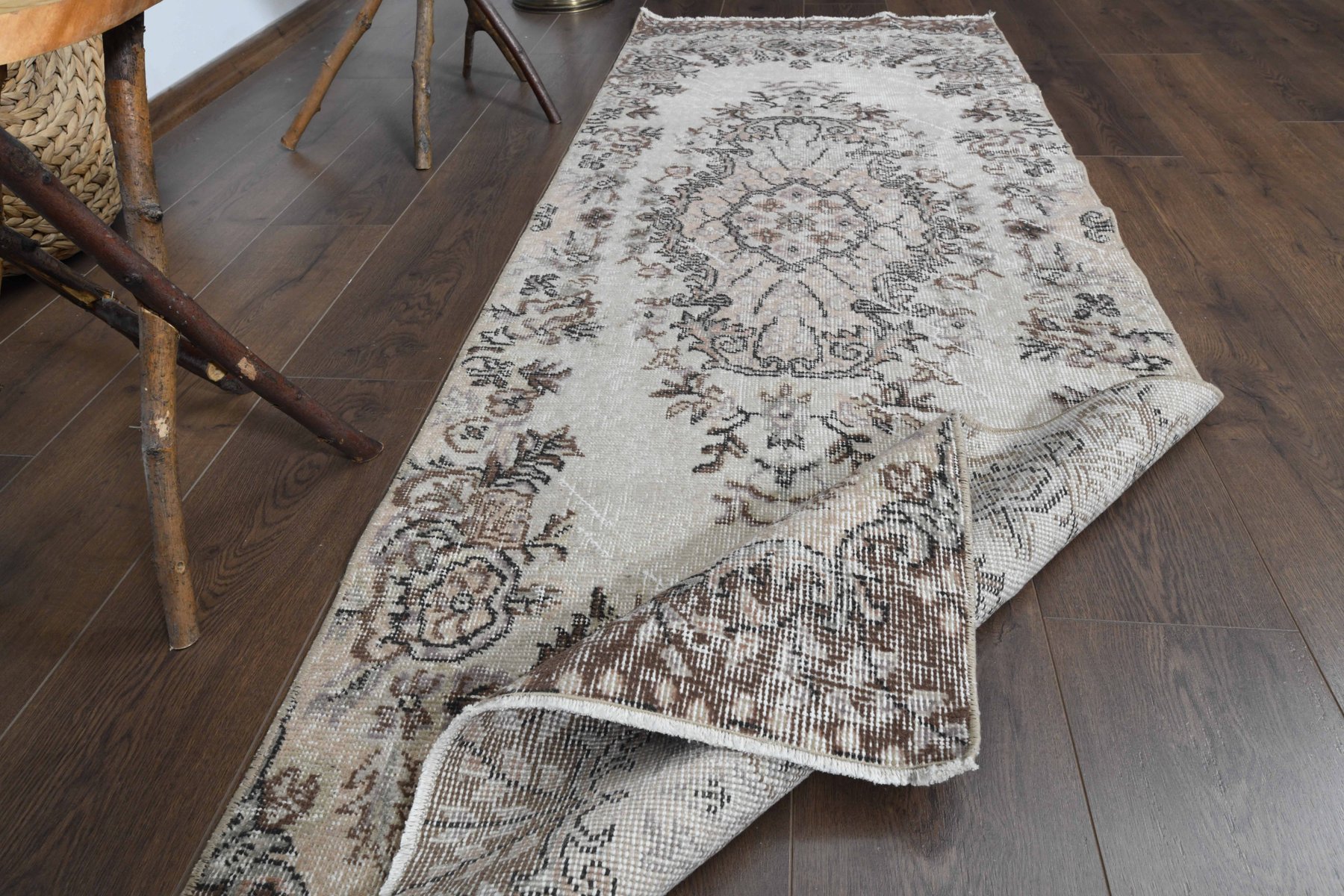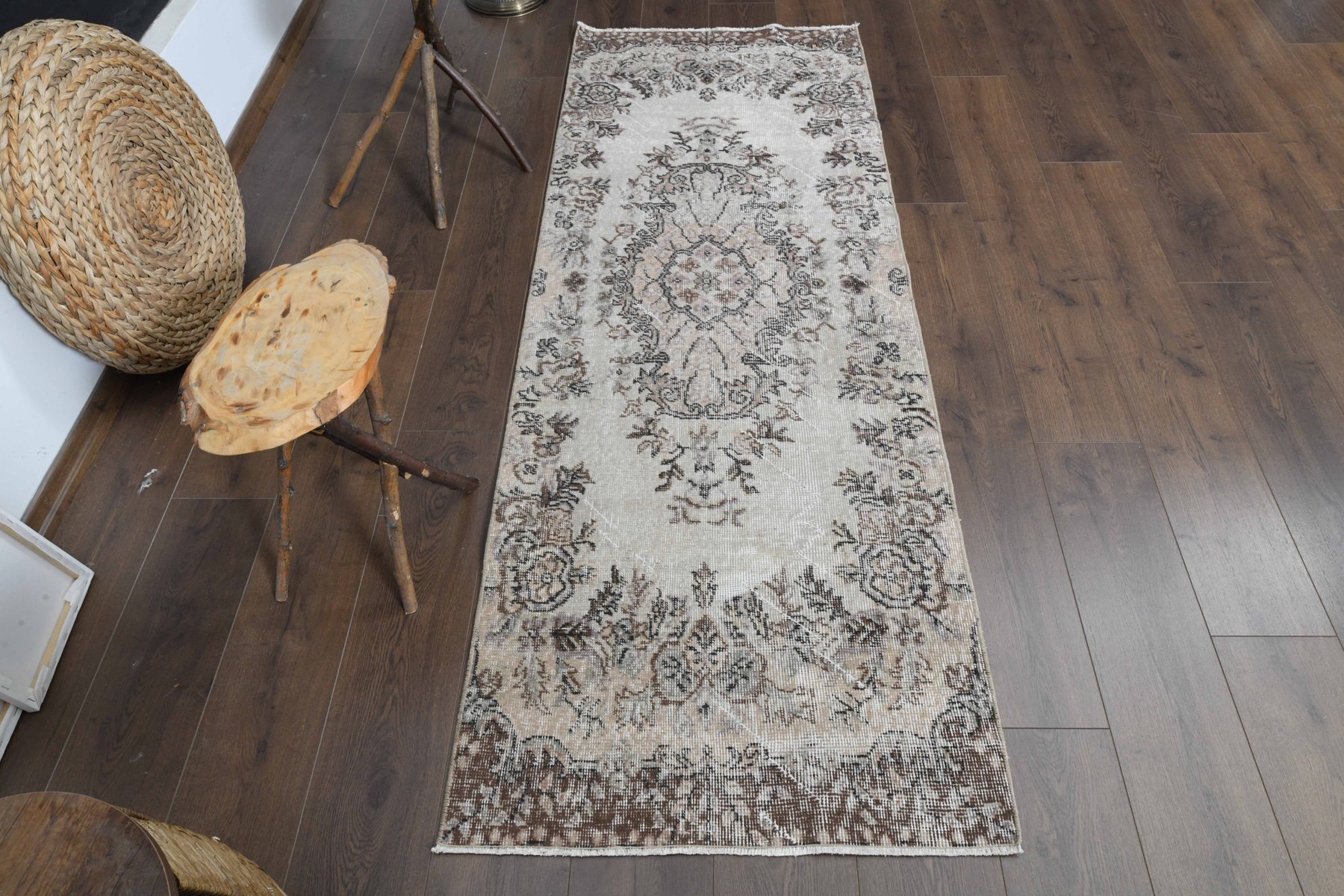 This One-of-a-kind Vintage Runner Rug is hand-knotted and handwoven by the most skilled artisans who use pure wool, in muted, natural tones, and stylish, floral design in Color. It is in very good condition, professionally cleaned, and ready for delivery. This unique rug is handmade by skilled artisans with very fine quality handspun wool which extends the durability of the rug for generations. Turkish vintage rugs each one is a piece of artwork and each tells a story through its designs and colors. They make any place in your home look amazing. Pile Height: Low Pile 0.2” (0.5 cm)