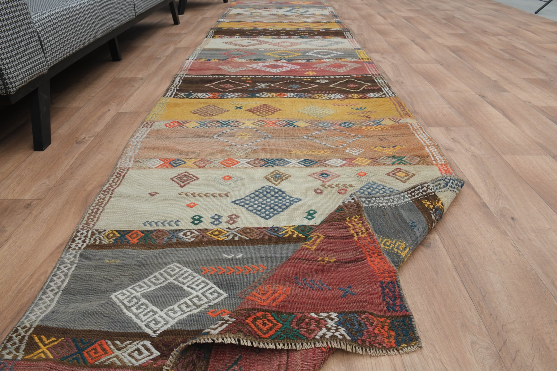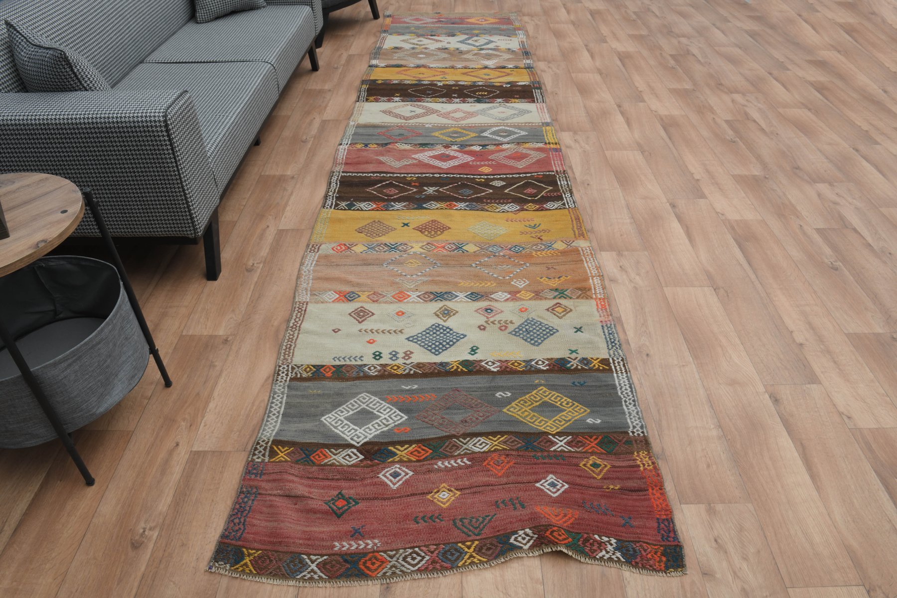 Questo tappeto vintage Runner, unico nel suo genere, è annodato e tessuto a mano dai più abili artigiani che utilizzano pura lana, in tonalità tenui e naturali, e un elegante disegno floreale a colori. È in ottime condizioni, pulito professionalmente e pronto per la consegna. Questo tappeto unico è realizzato a mano da abili artigiani con lana filata a mano di qualità finissima che prolunga la durata del tappeto per generazioni. I tappeti vintage turchi sono tutti opere d'arte e raccontano una storia attraverso i loro disegni e colori. Rendono ogni luogo della vostra casa un'opera d'arte. Altezza del pelo: Pile basso 0,2" (0,5 cm)