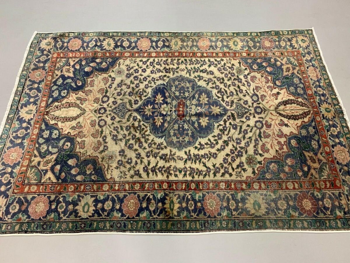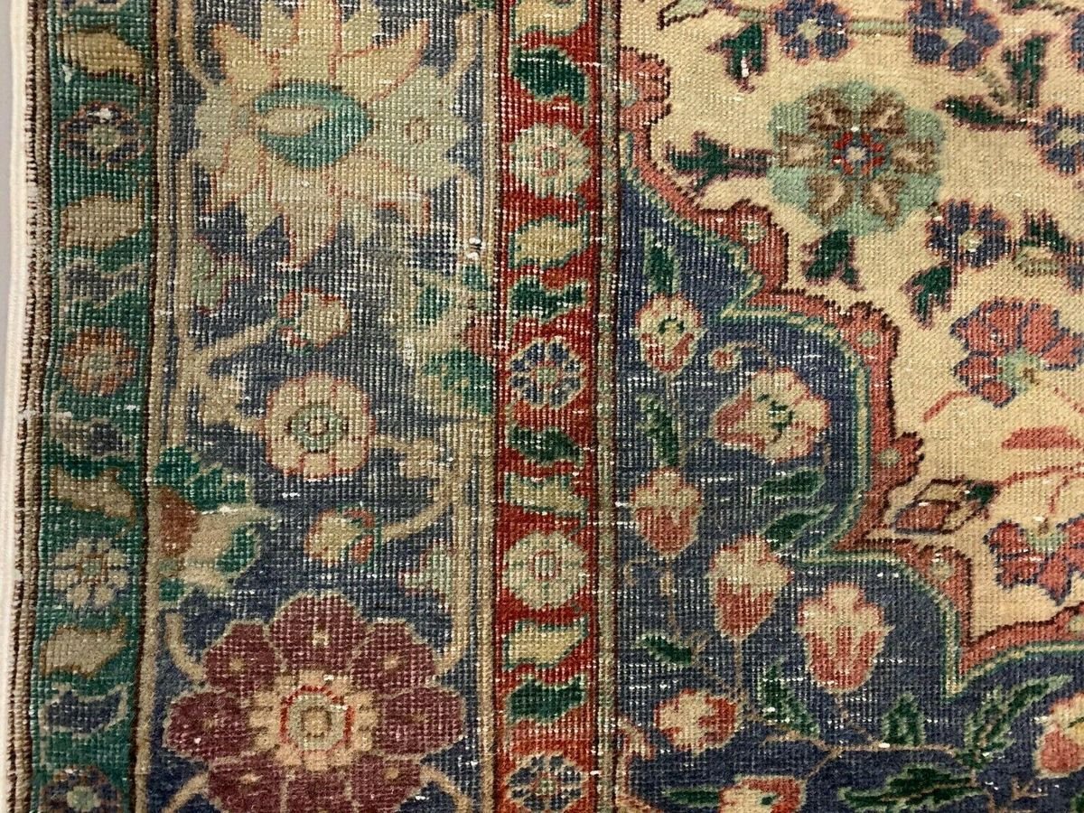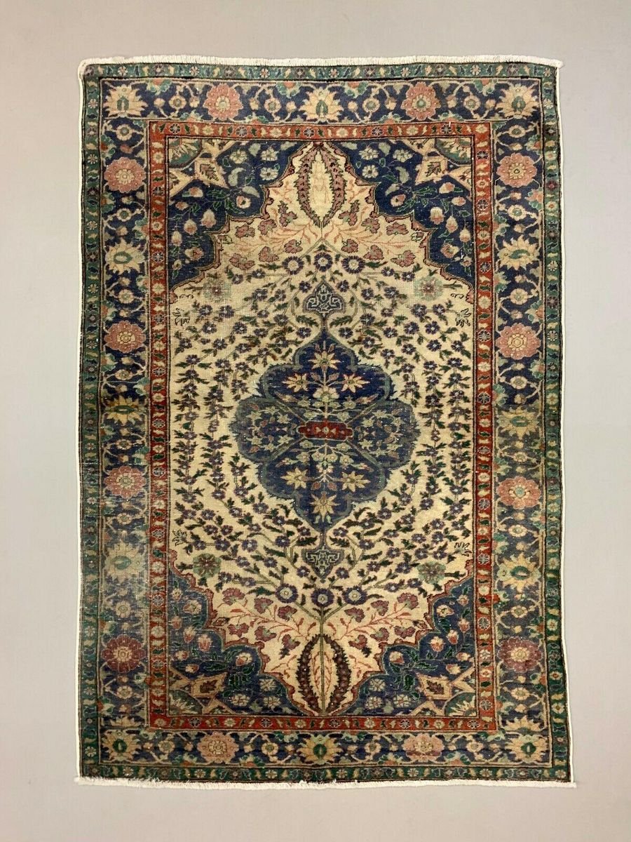 Tappeto tribale in lana blu e beige turchese, anni '40