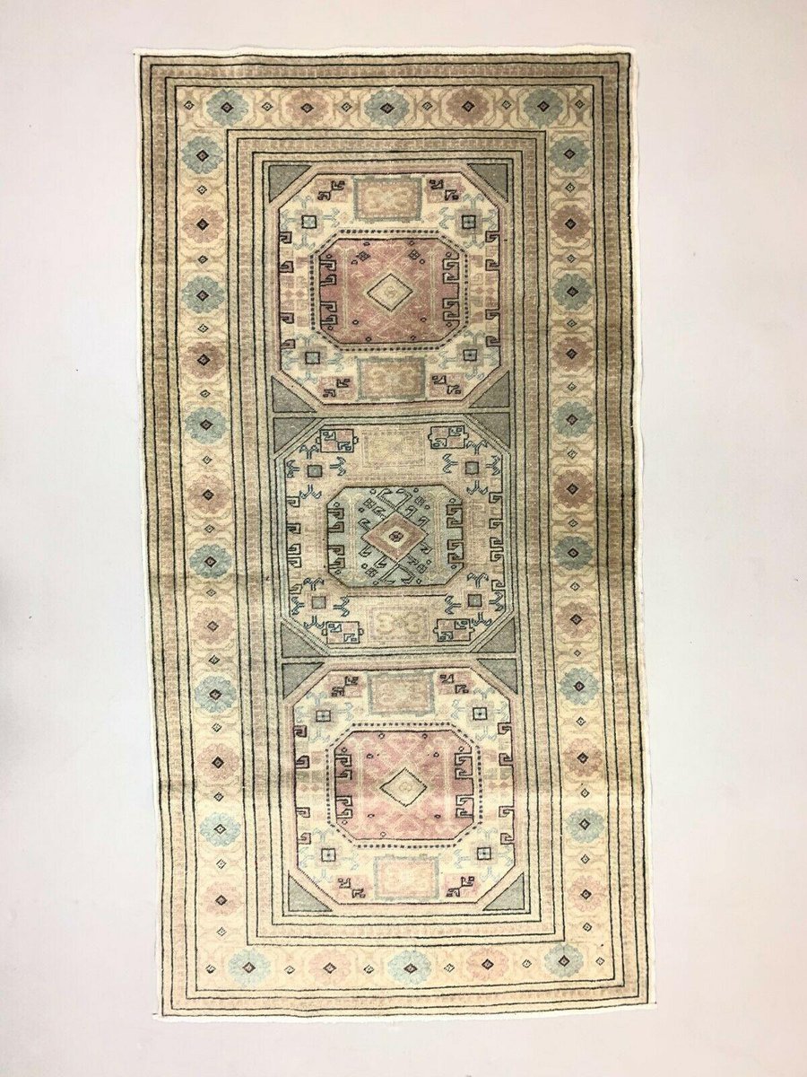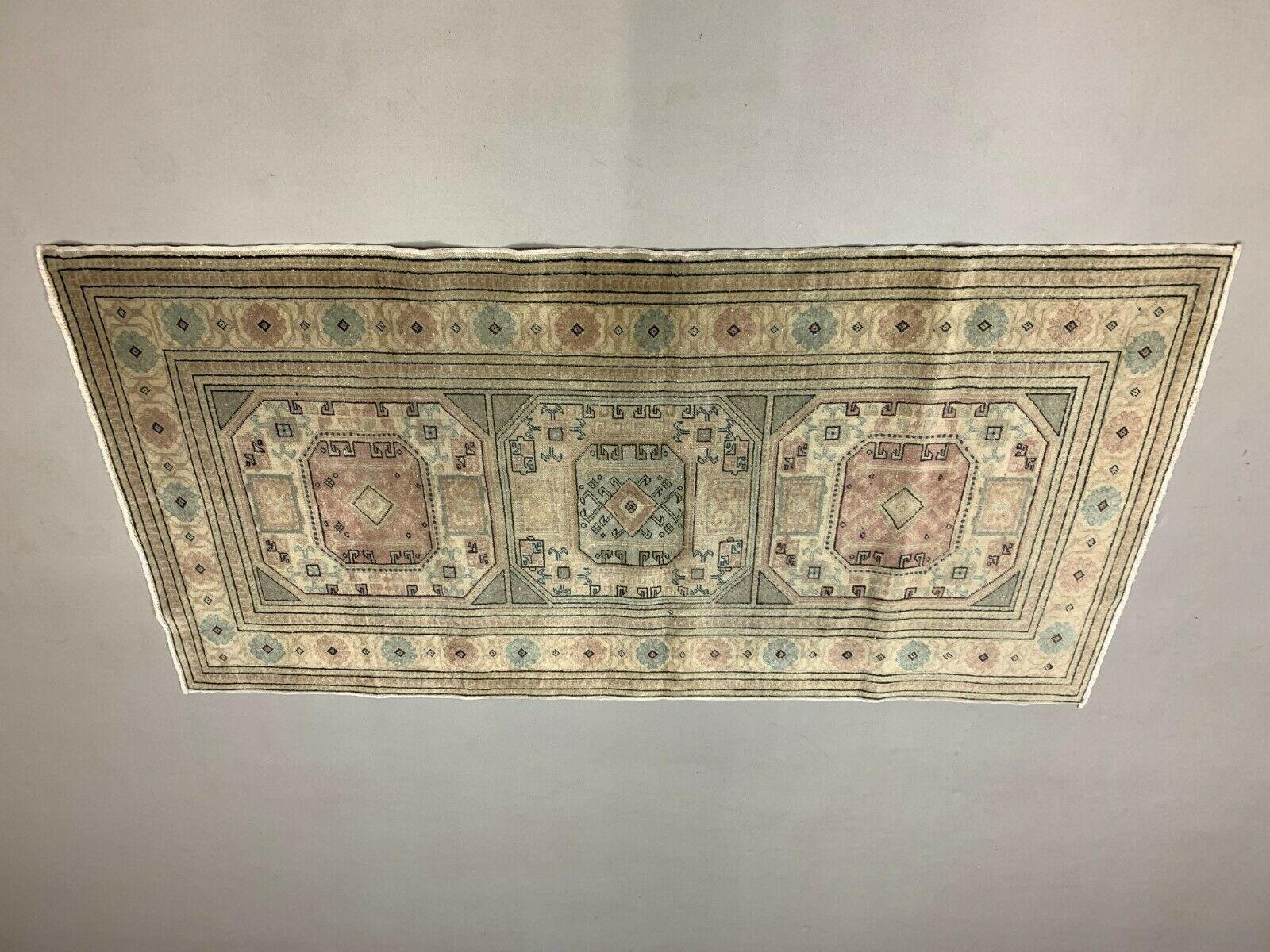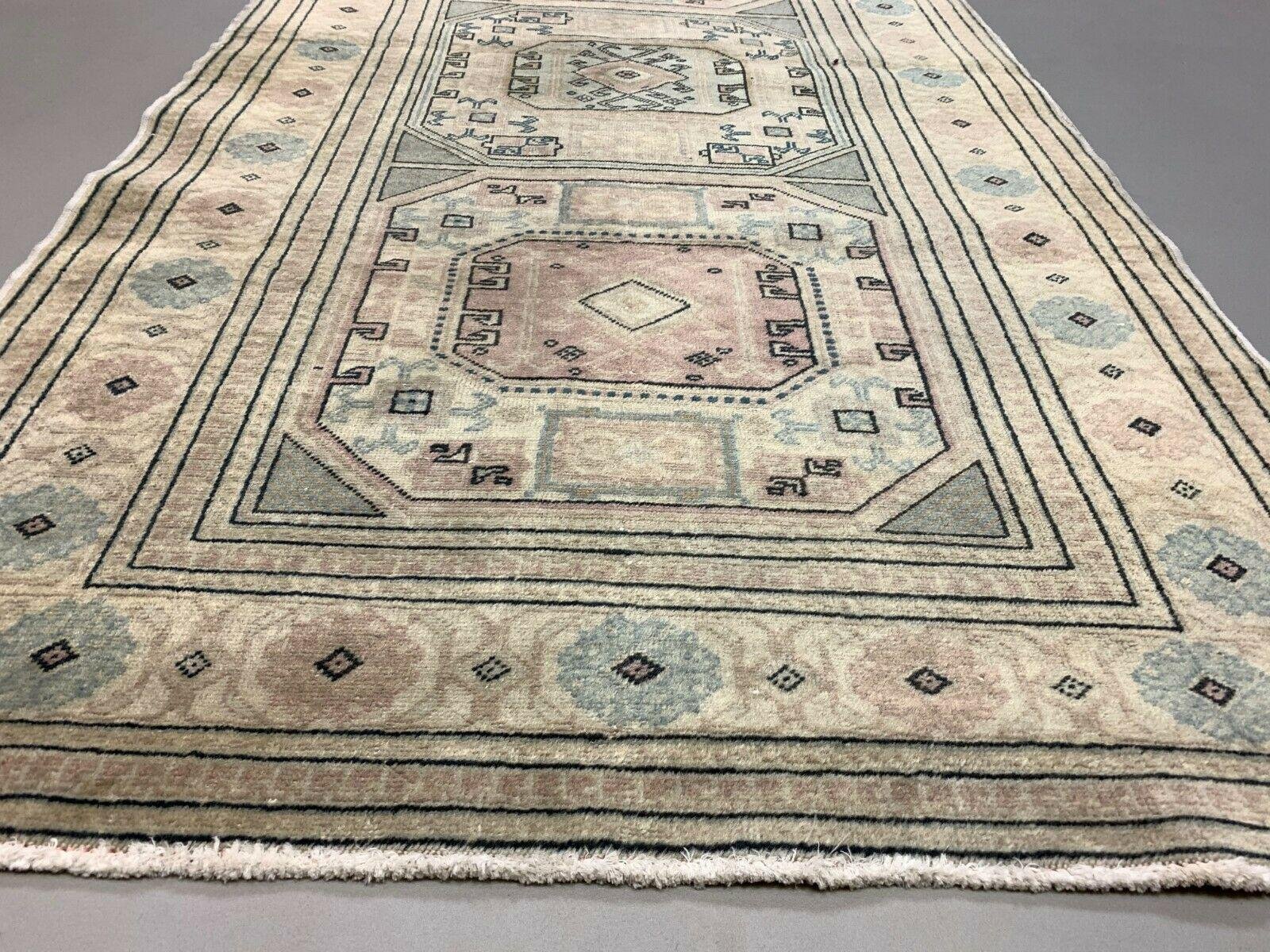 Tappeto tribale in lana blu e beige, Turchia, anni '60