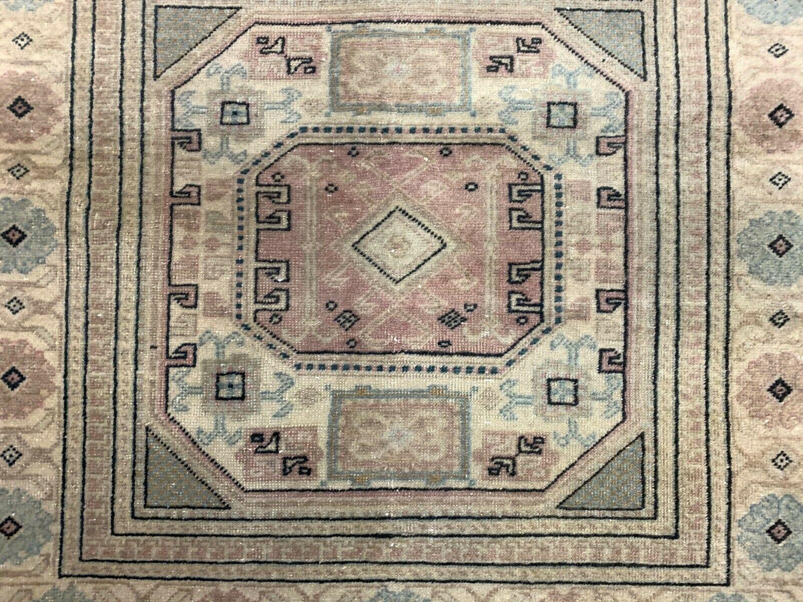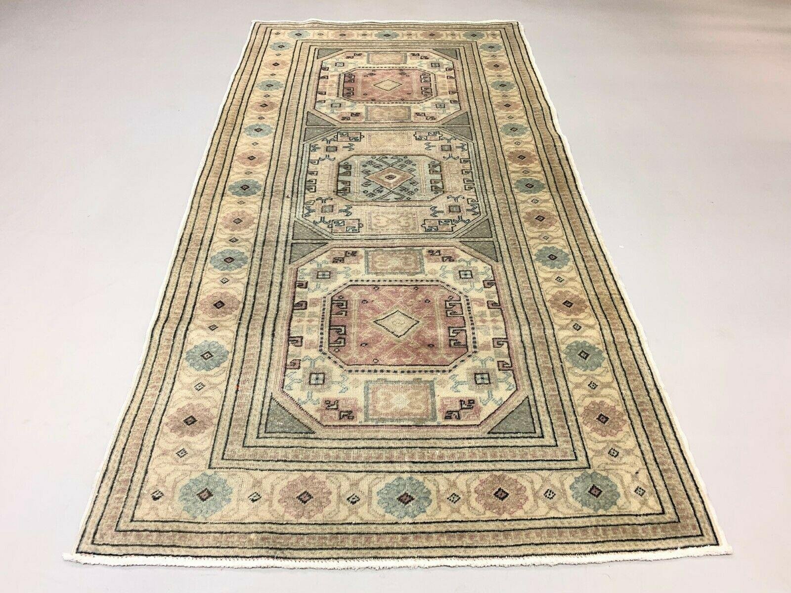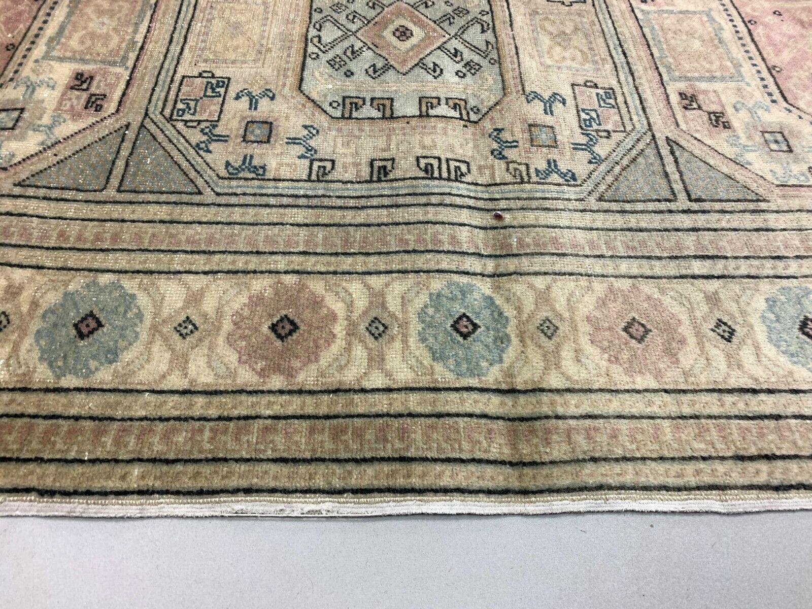 Tappeto tribale in lana blu e beige, Turchia, anni '60