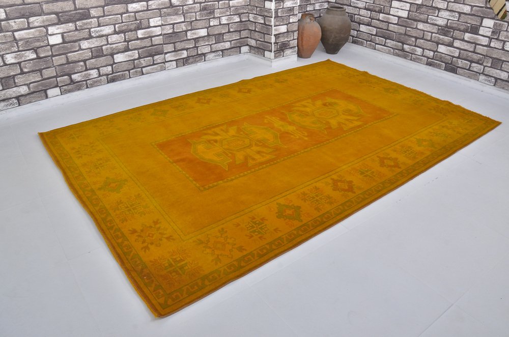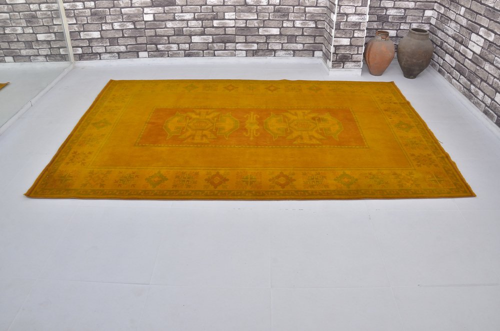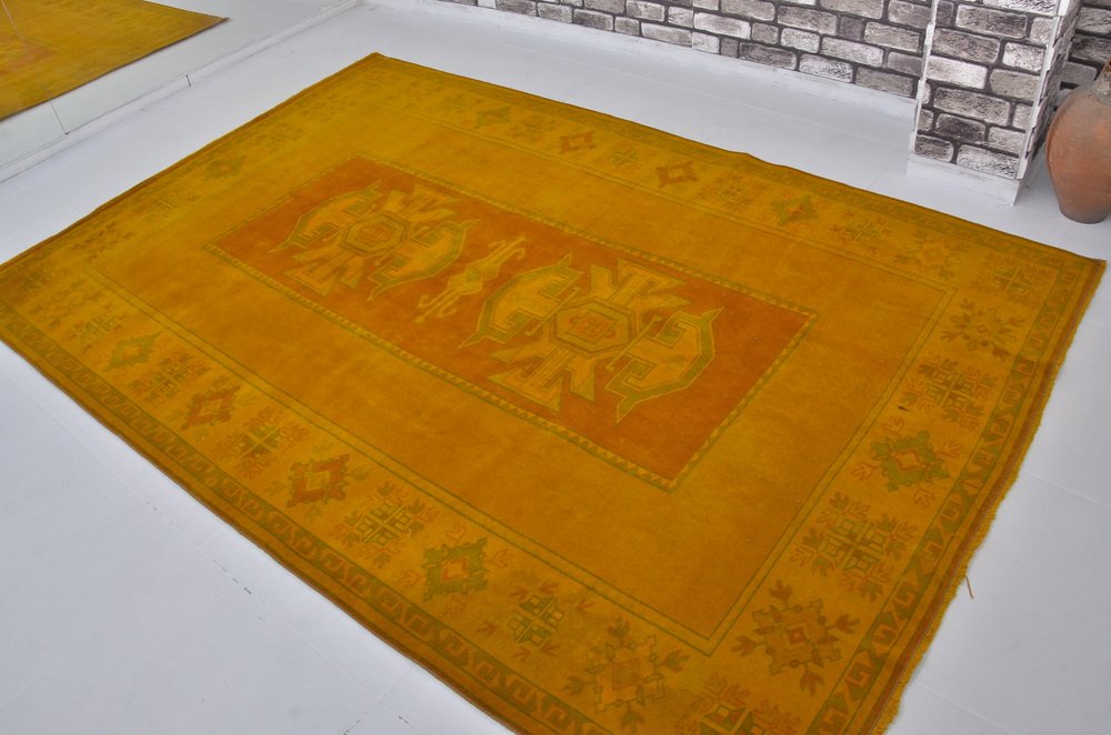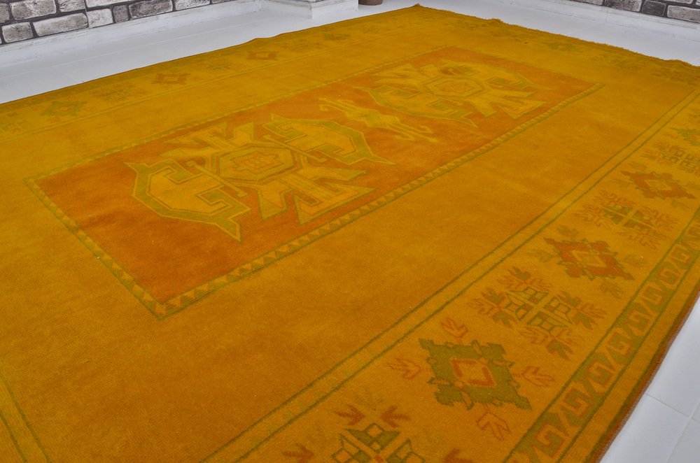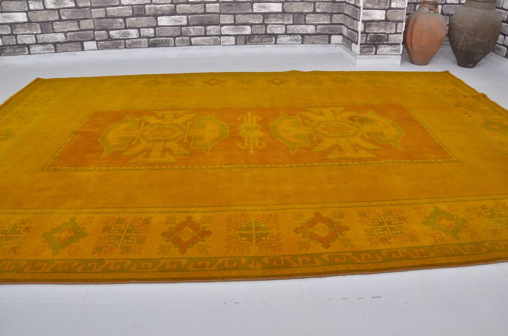 Tappeto vintage fatto a mano giallo, anni '60