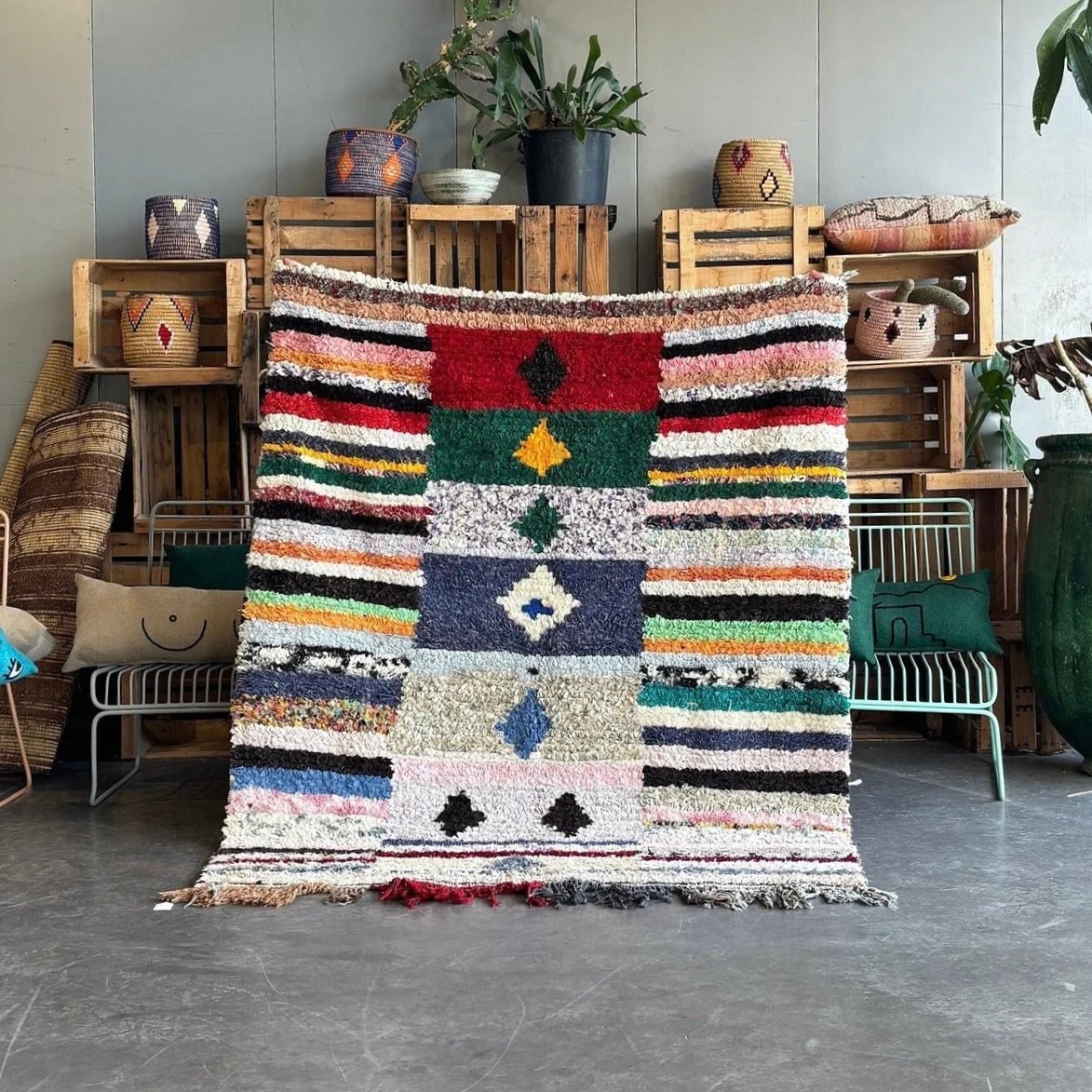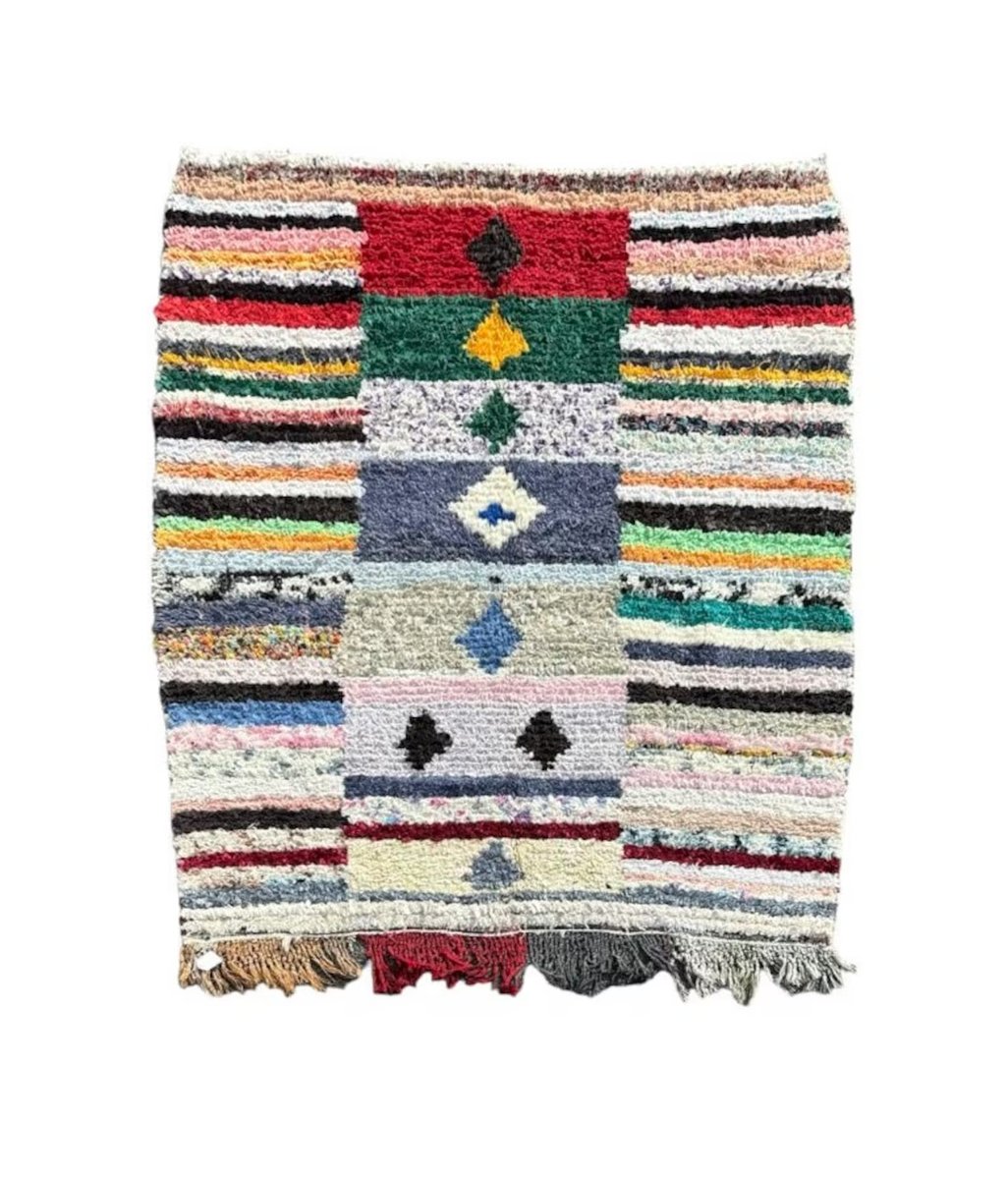 La bellezza del tappeto Boucheruite risiede nel suo design audace e accattivante. Gli intricati motivi geometrici, che simboleggiano antiche tradizioni e credenze, sono abilmente incorporati nel tessuto. Questi motivi, meticolosamente tessuti a mano, creano un capolavoro di grande impatto visivo che aggiungerà calore e carattere a qualsiasi spazio abitativo.