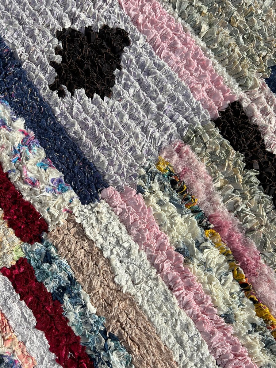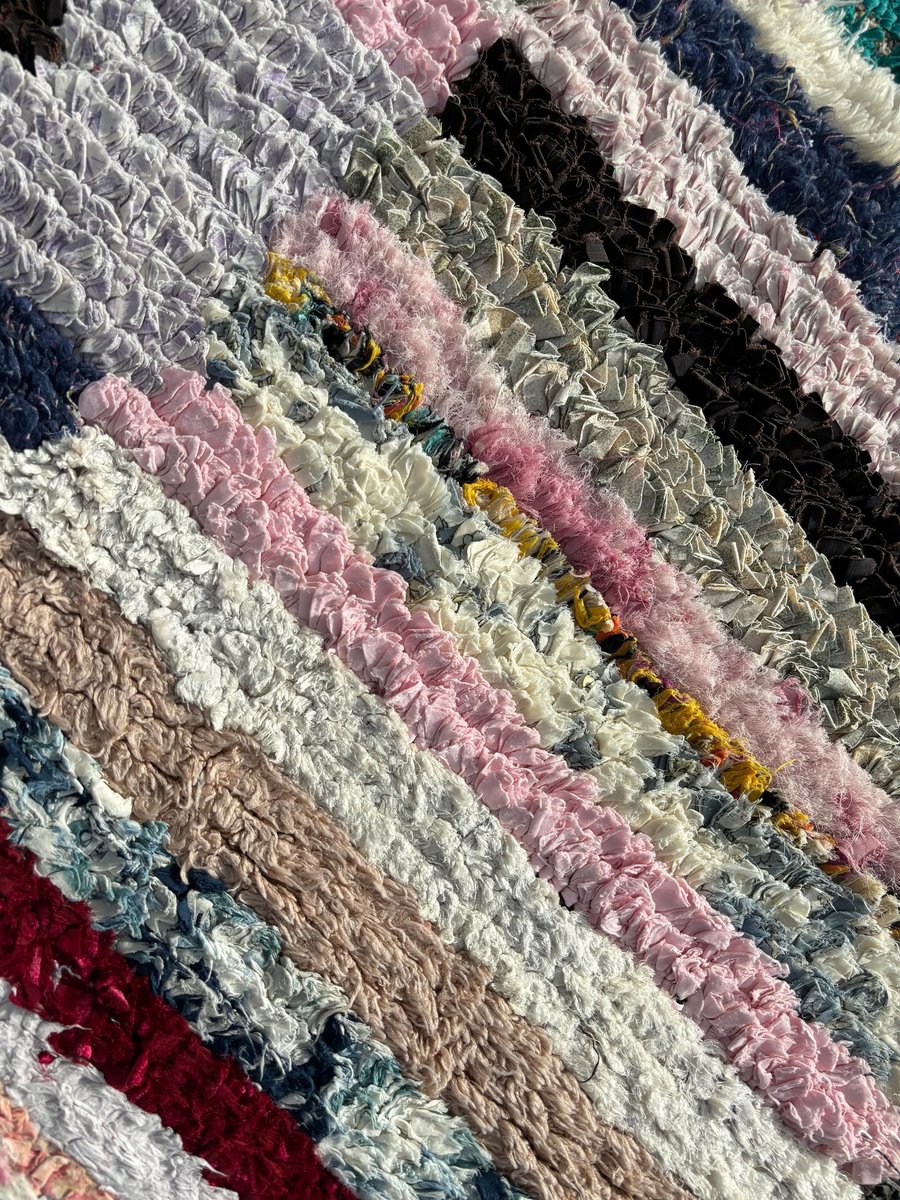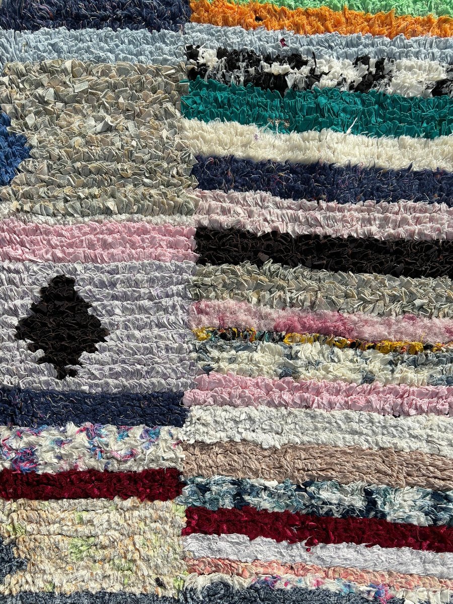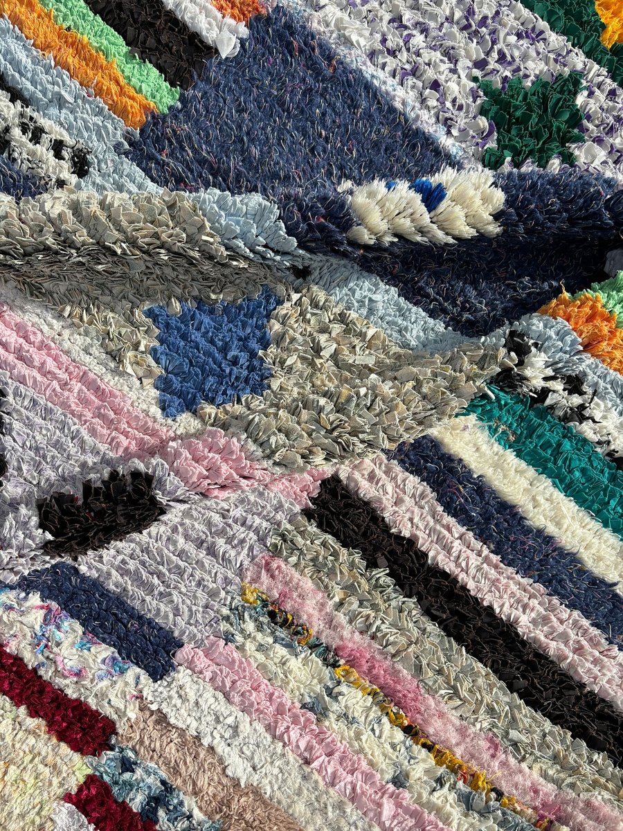 Ogni tappeto racconta una storia unica, intessuta di motivi intricati e colori vivaci. Realizzato in tessuto riciclato e cotone ecologico, questo tappeto mette in mostra le tradizionali tecniche di tessitura a mano tramandate da generazioni. Il risultato è un capolavoro unico che incarna l'essenza della cultura berbera.