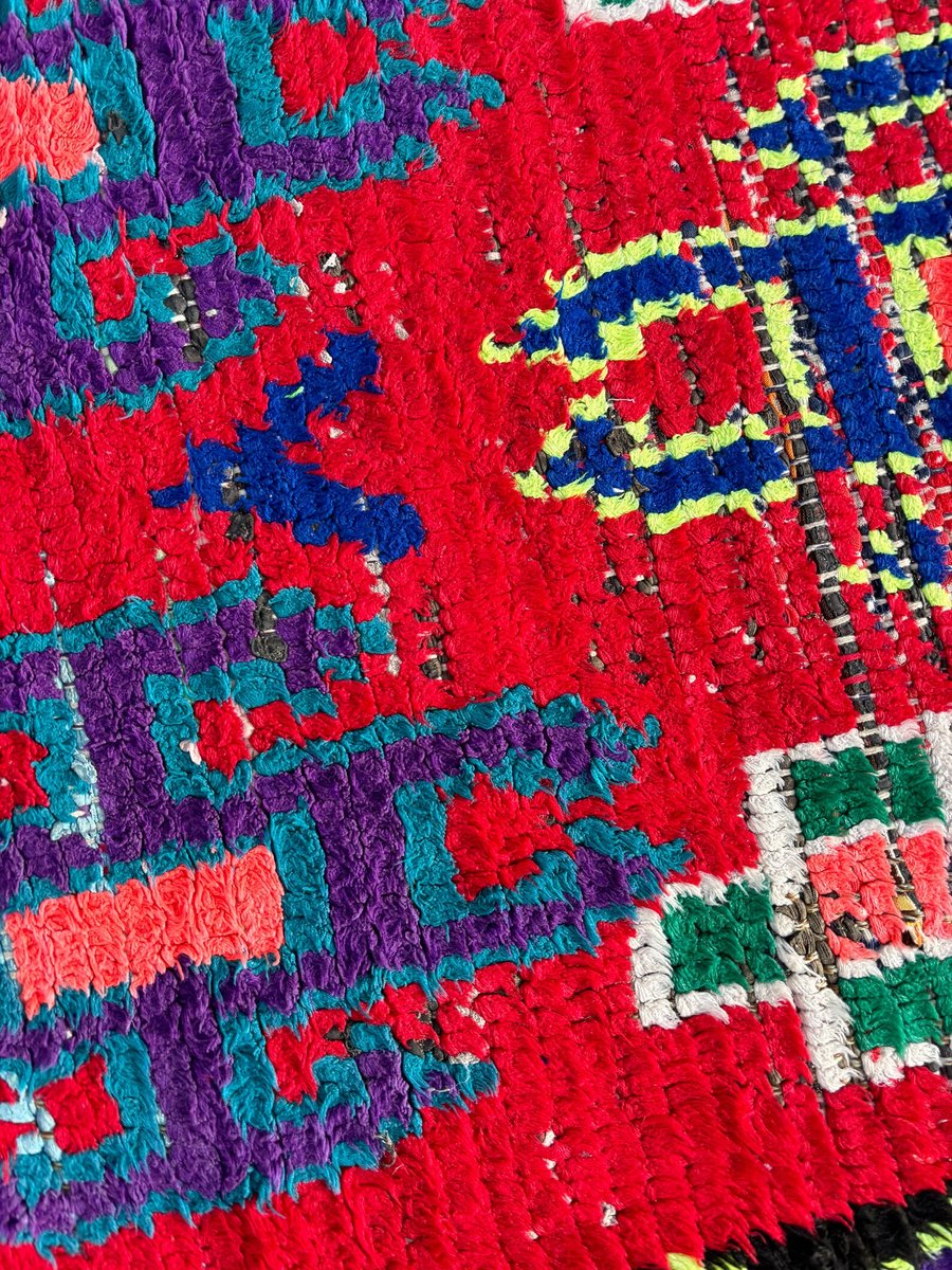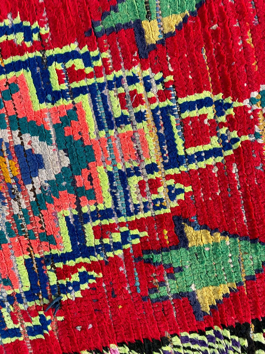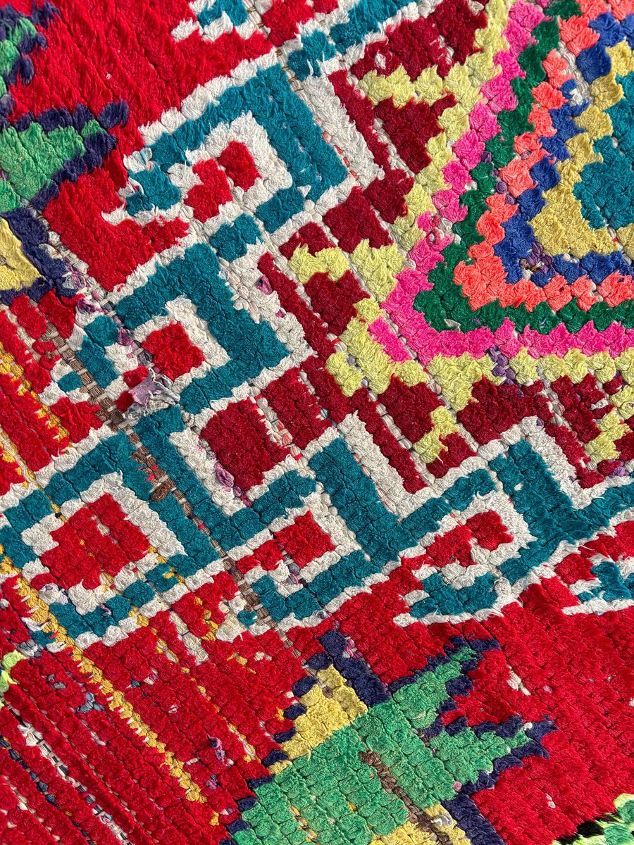 Tappeto marocchino vintage di alta qualità, localmente noto come Boucherouite. Tessuto a mano dalle donne della regione di ATLAS.