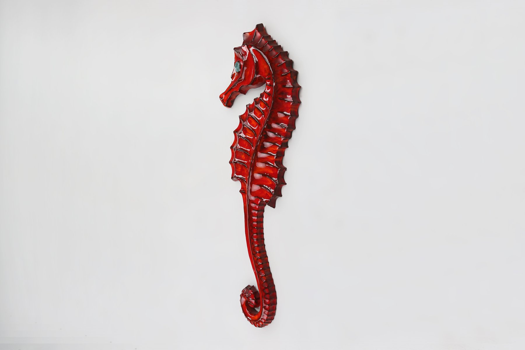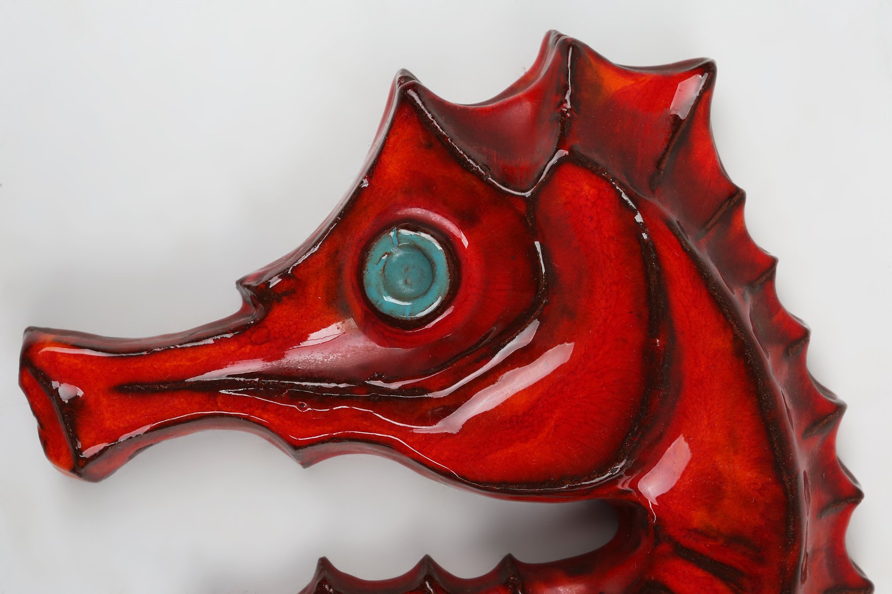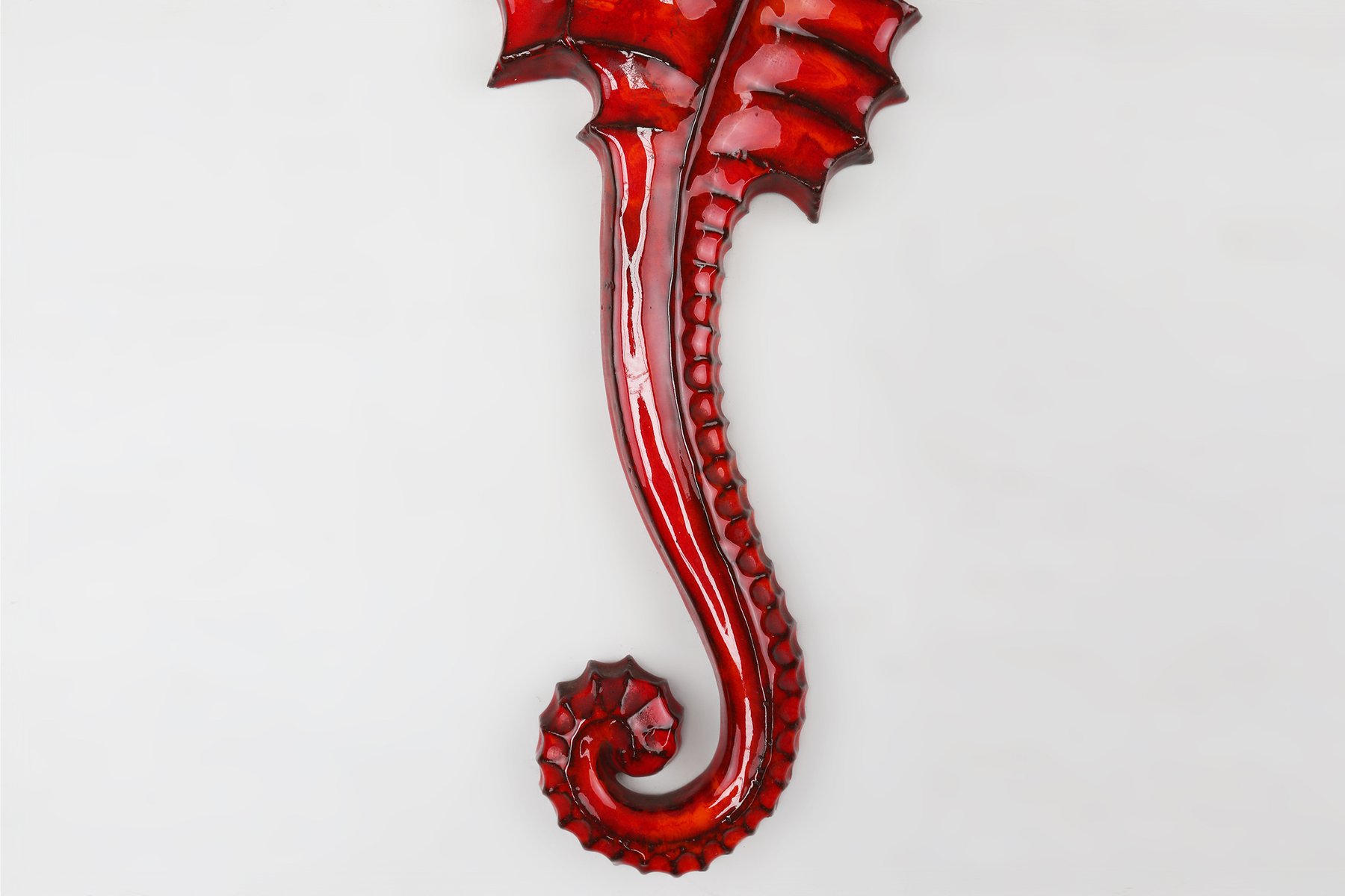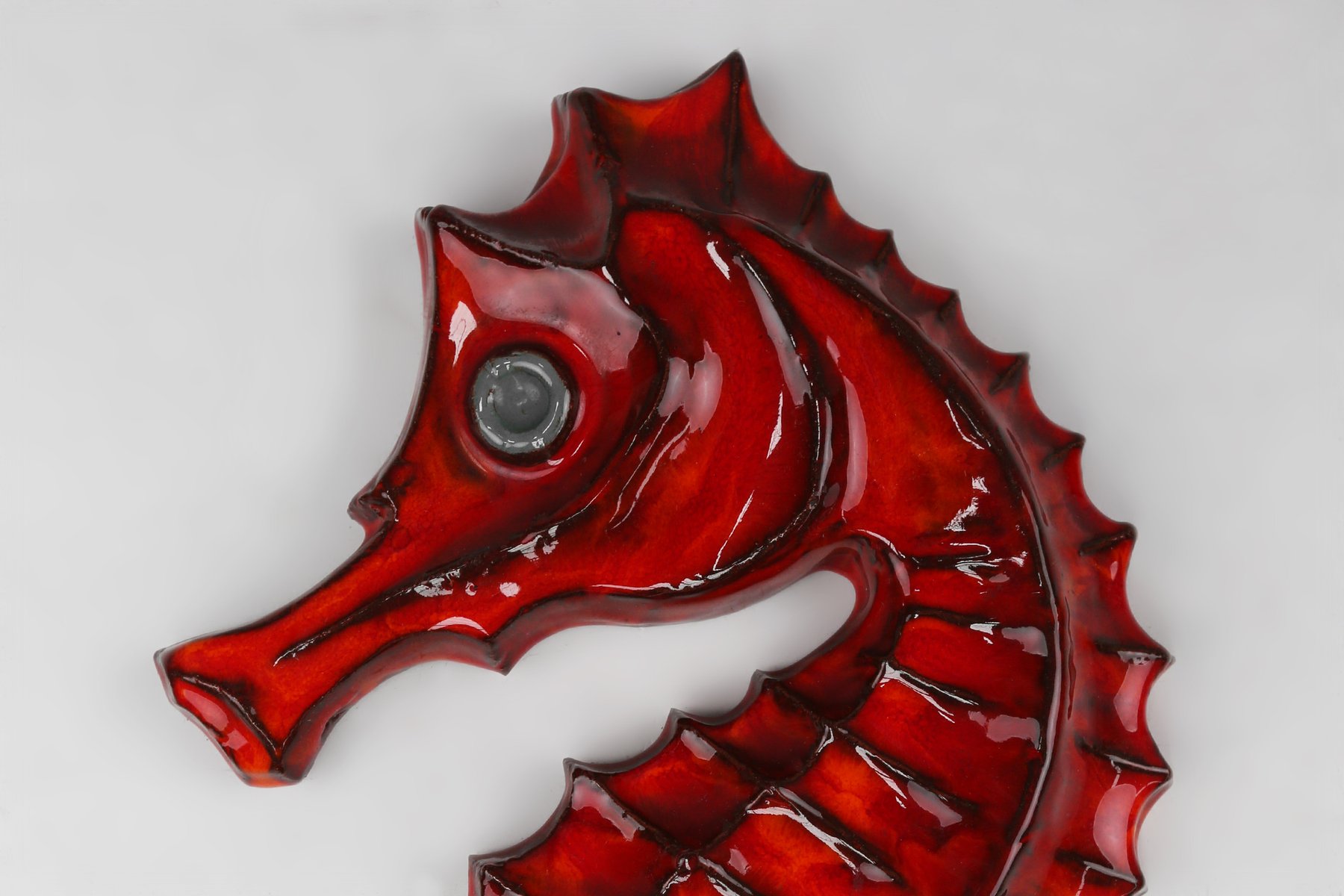 Targa a forma di cavalluccio marino rosso in ceramica di André Bayer, Belgio, anni '60