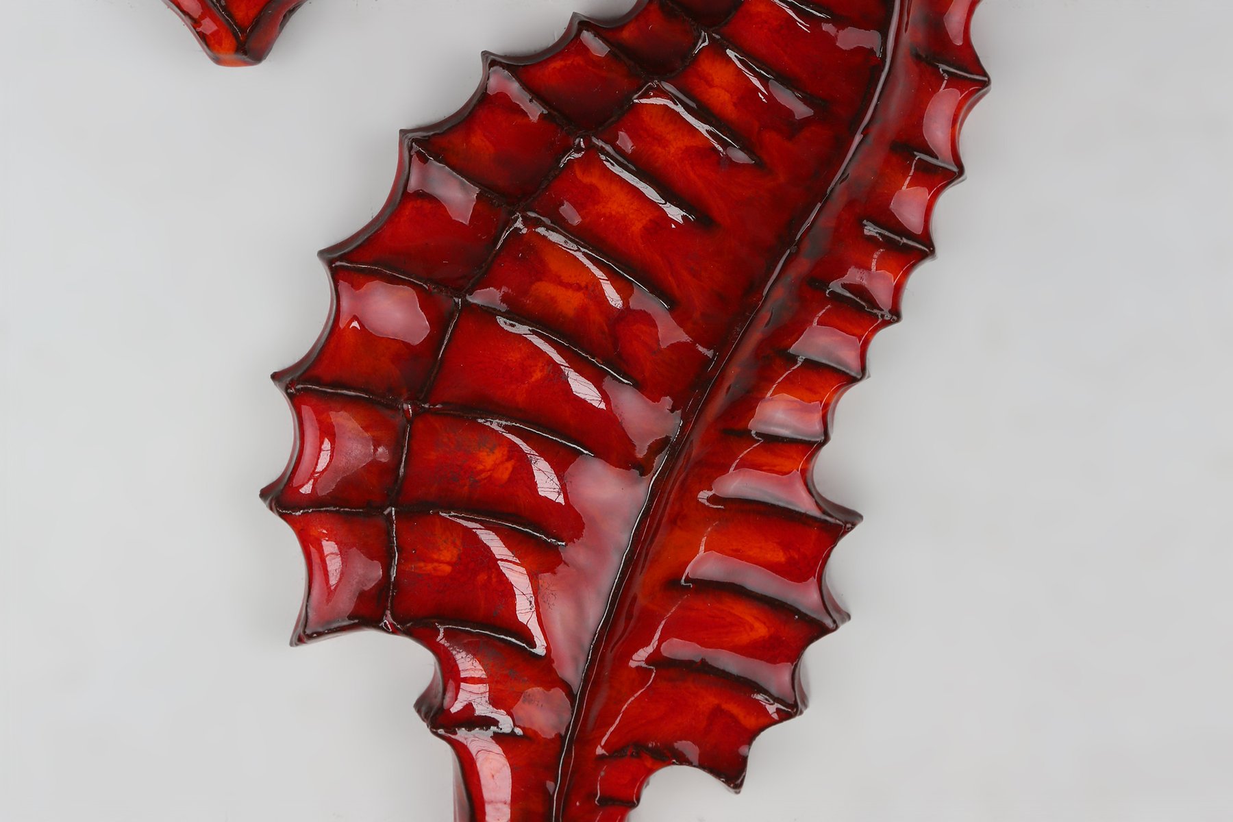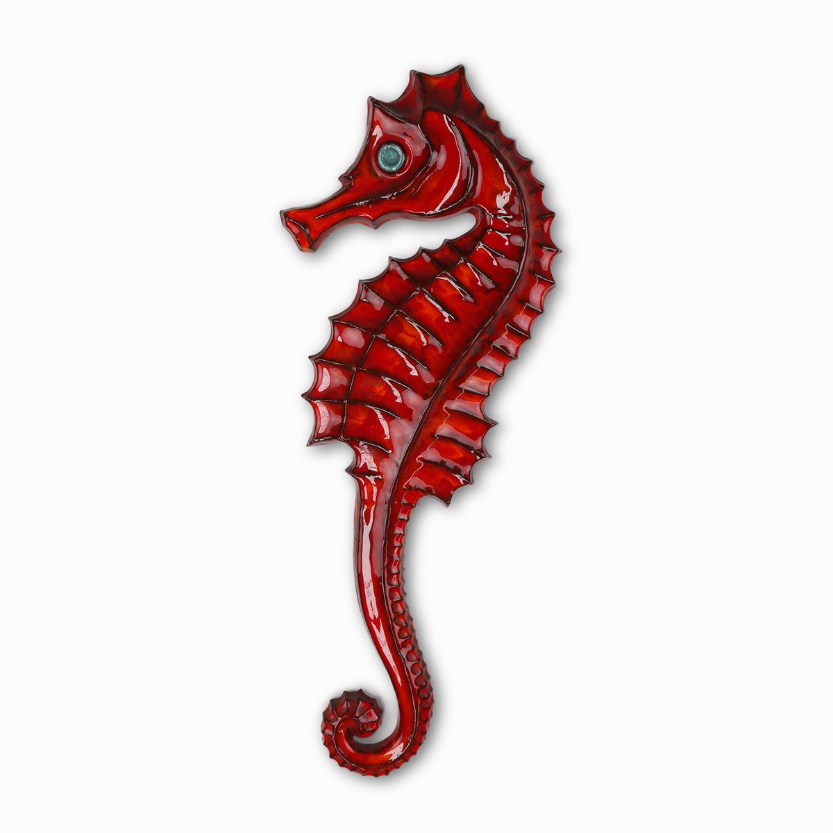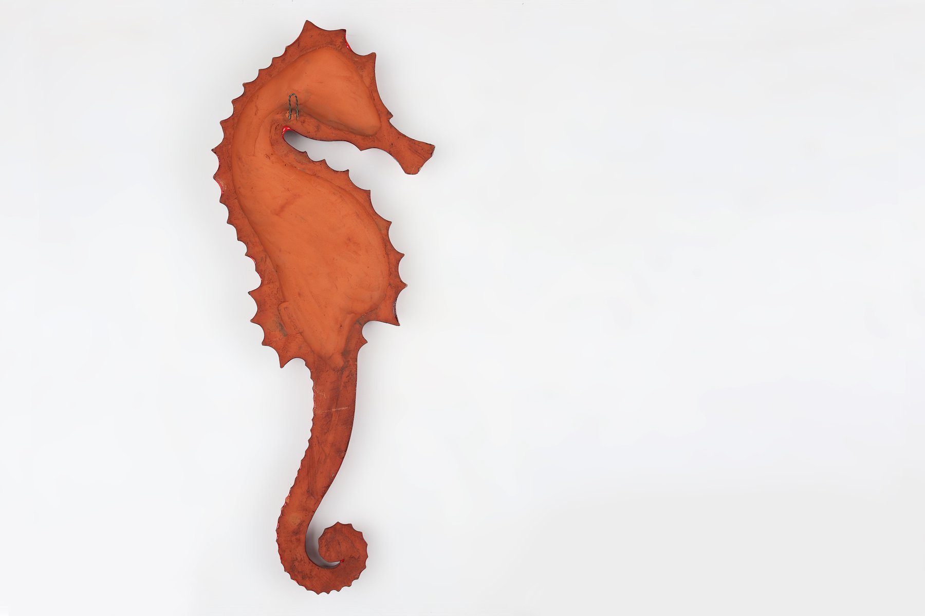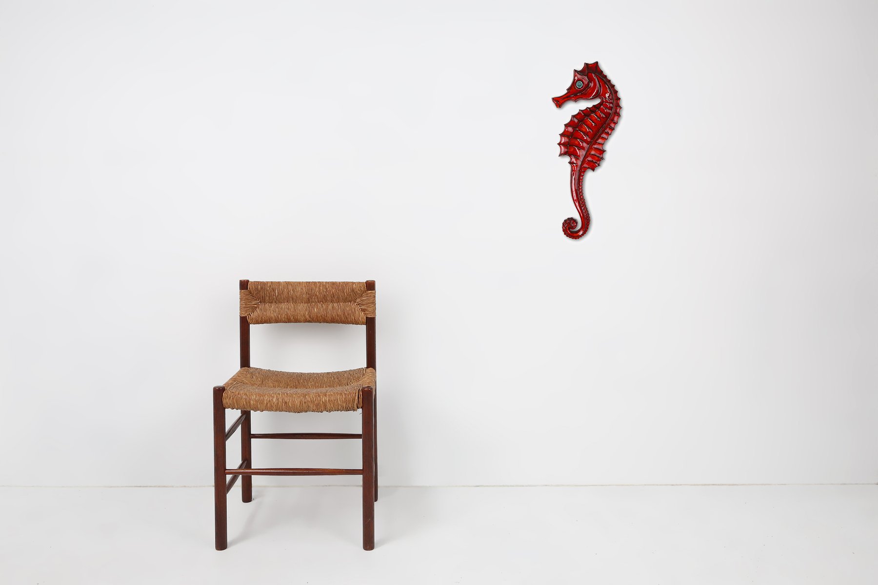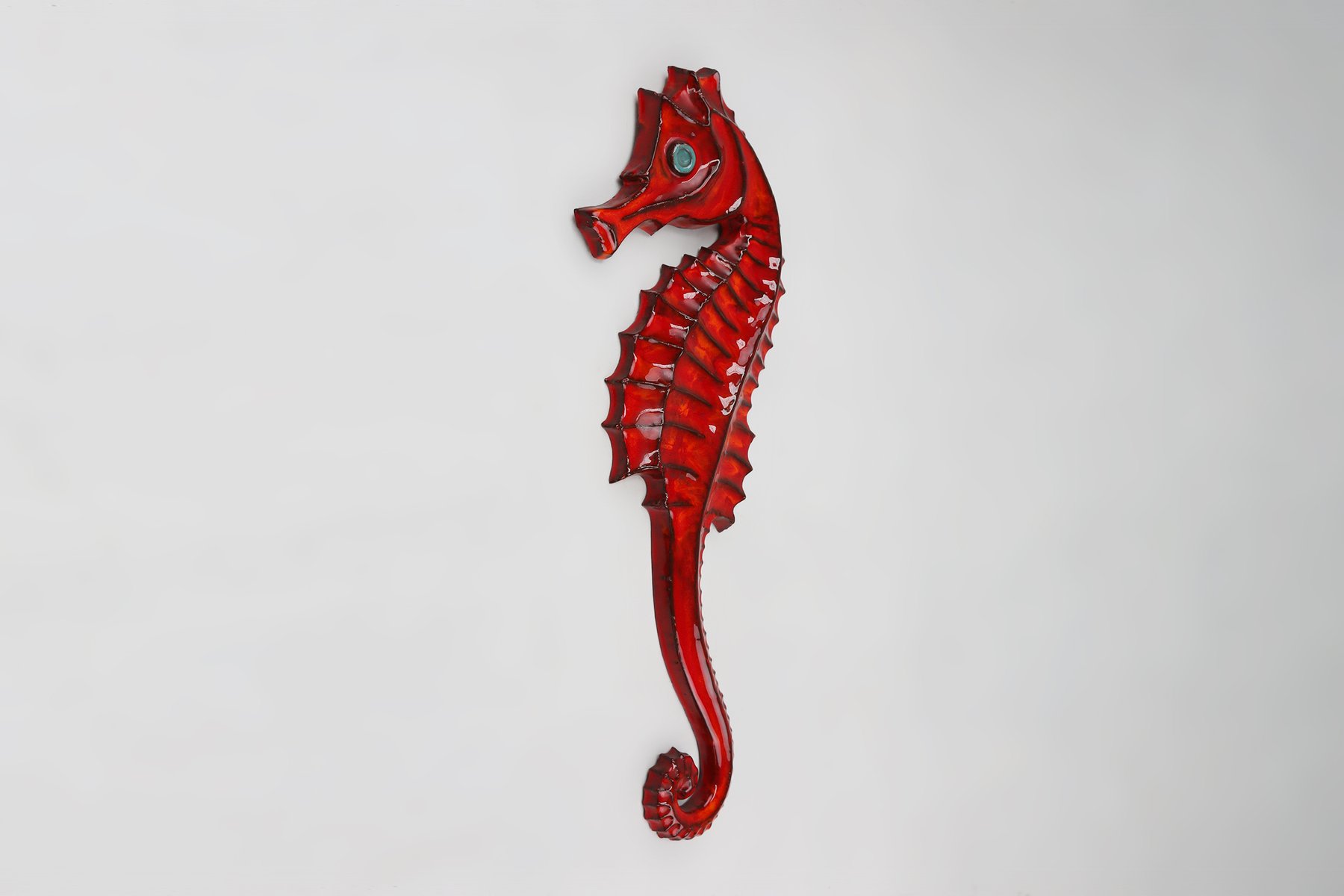 Targa a forma di cavalluccio marino rosso in ceramica di André Bayer, Belgio, anni '60