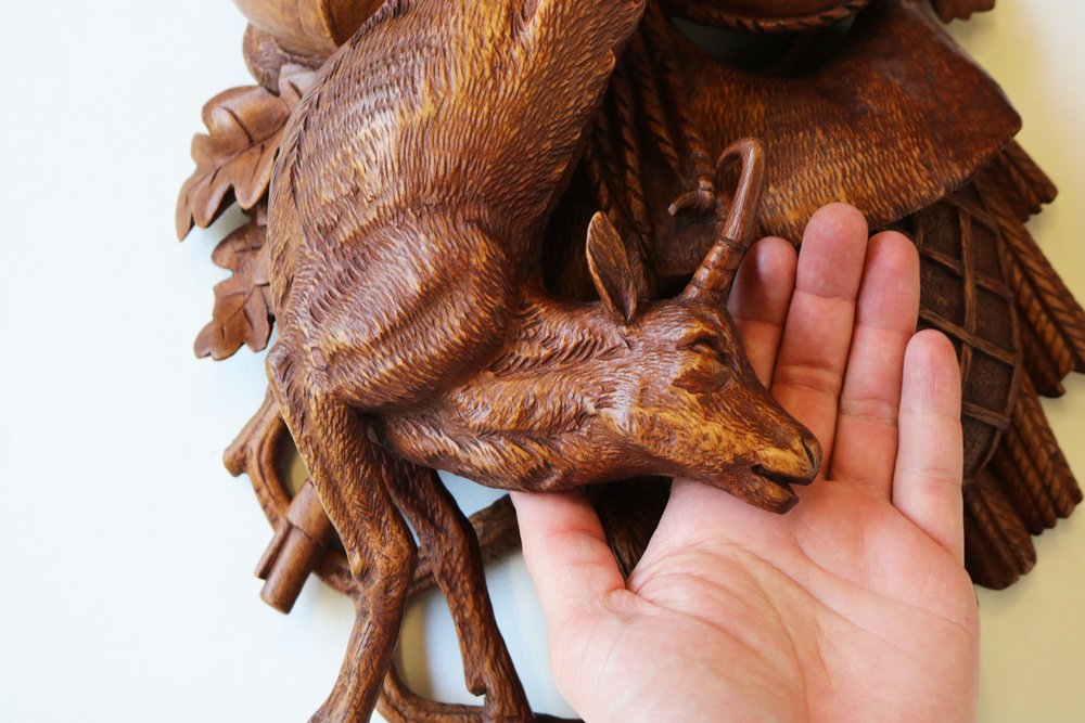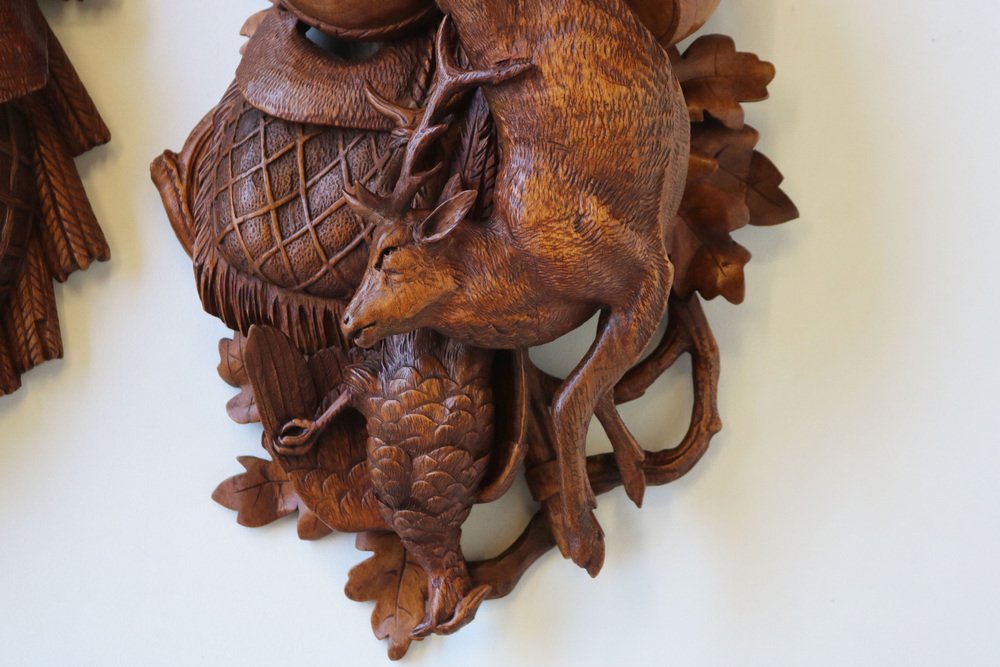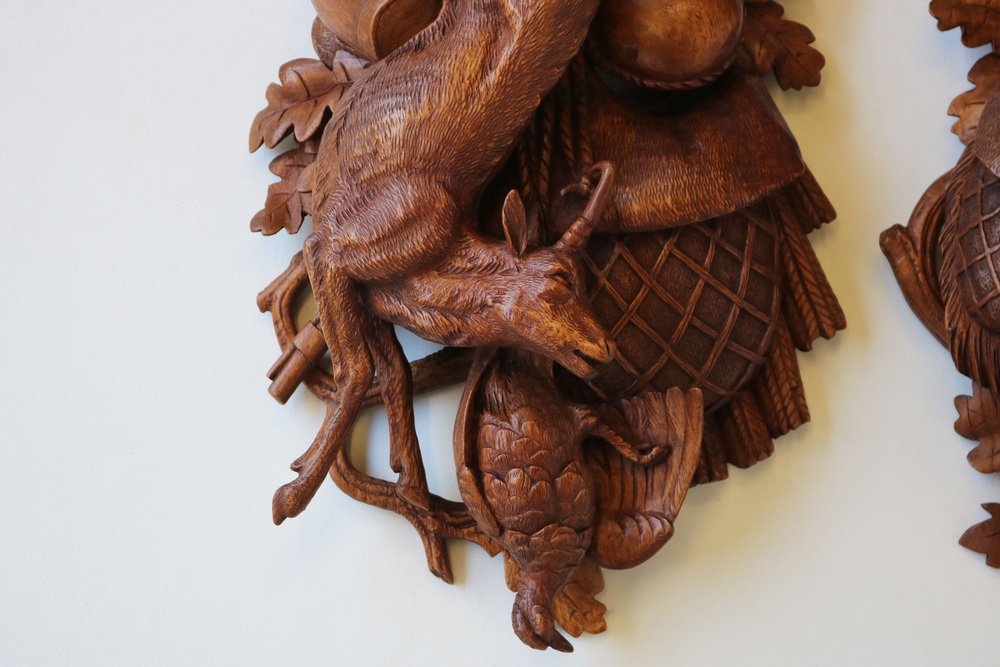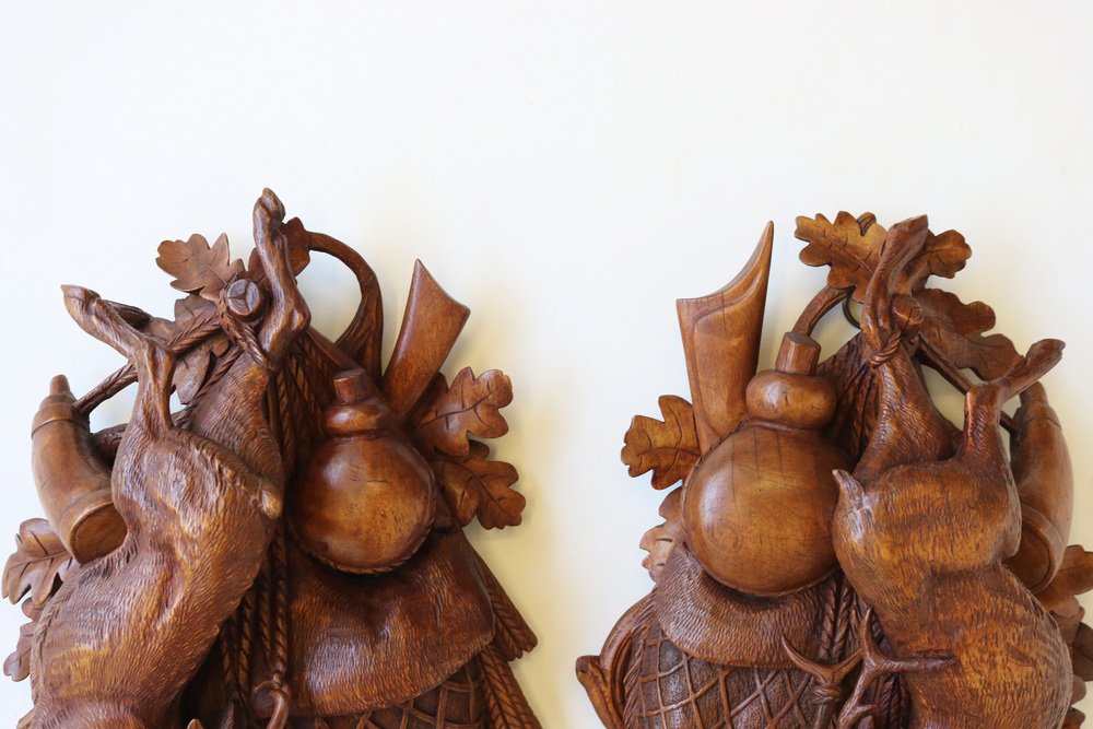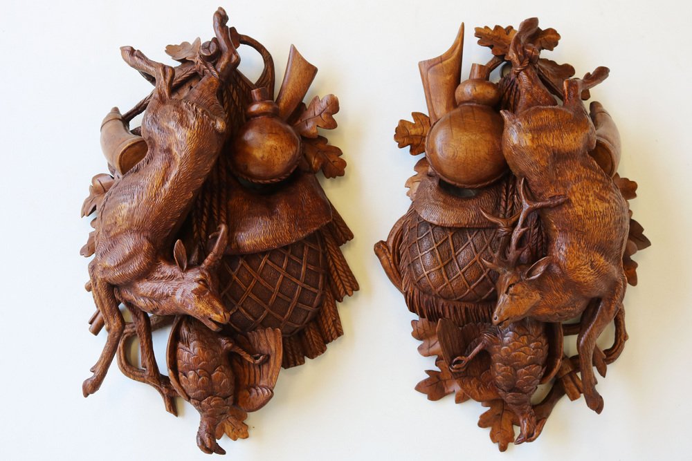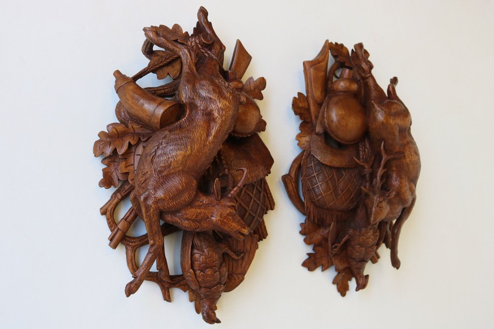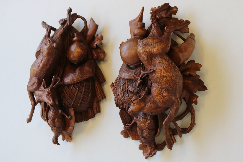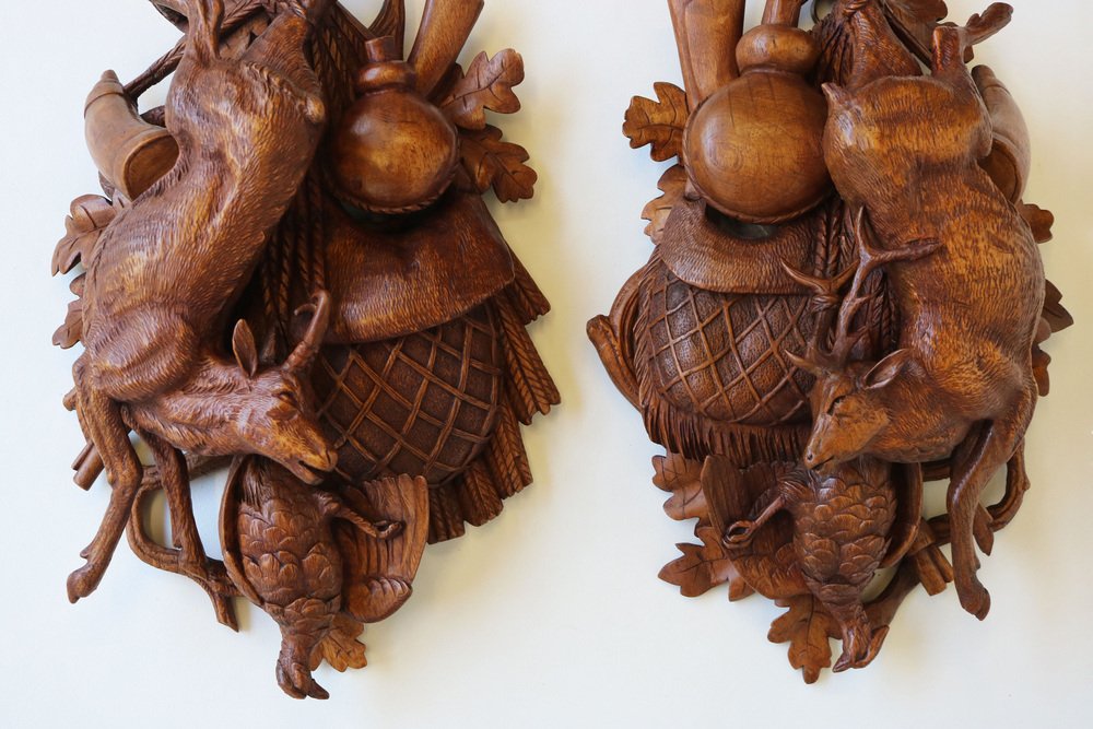 Targhe Trofeo della Foresta Nera intagliate, Svizzera, XIX secolo, 1880, set di 2