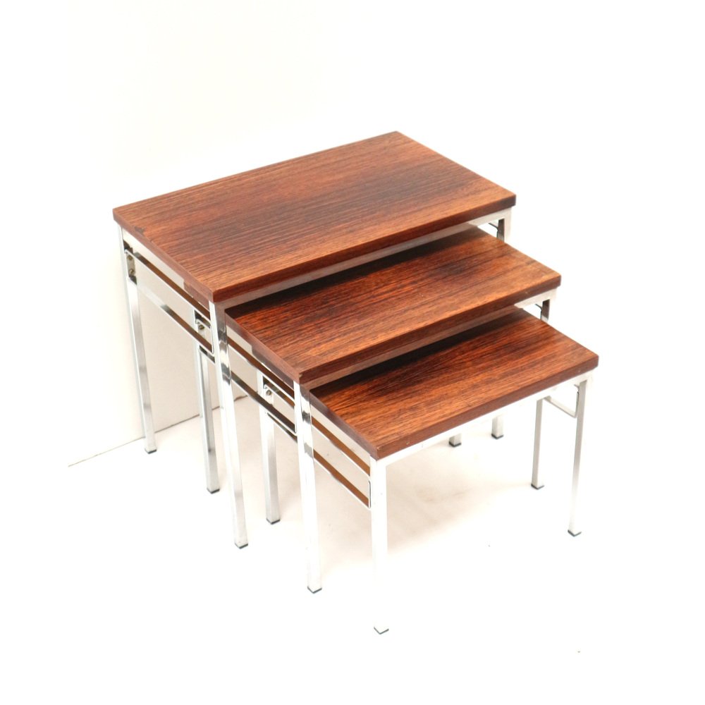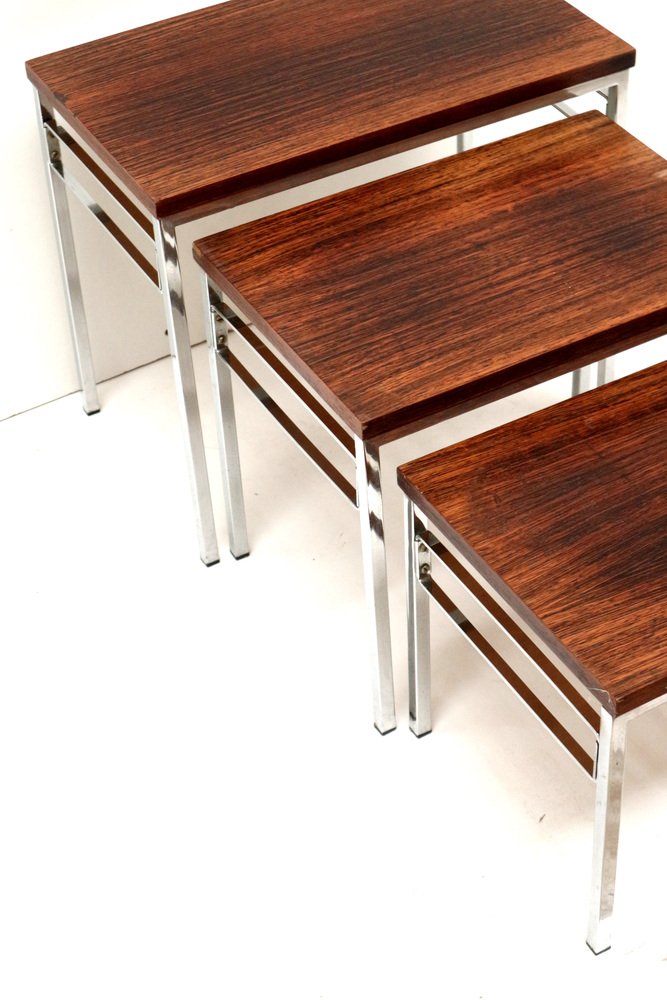 Tavolini ad incastro in palissandro, anni '60, set di 3