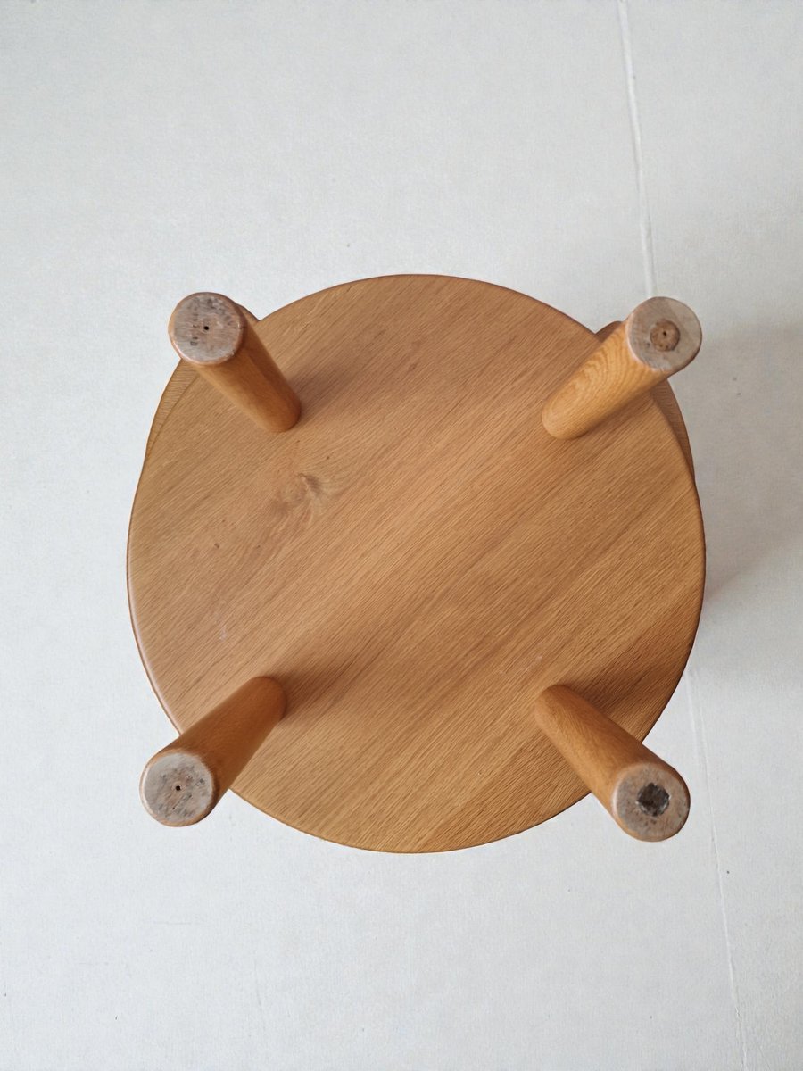 The design is simple and functional, typical of Redureau's work: thick tabletops with rounded edges, and a sturdy cylindrical base. A modular, practical, and elegant set.