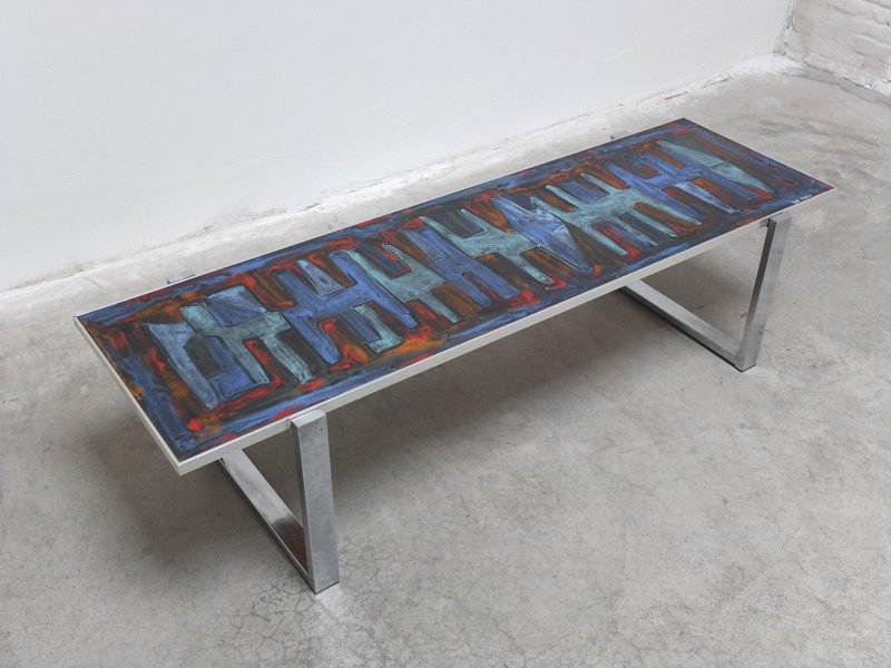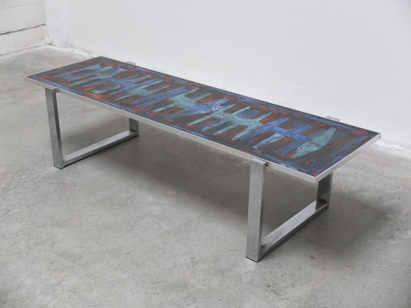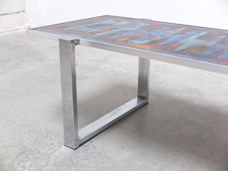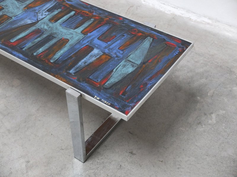 Tavolino da caffè decorativo con piastrelle in ceramica di Denisco, anni '60