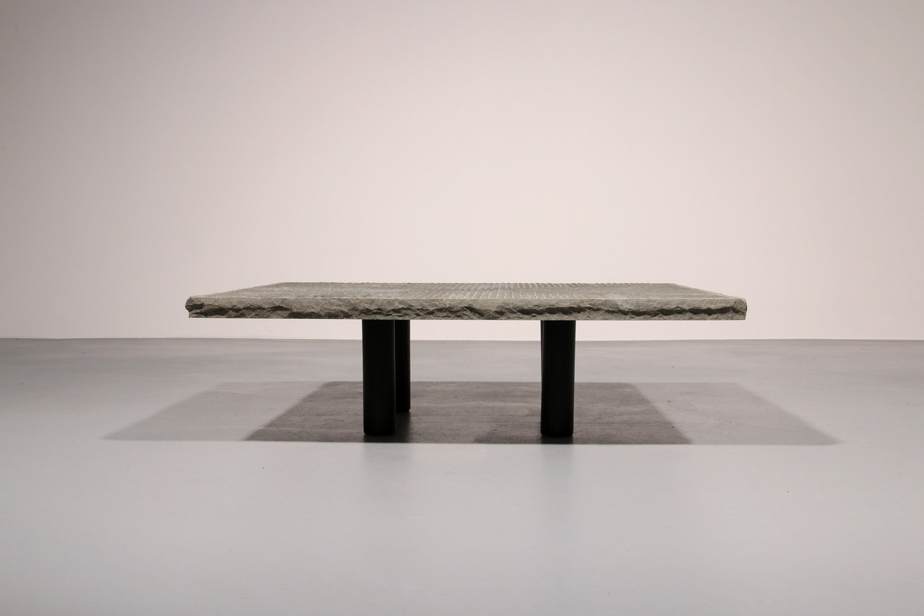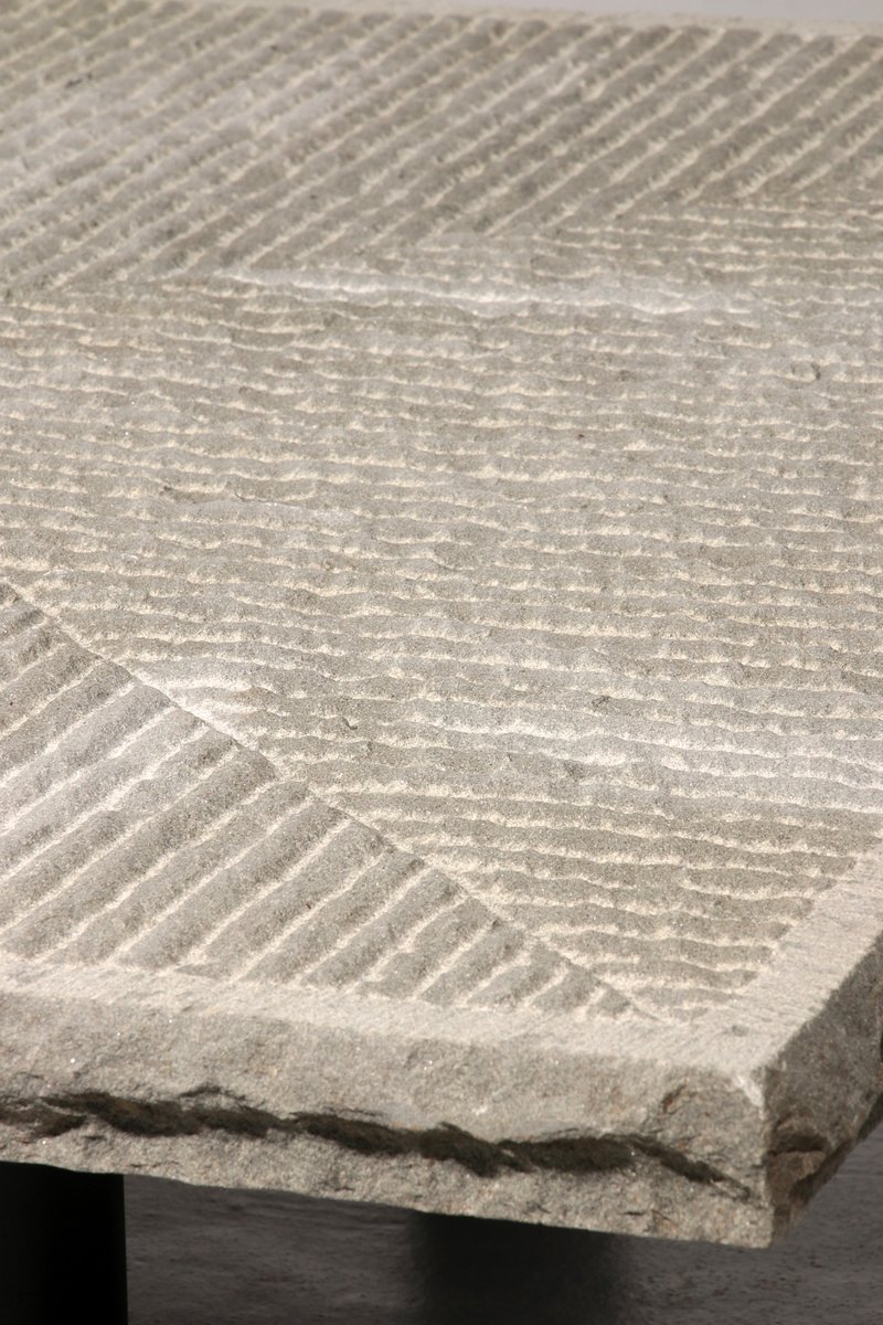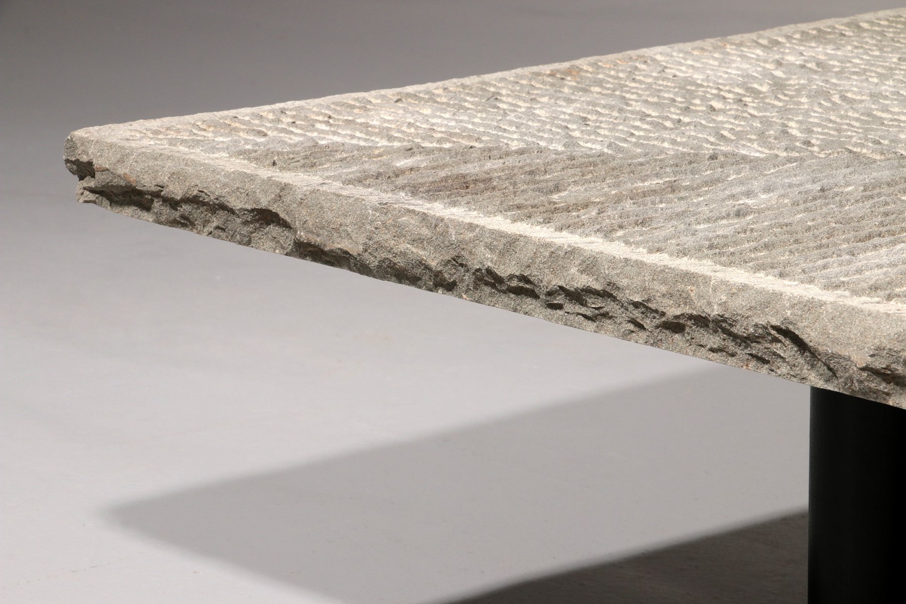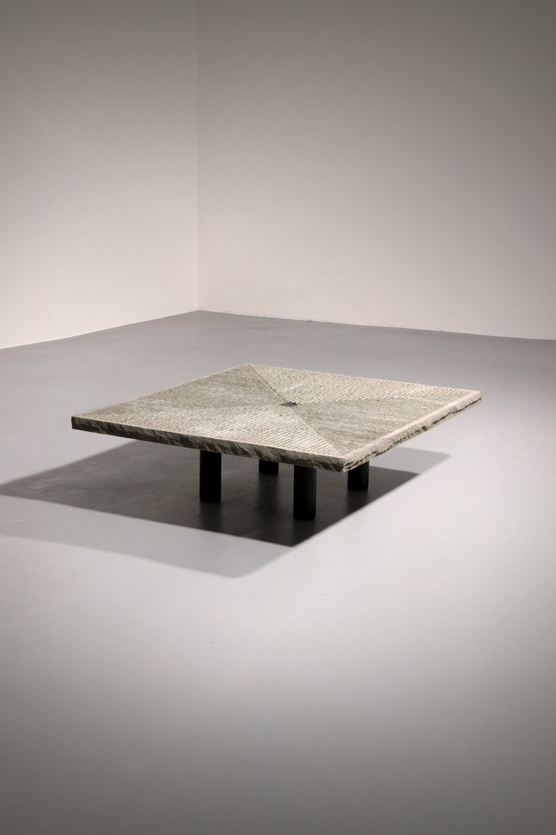 This Postmodern design resembles the relationship between ancient masonry skills and applying these traditions in modern forms. Like some other Italian designers, Lazzotti in particular has an innovative approach towards experimenting with form, especially in stone and marble, and applying these mainly into tables. This table could also be used outdoors, as the stone top is a natural product. This table would look great in numerous interior styles, as it looks a bit brutalistic, modern, but also very natural at the same time