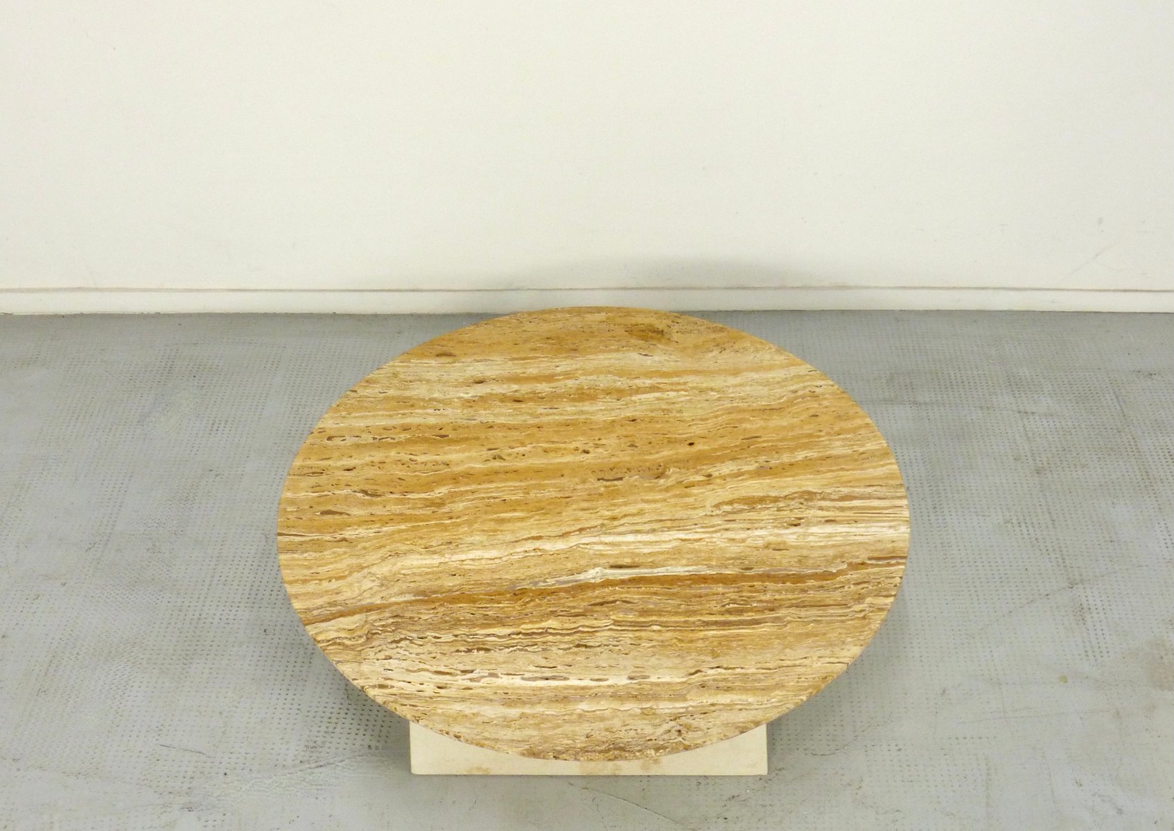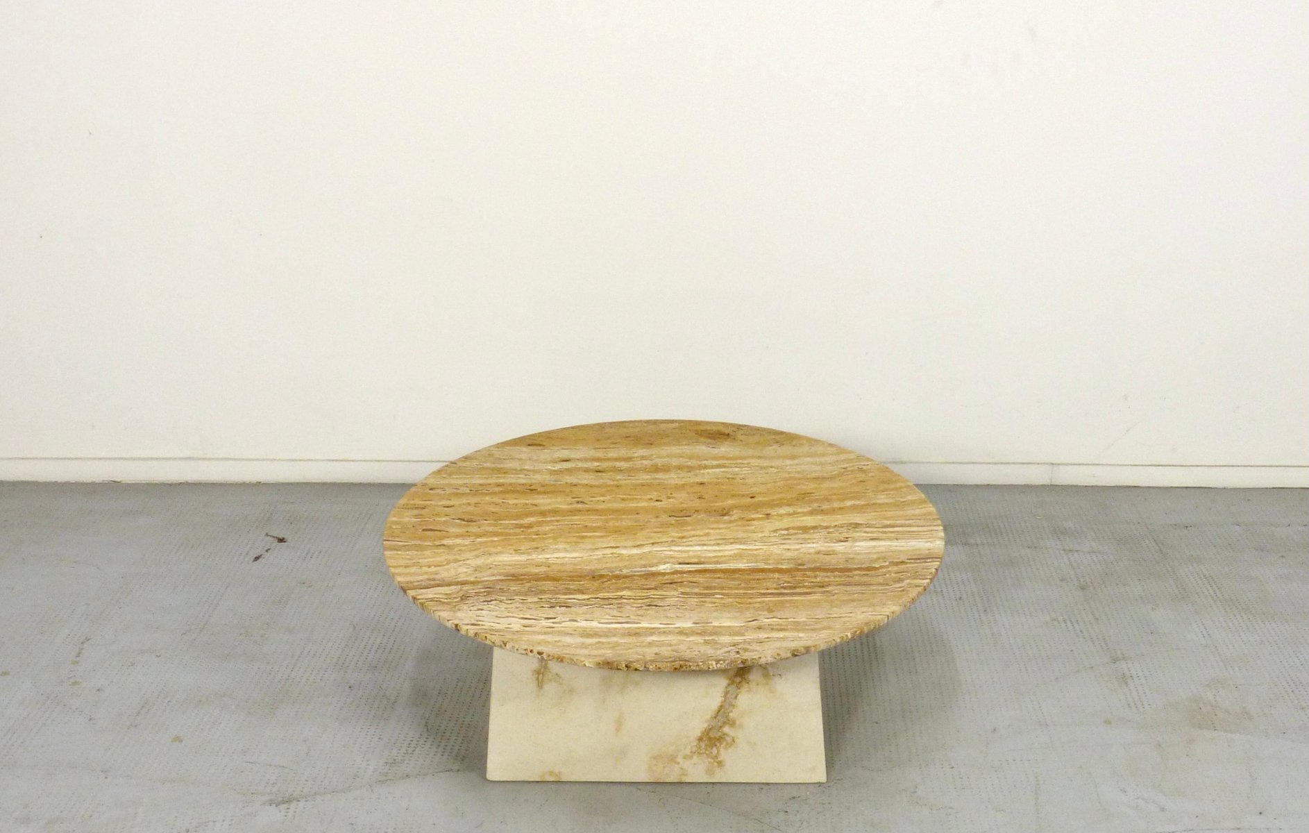 Tavolino da caffè geometrico in travertino, Italia, anni '70