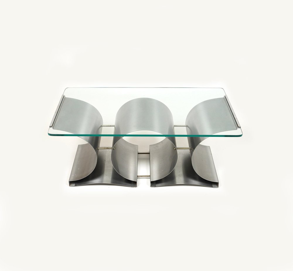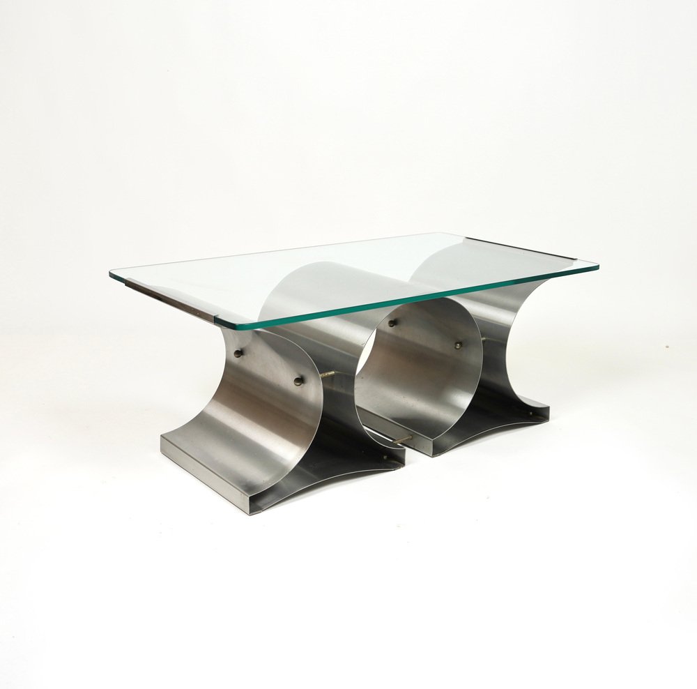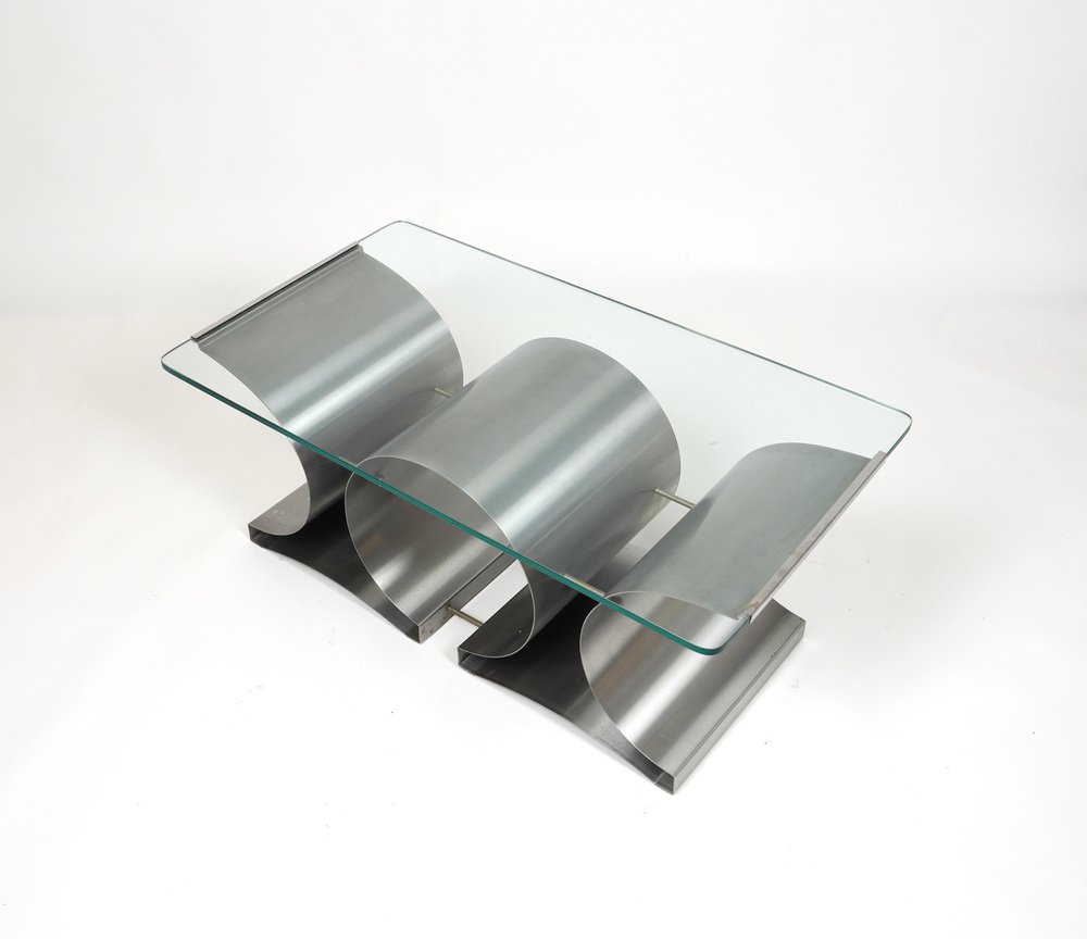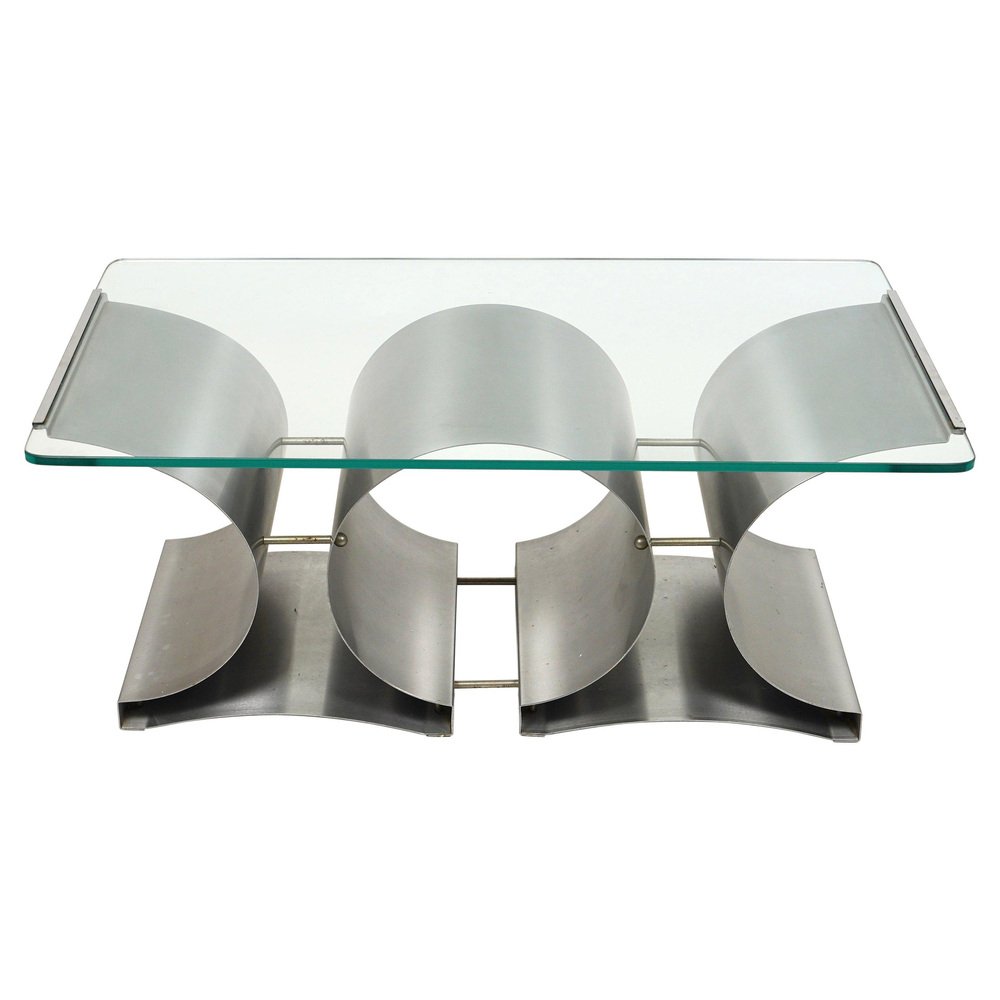 Tavolino da caffè in acciaio e vetro attribuito a Francois Monnet per Kappa, Francia, anni '70