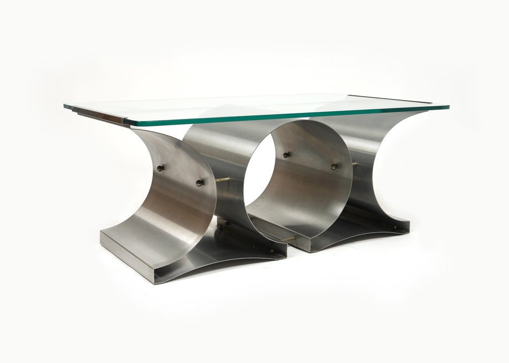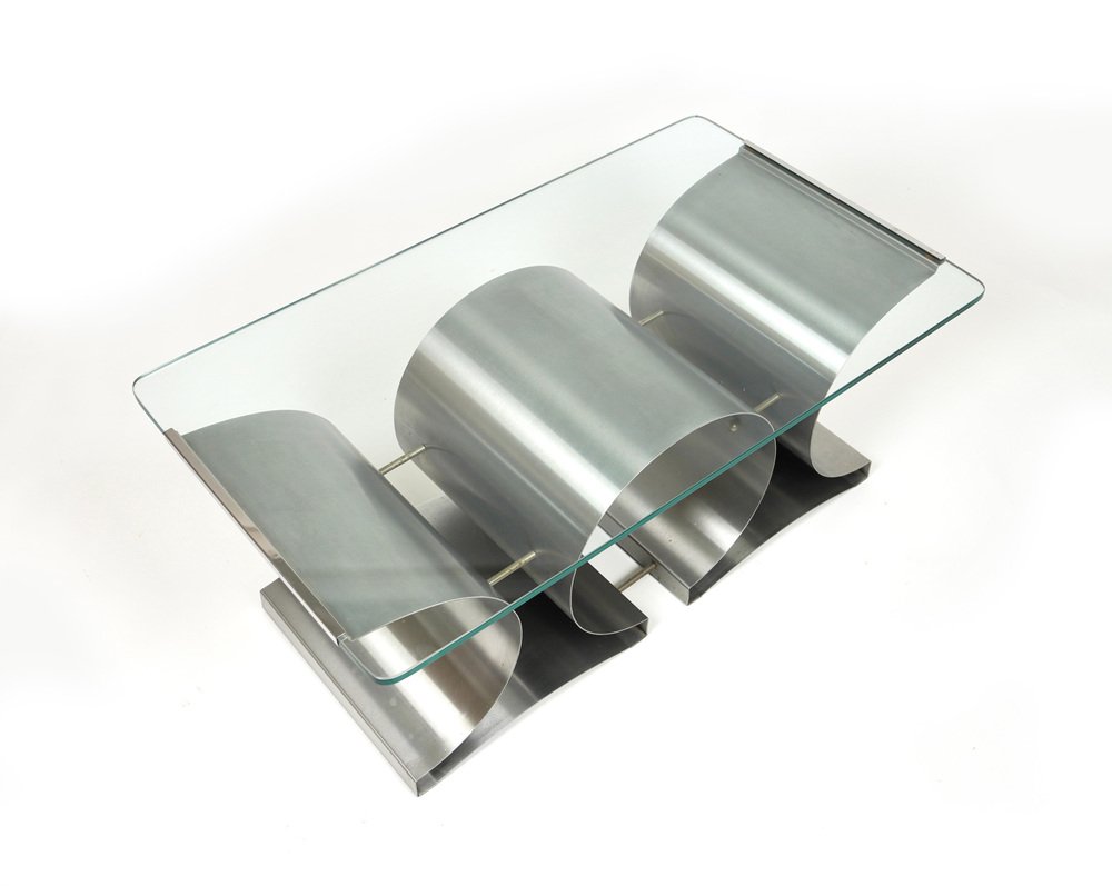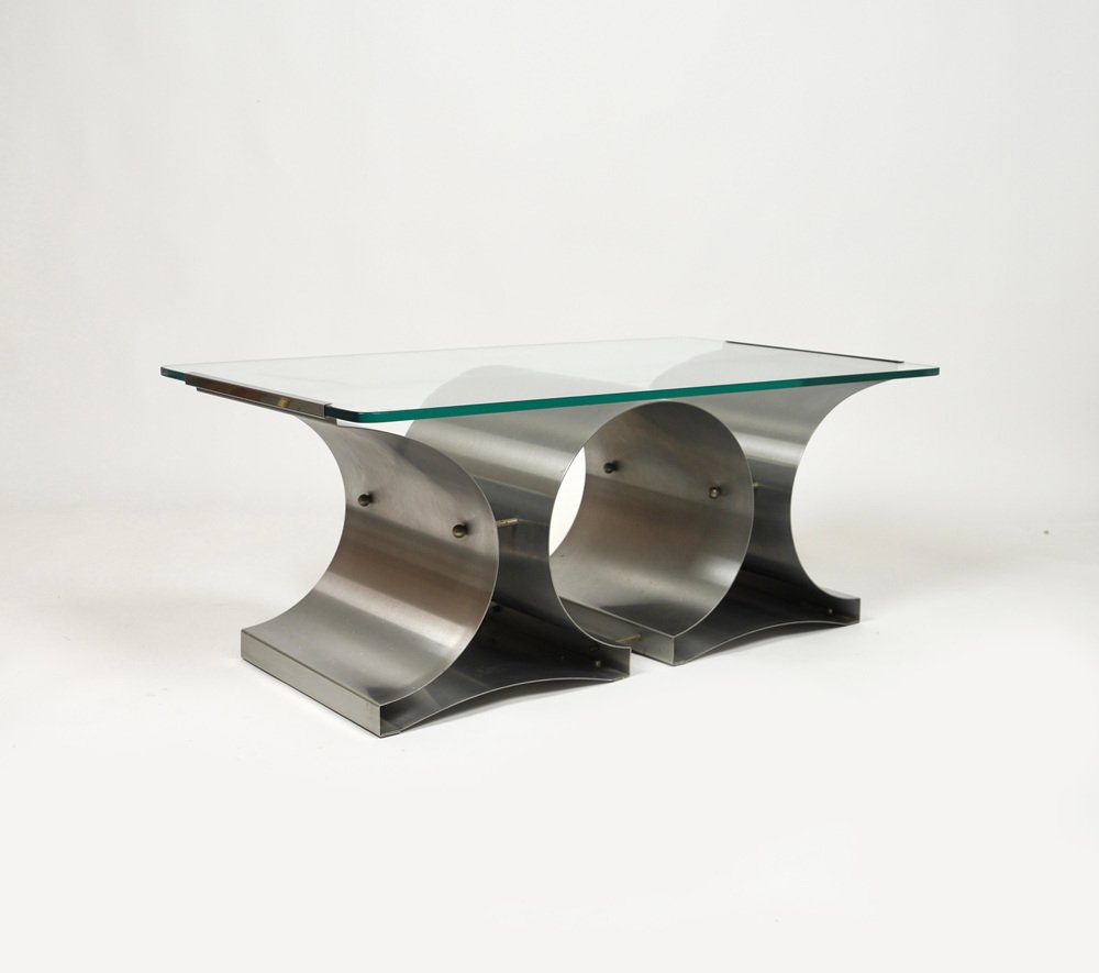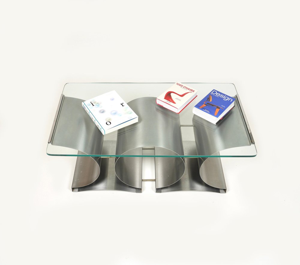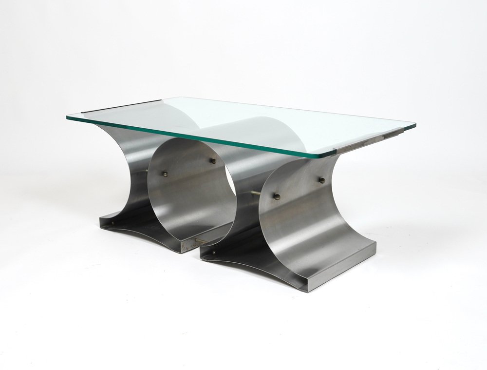 Tavolino da caffè in acciaio e vetro attribuito a Francois Monnet per Kappa, Francia, anni '70