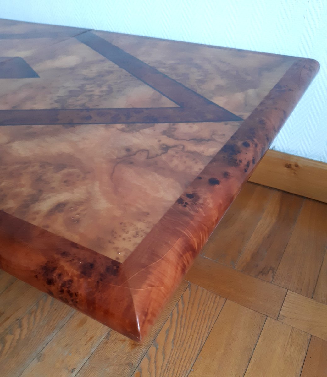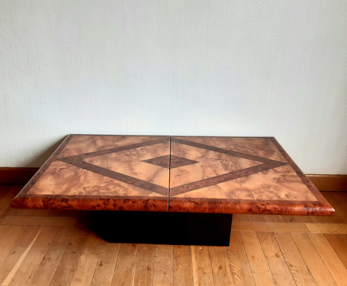 Tavolino da caffè in radica di olmo di Eric Maville, anni '70