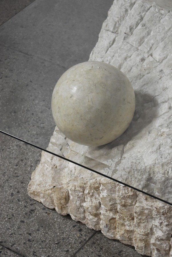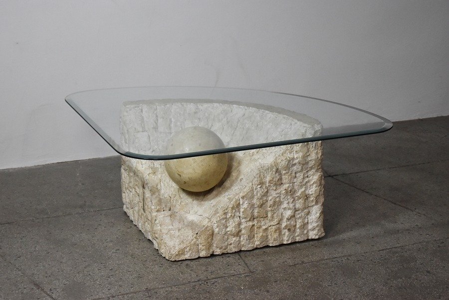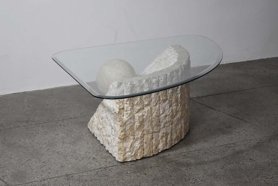 Tavolino da caffè in travertino attribuito a Magnussen Ponte, anni '80