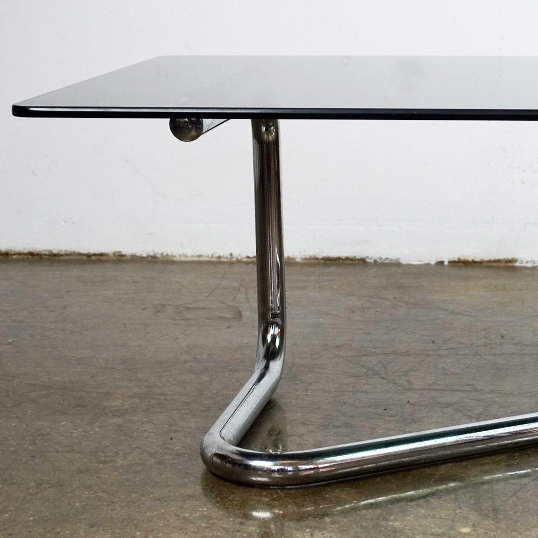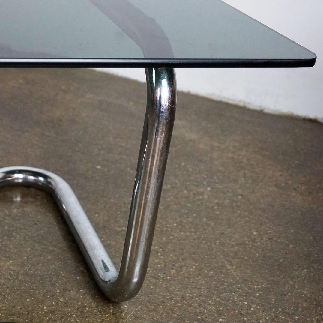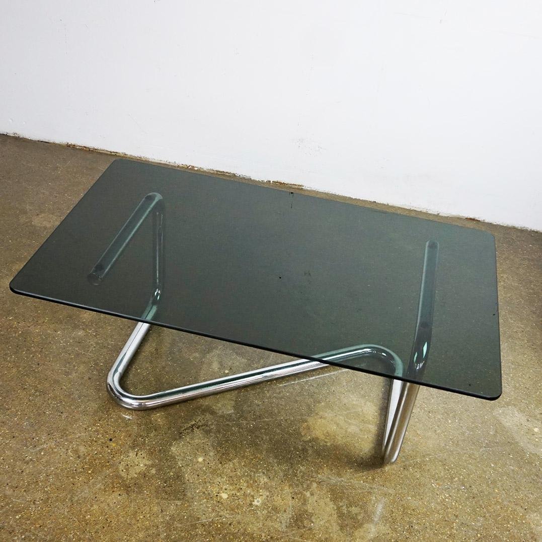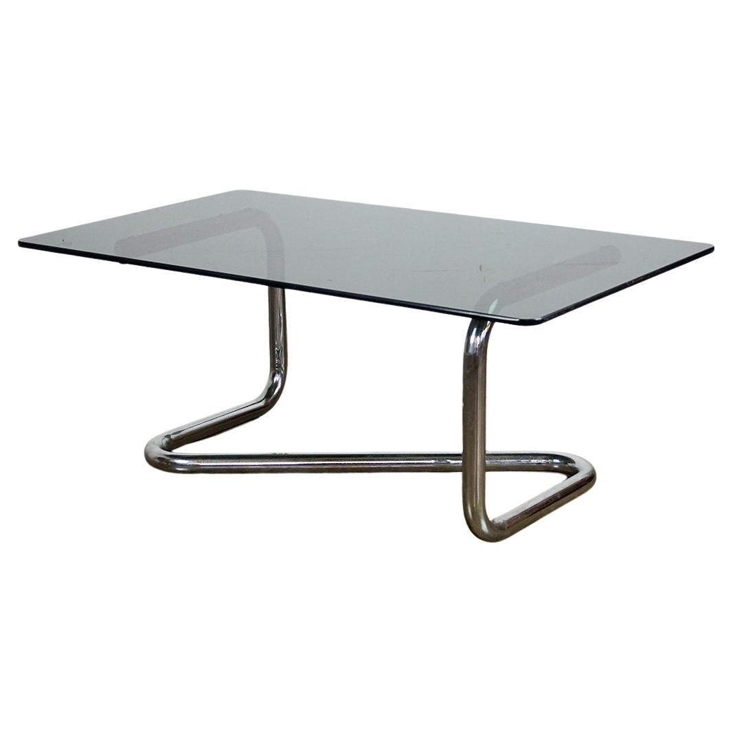 Tavolino da caffè Space Age in vetro fumé e metallo cromato di Giotto Stoppino, Italia, anni '70