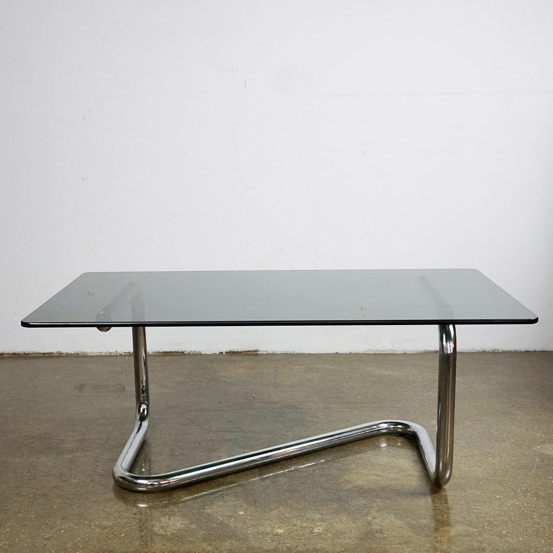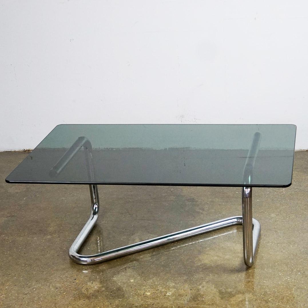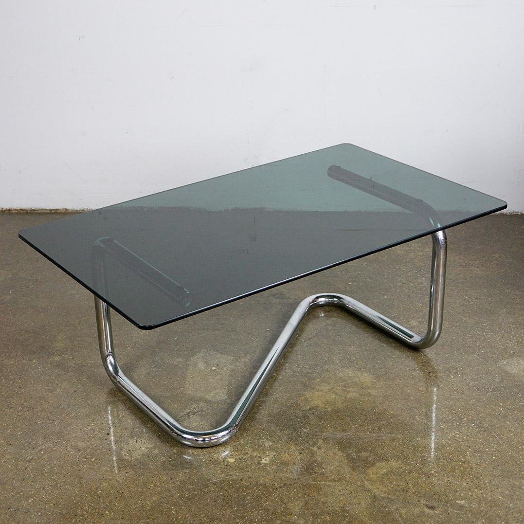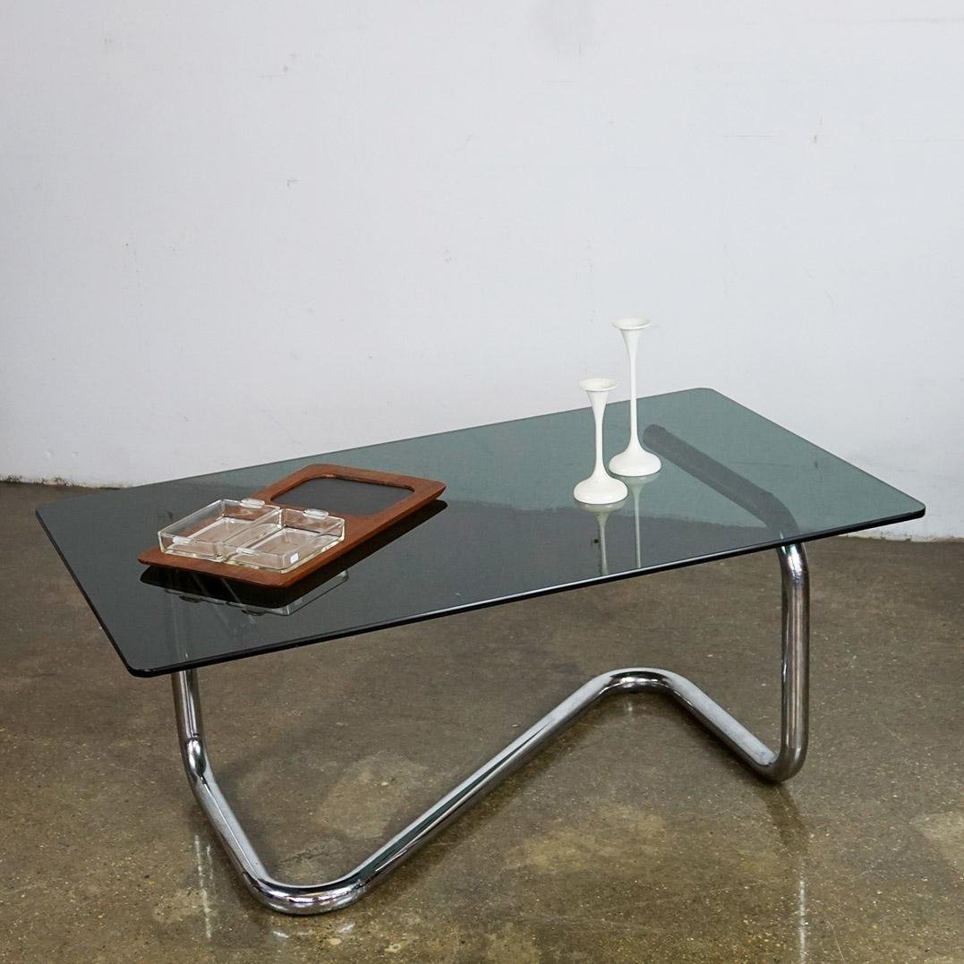 Tavolino da caffè Space Age in vetro fumé e metallo cromato di Giotto Stoppino, Italia, anni '70